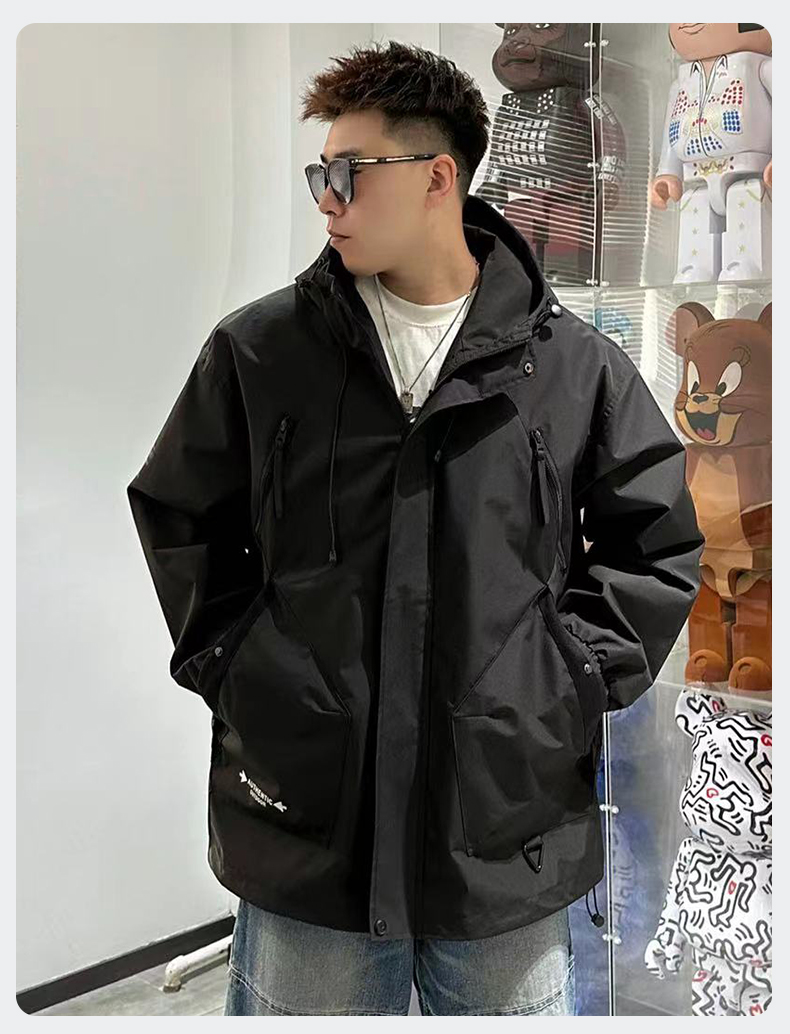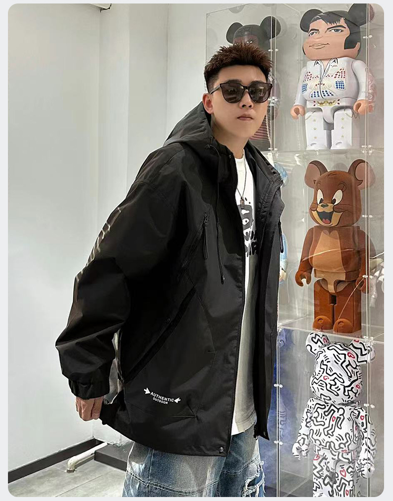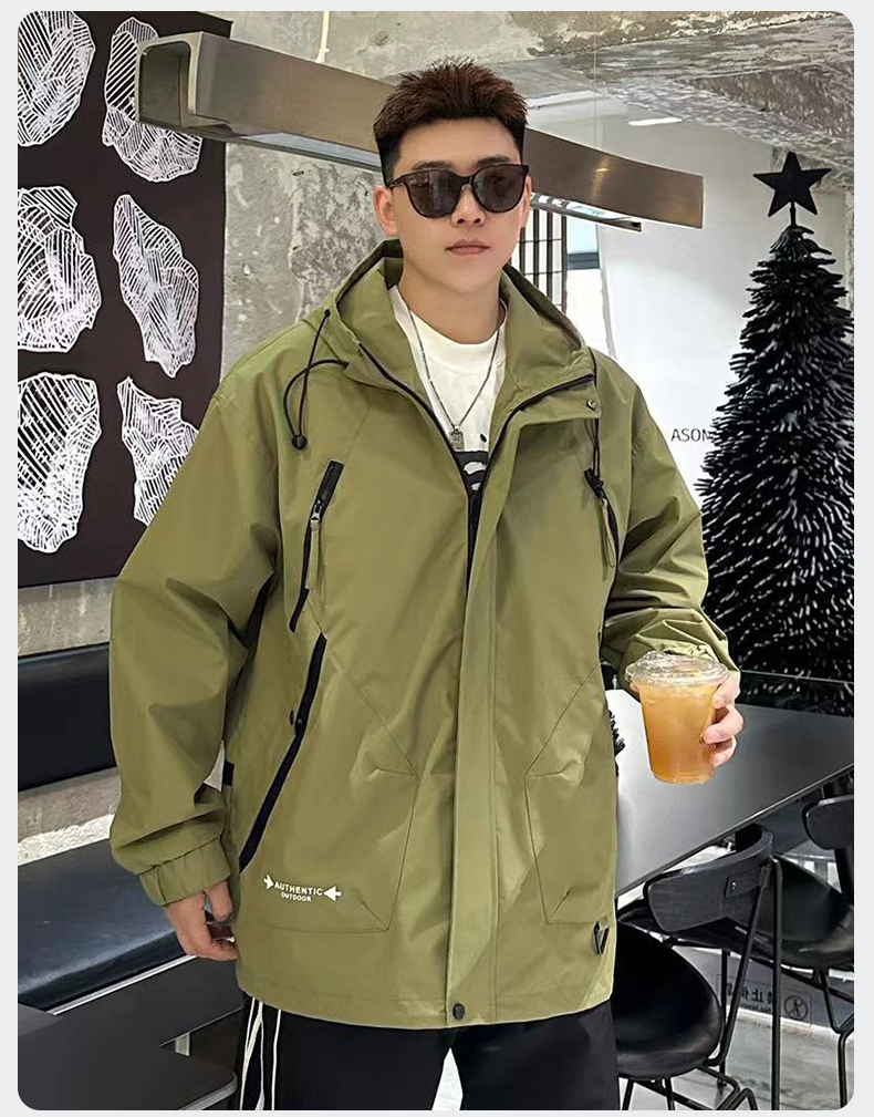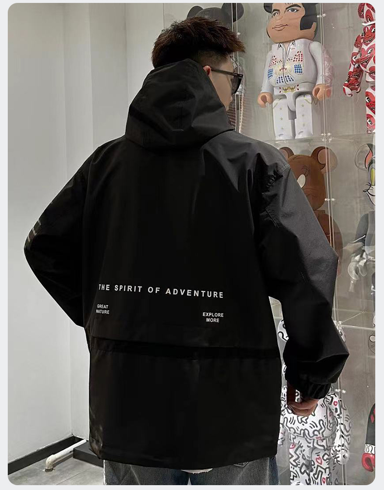 【Q】【新款DX】大依优型大码连帽外套夹克时尚雷萨加肥加大休闲胖子宽松外套上衣男装潮流户外