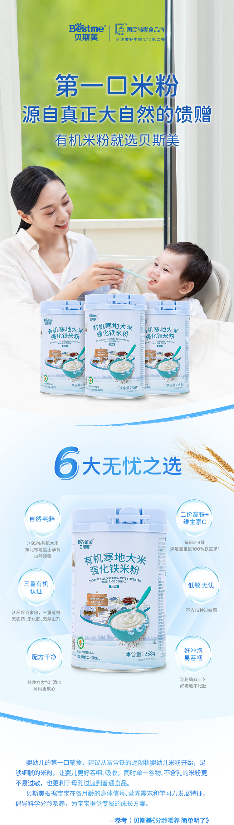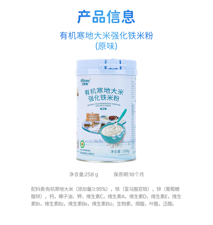 贝斯美有机寒地大米强化铁米粉258g(原味)