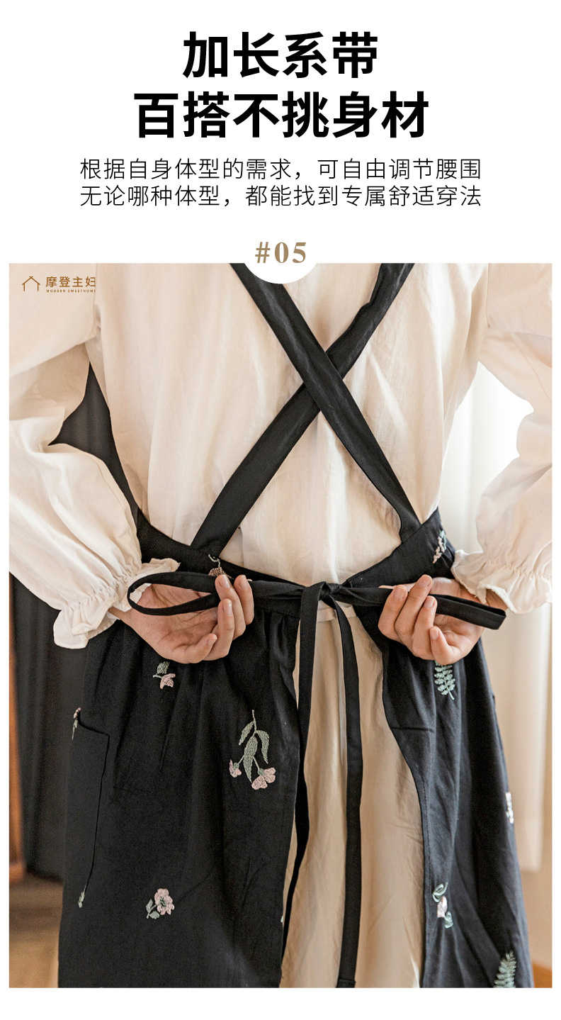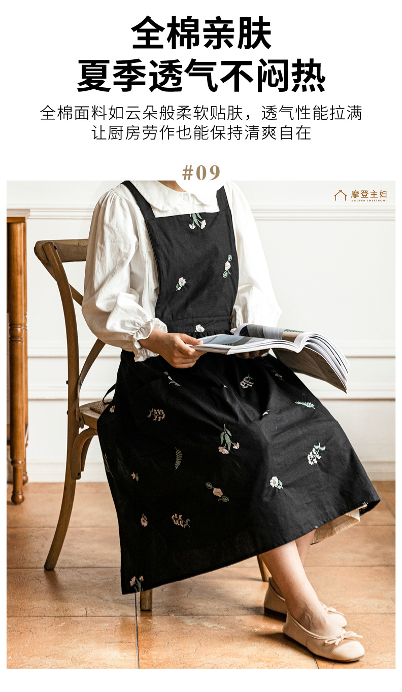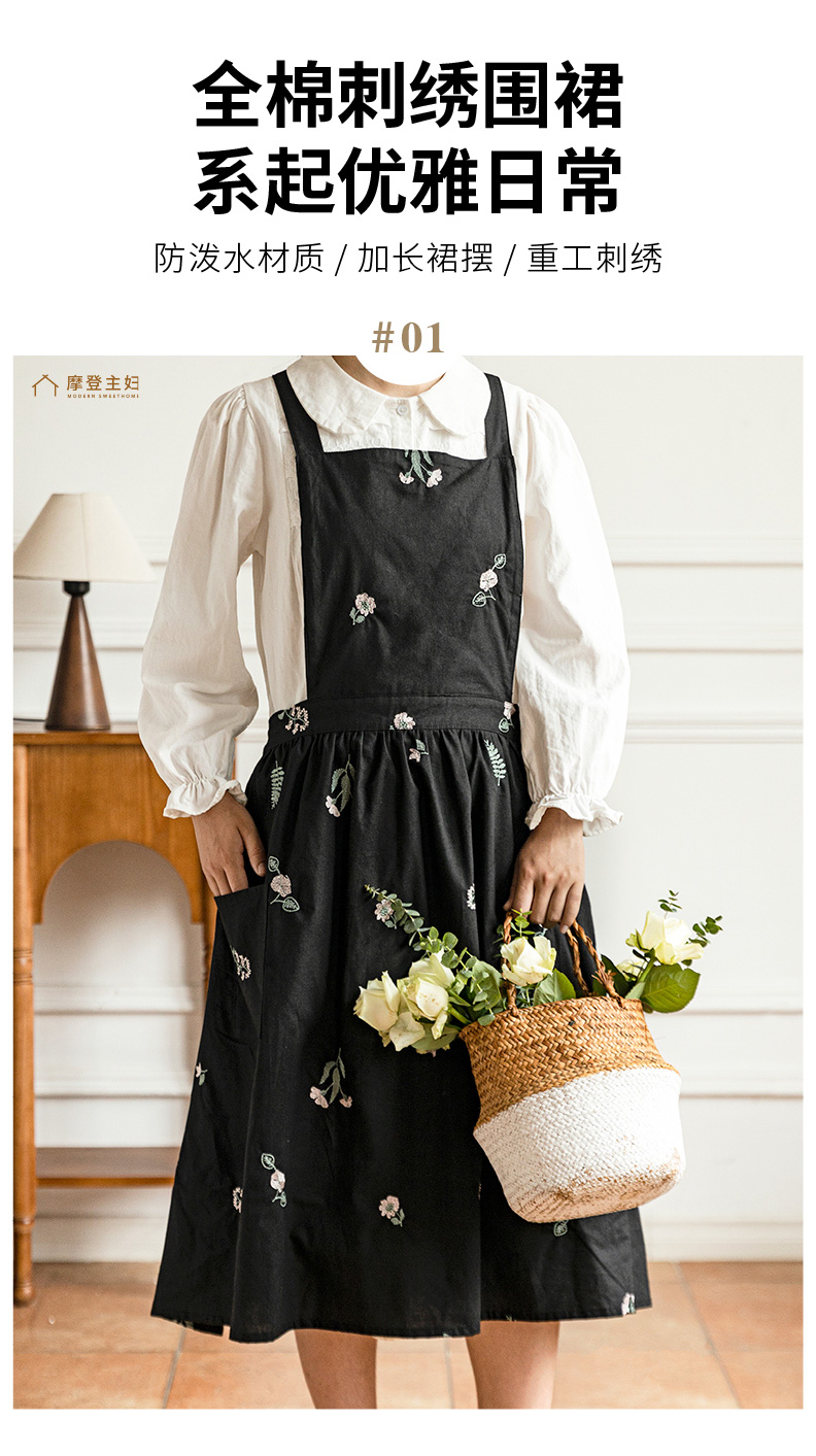 摩登主妇围裙厨房家用2025新款纯棉刺绣防水防油高级感年轻款罩衣