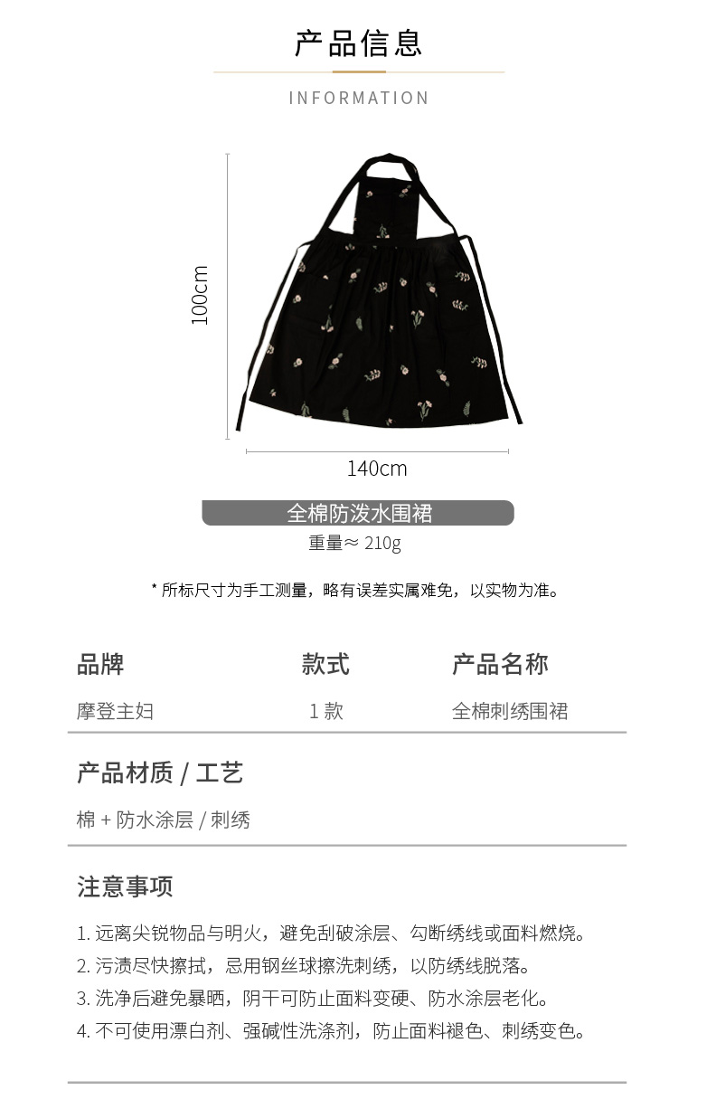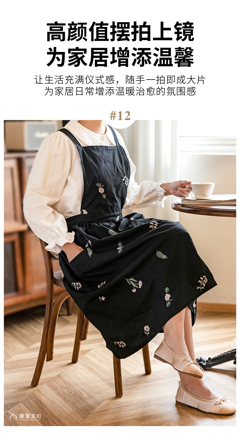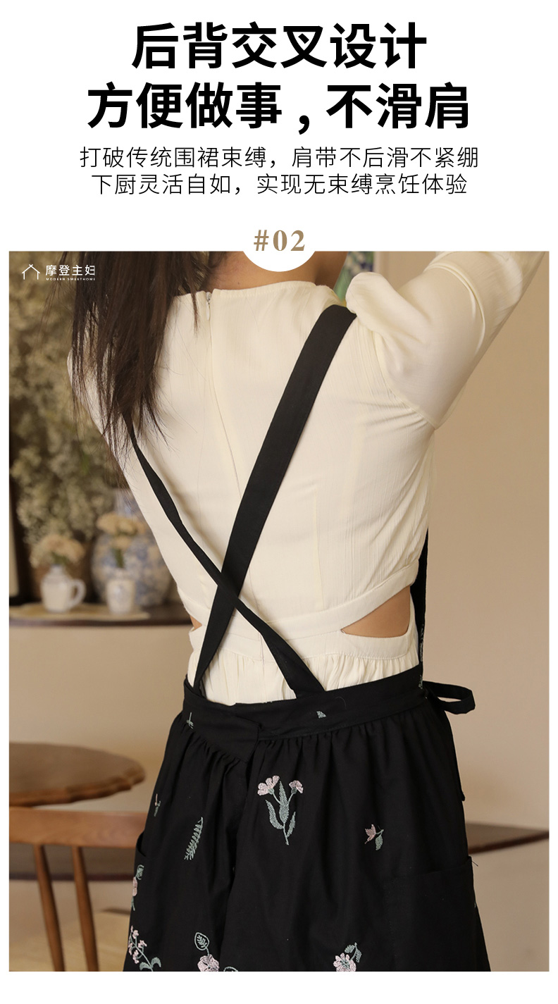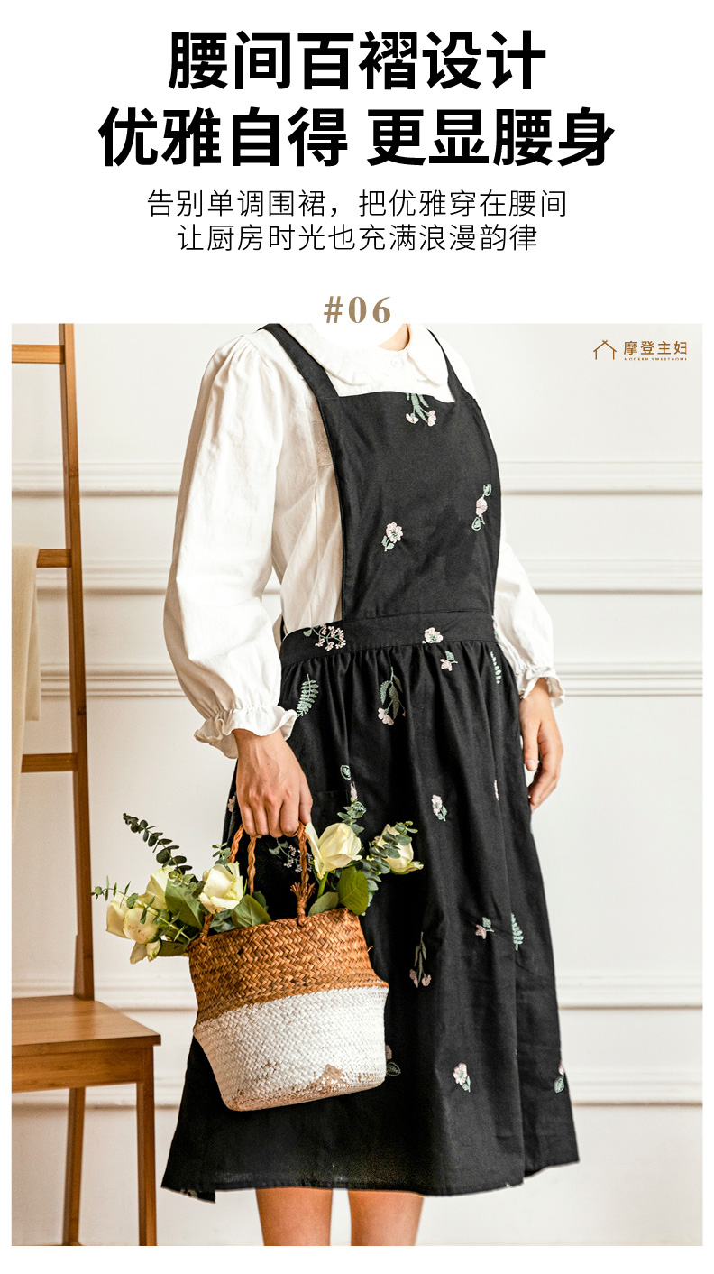 摩登主妇围裙厨房家用2025新款纯棉刺绣防水防油高级感年轻款罩衣