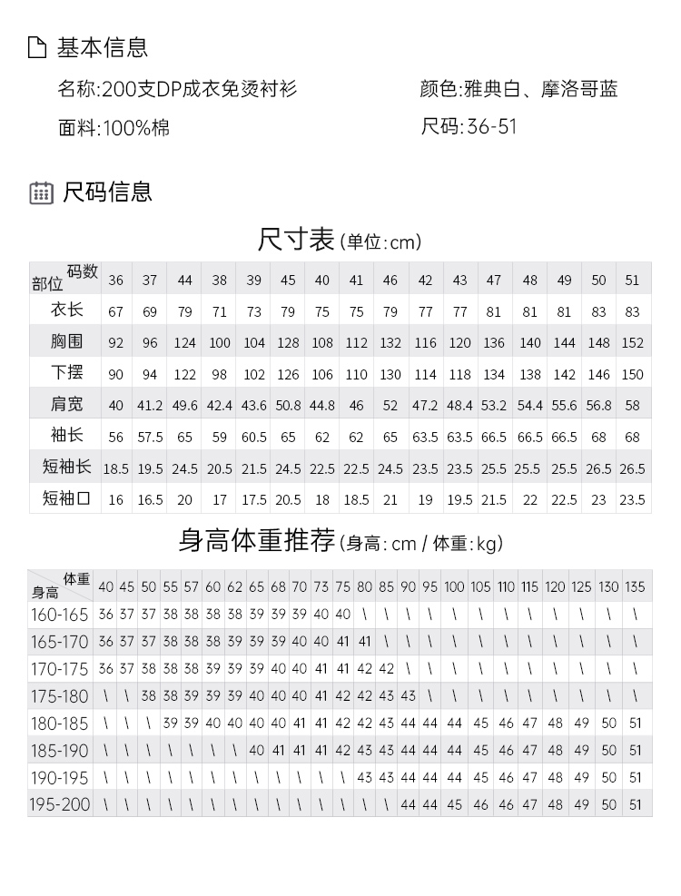 【200支DP免烫衬衫】男士商务长袖衬衫 大码免烫短袖休闲衬衣
