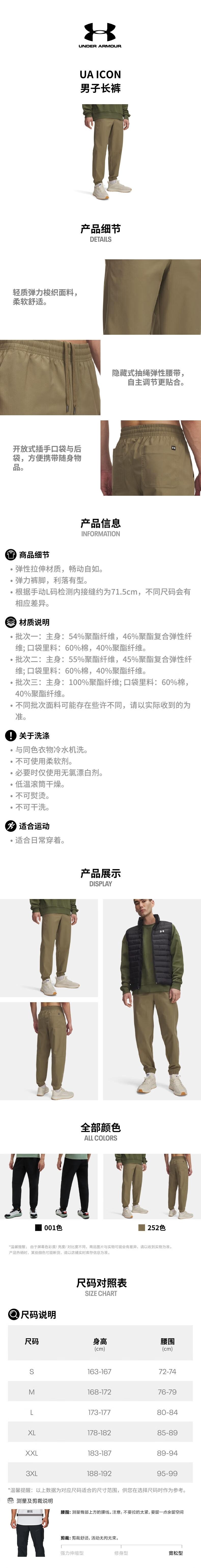 UnderArmour安德玛 男梭织长裤 6000663-001