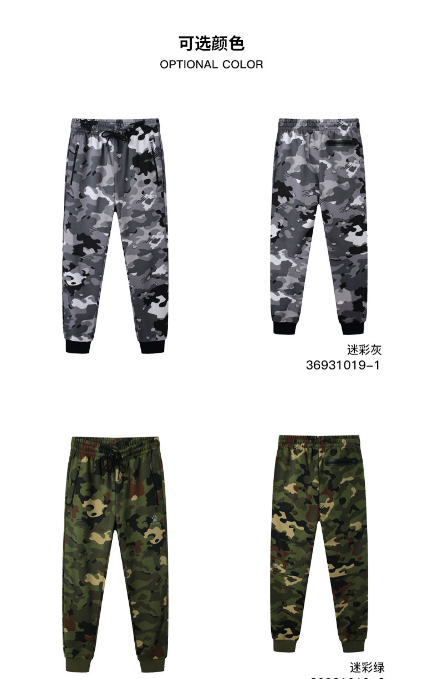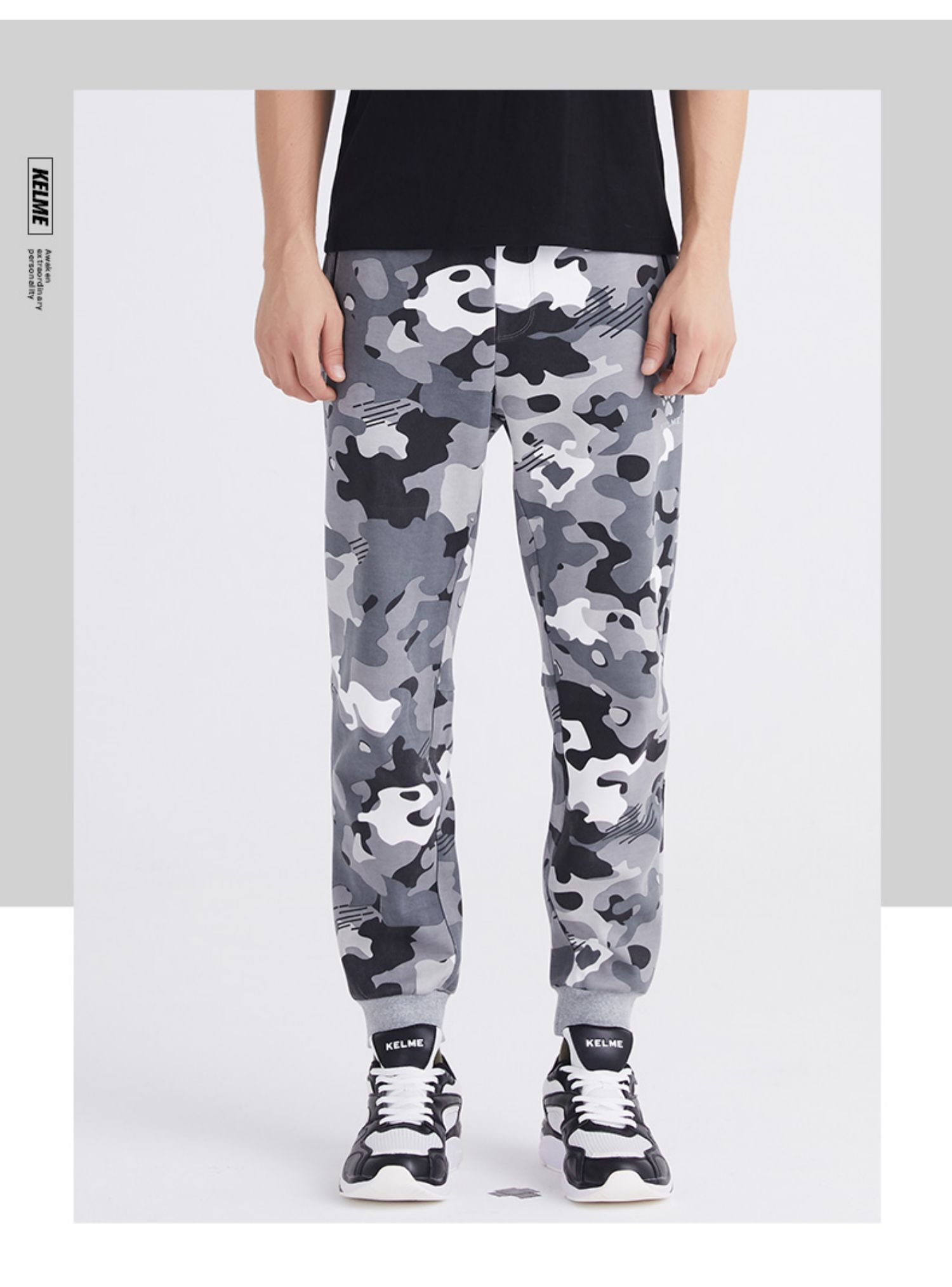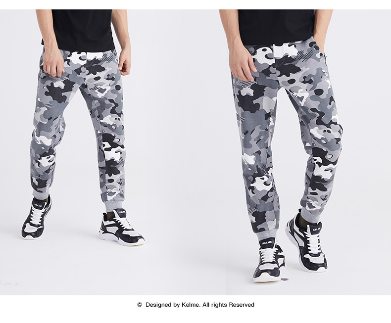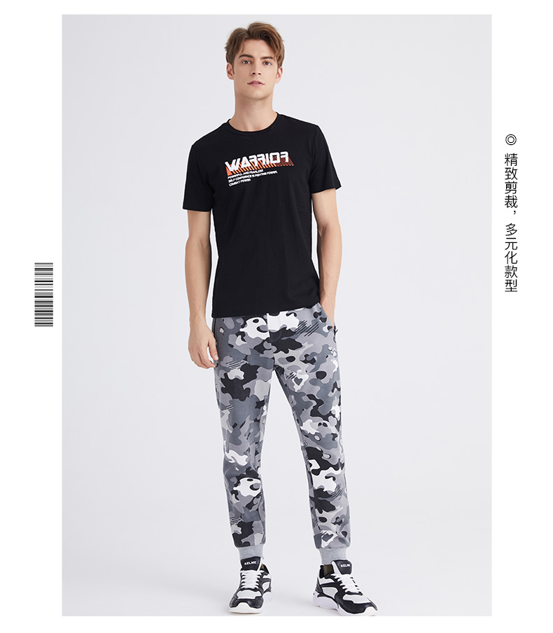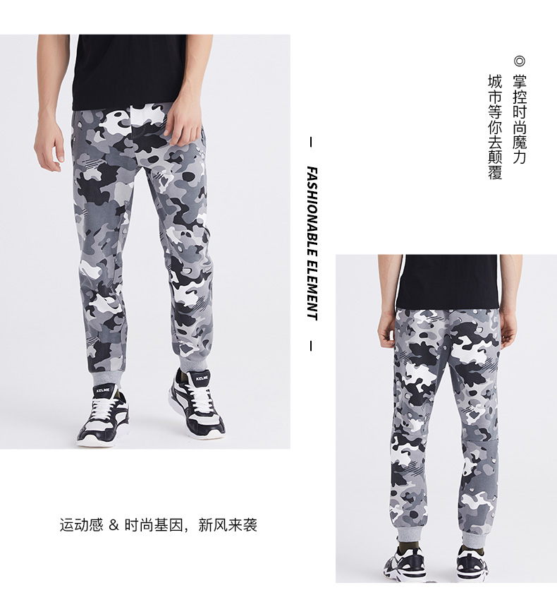卡尔美男士新款运动时尚系列秋冬季迷彩休闲针织运动裤