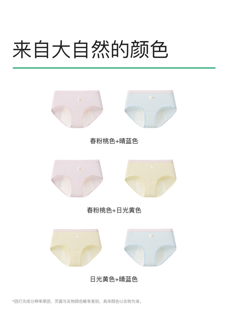 【E】likeuu少女内裤生理期安心裤经期安全裤15A抗菌发育大童初高中生两条装LC3161061