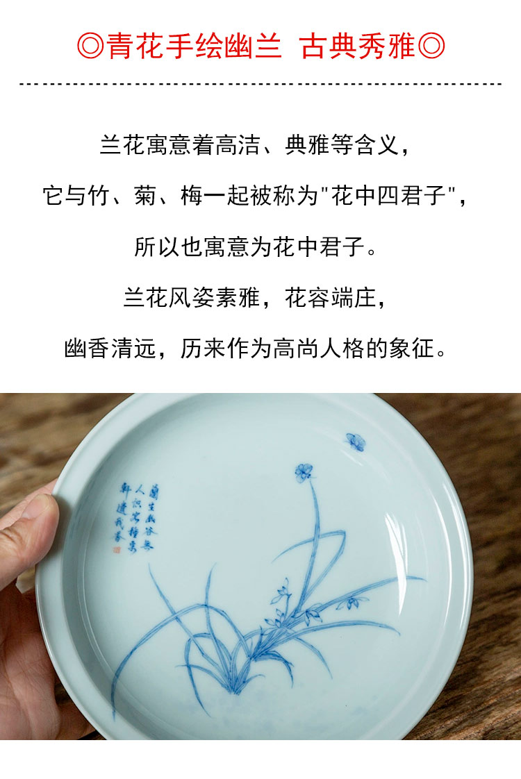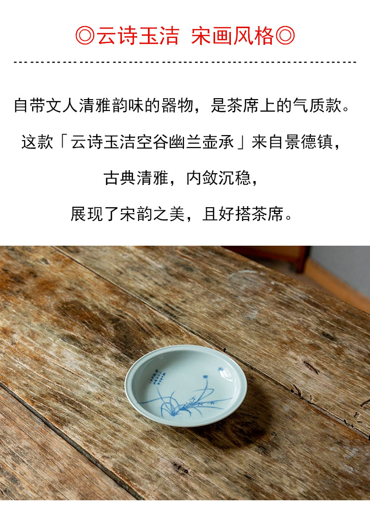 茶香记 云诗玉洁空谷幽兰壶承手绘青花干泡盘陶瓷景德镇空谷幽兰
