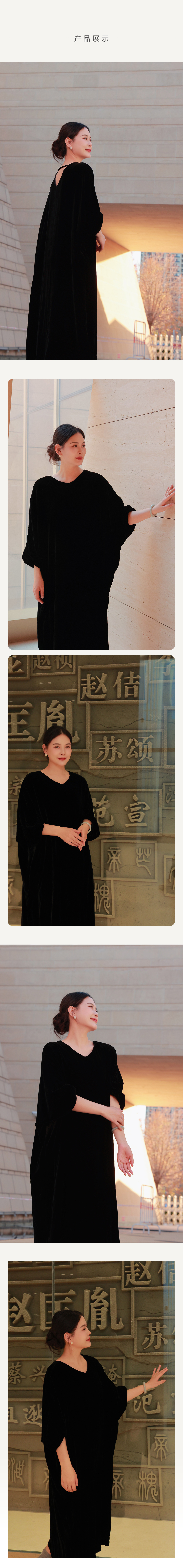 【抖音专属】黑天鹅•V领连衣裙(24807145-玄色)