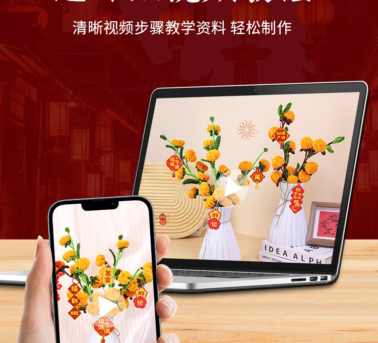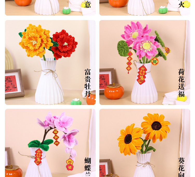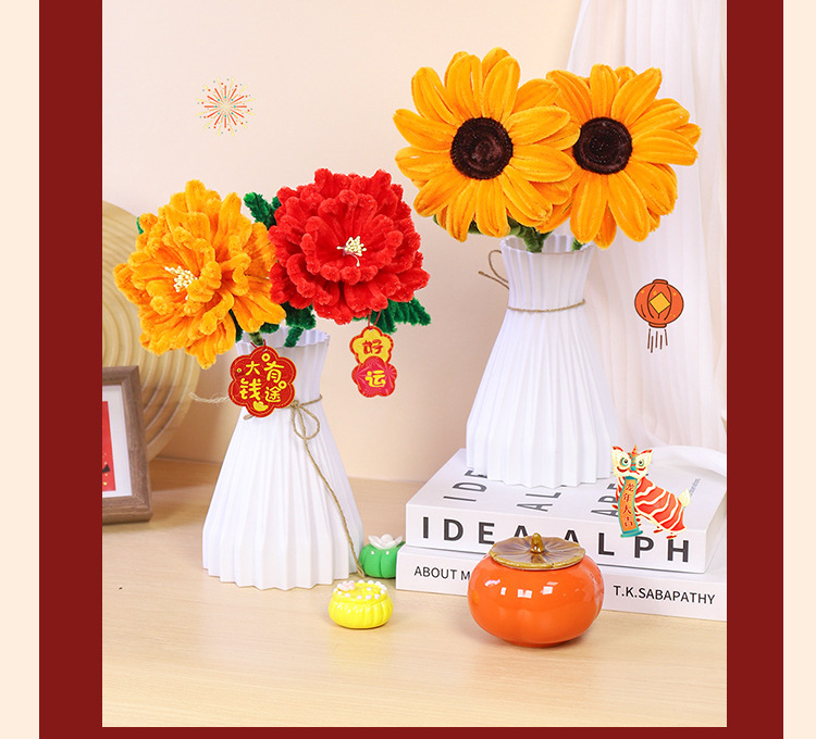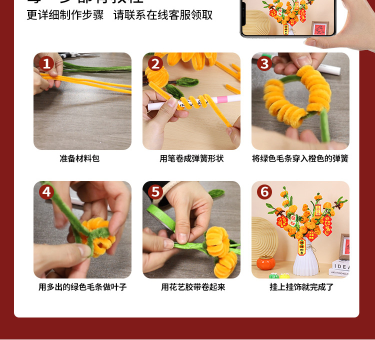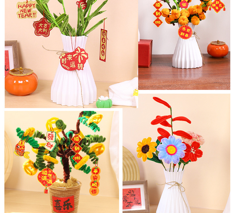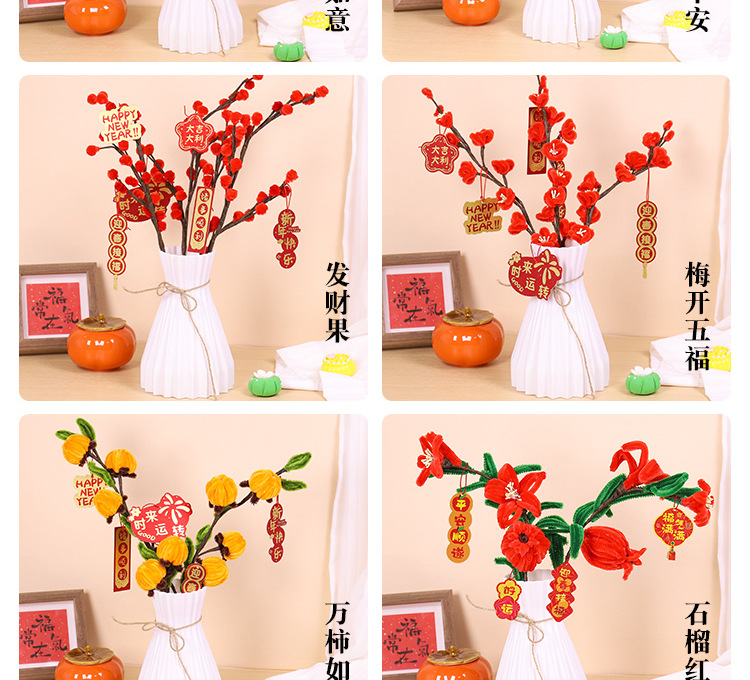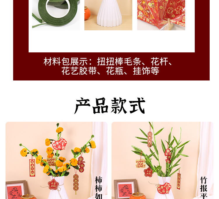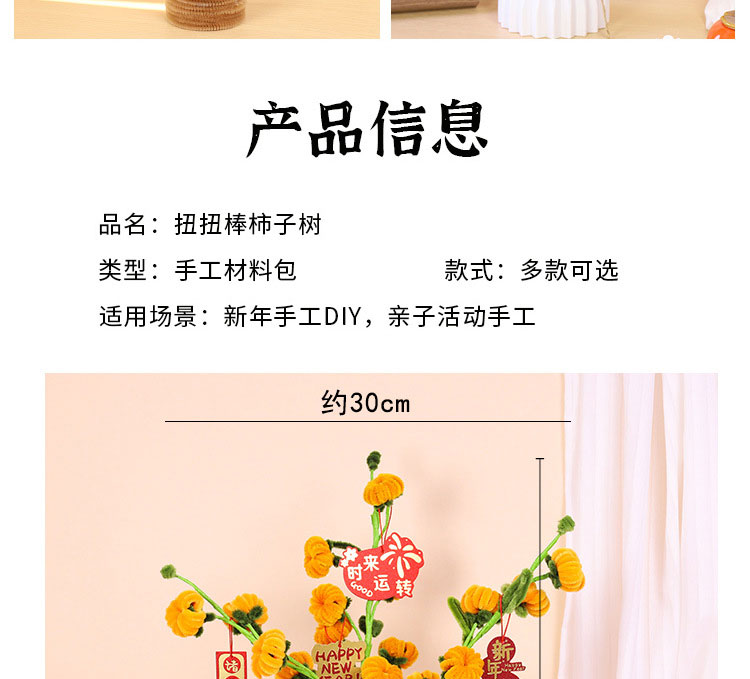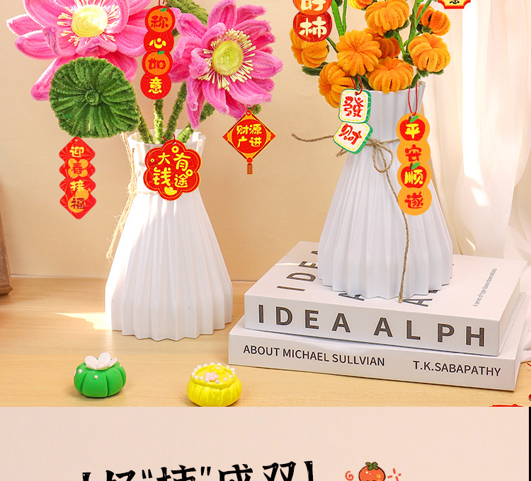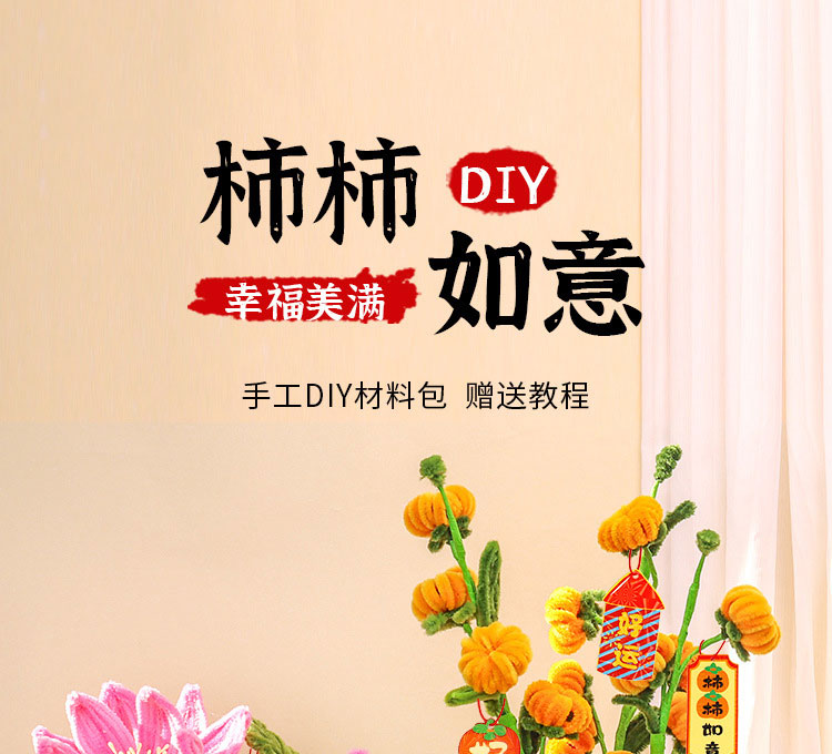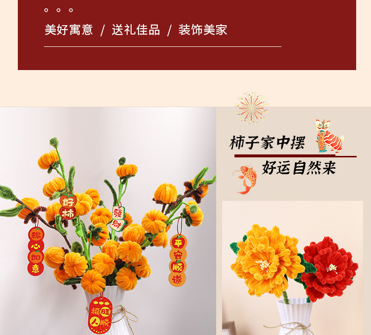 新年春节扭扭棒柿柿如意成人儿童diy小学生手工制作花束材料包