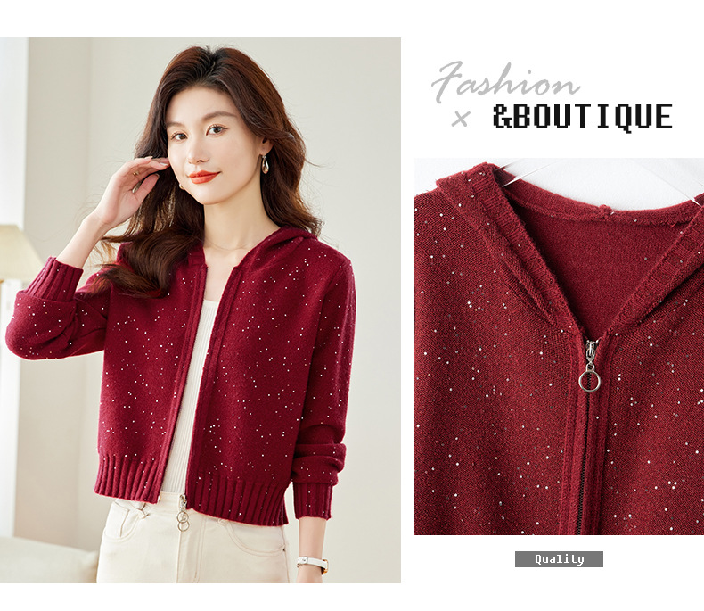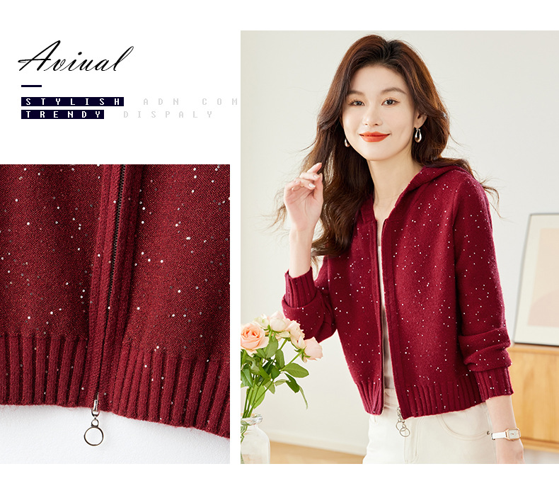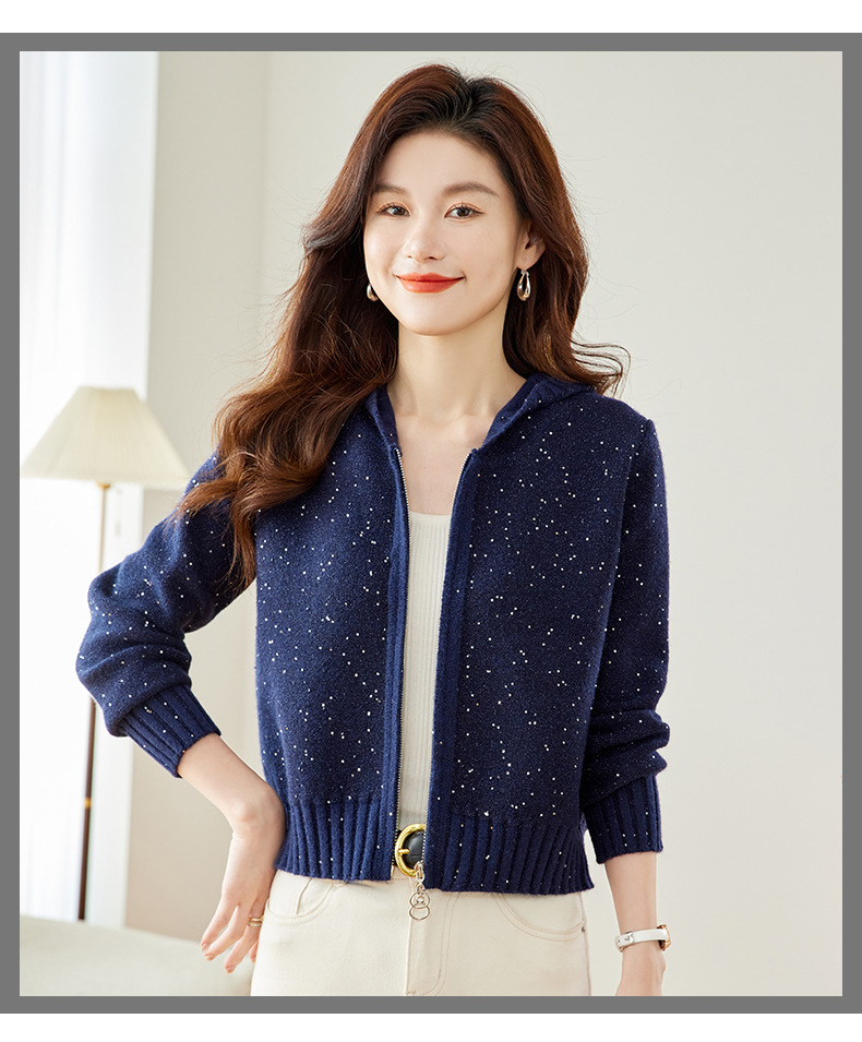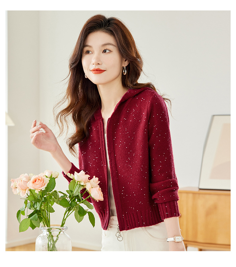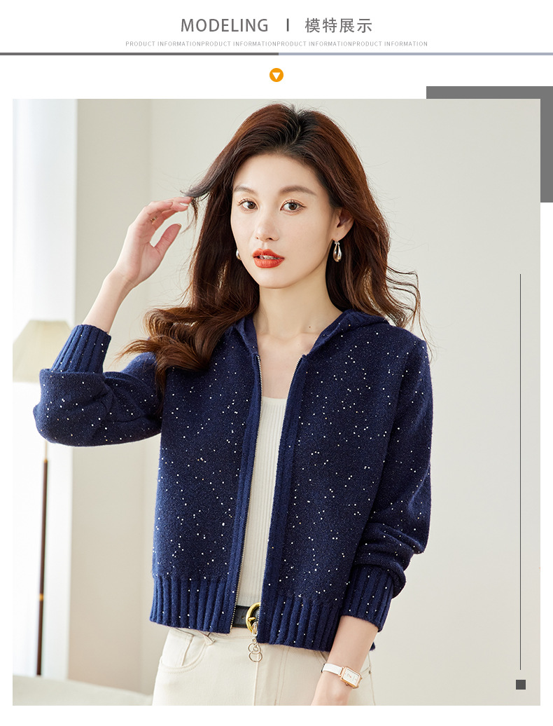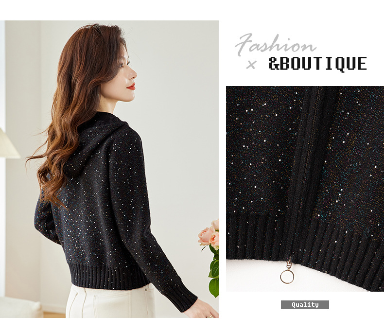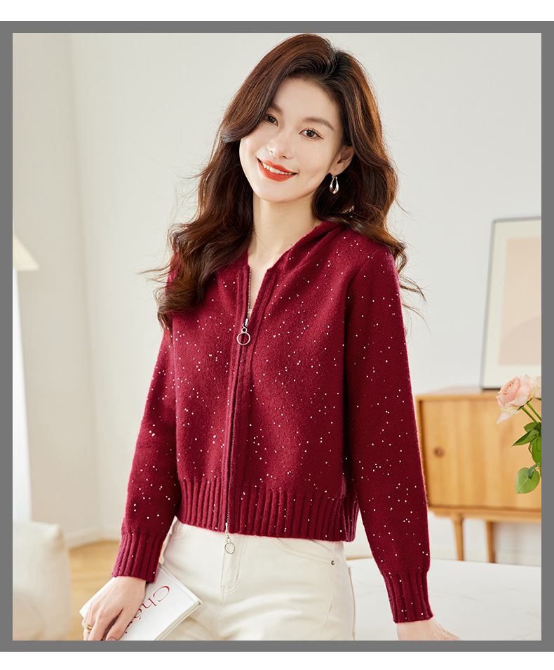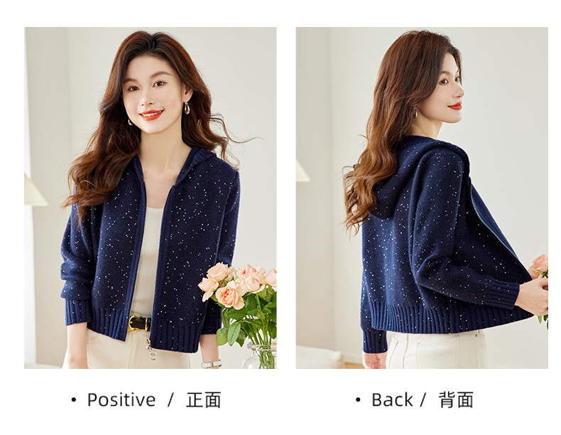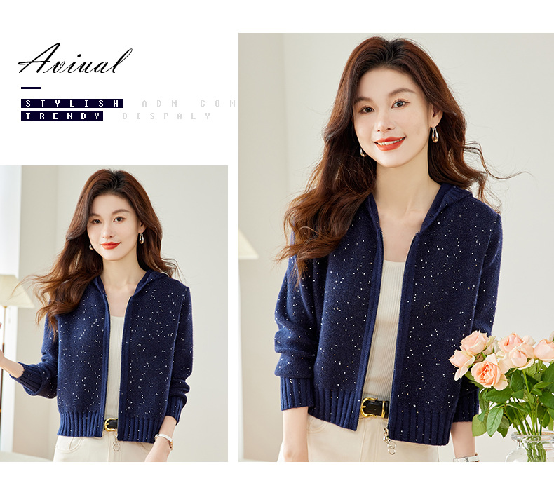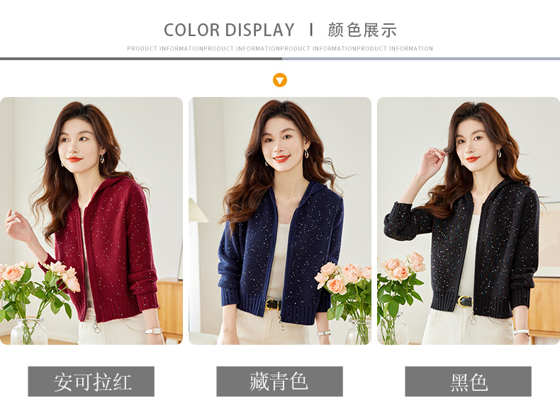 CC-MY-68315连帽羊毛针织外套女士短款2024新款秋冬季小香风上衣毛衣拉链开衫