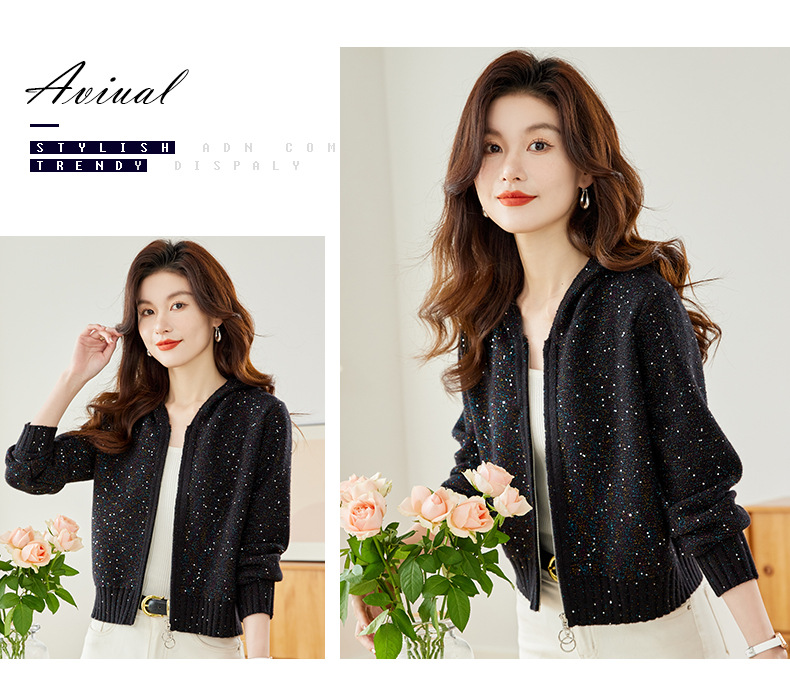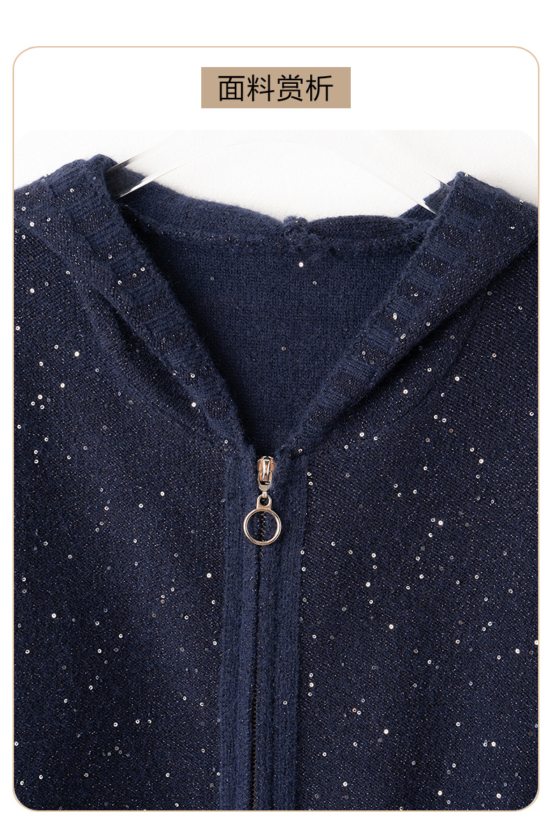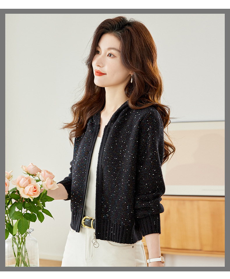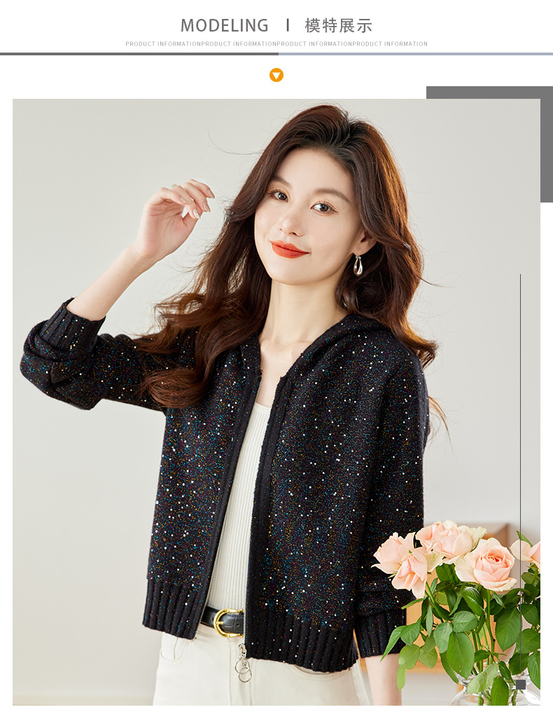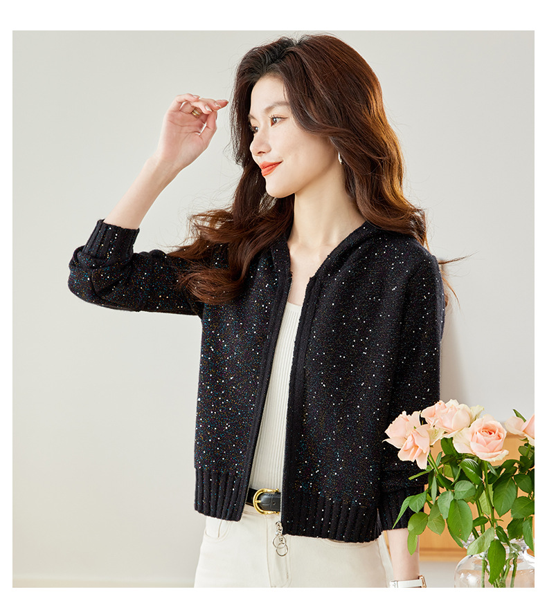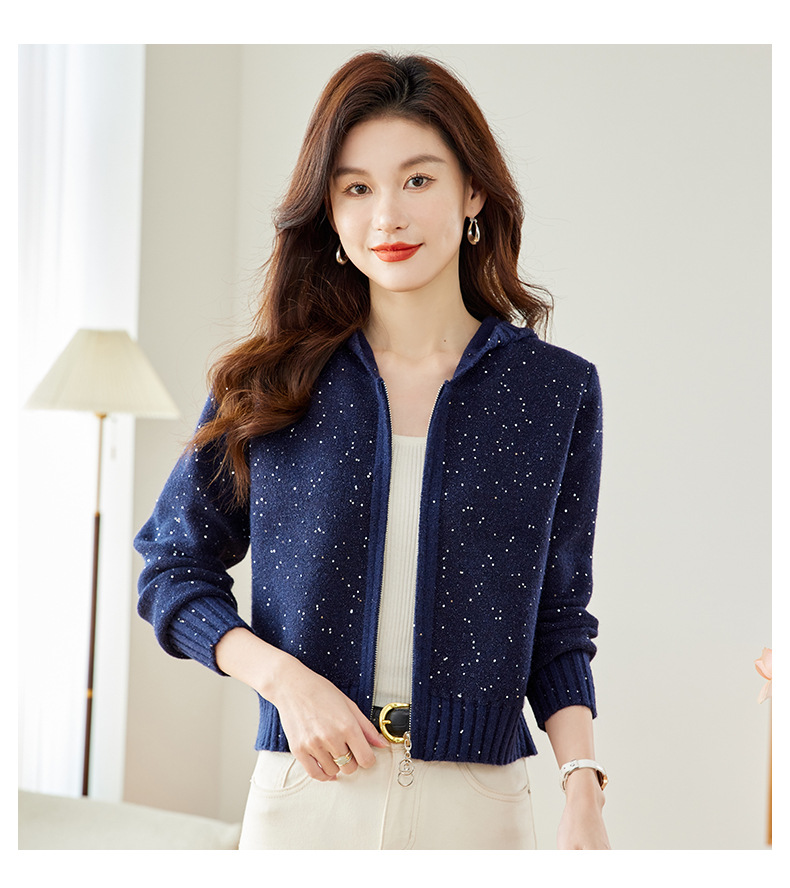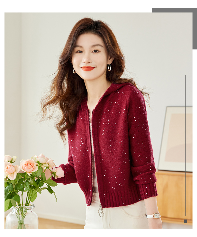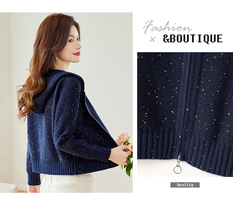 CC-MY-68315连帽羊毛针织外套女士短款2024新款秋冬季小香风上衣毛衣拉链开衫