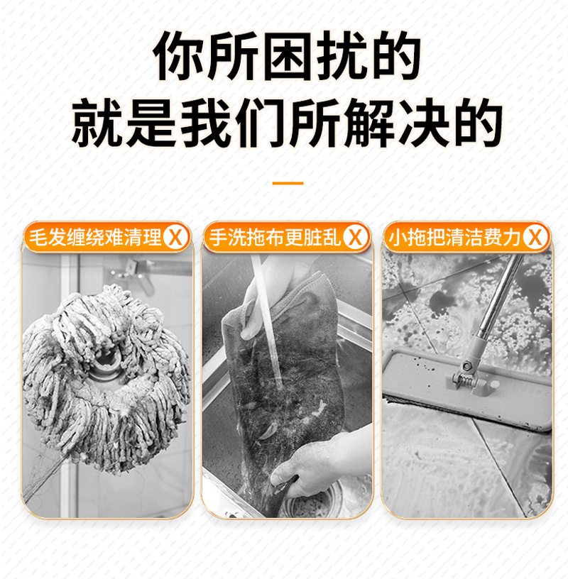 「19.9包邮!升级加大加宽款」居家日用免手洗平板拖把 干湿两用吸水懒人拖把加粗加大清洁工具拖布可旋转