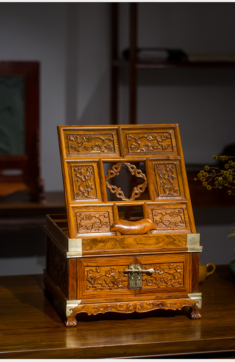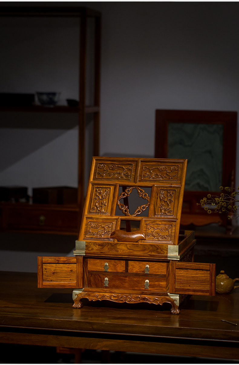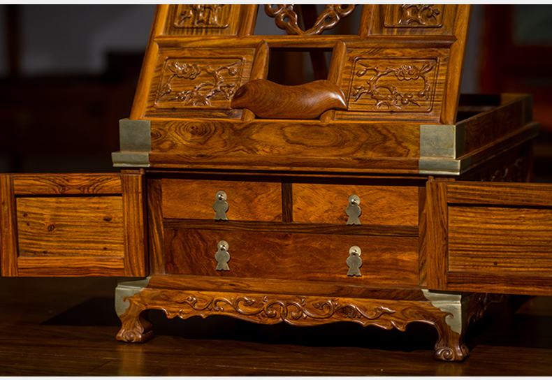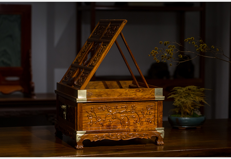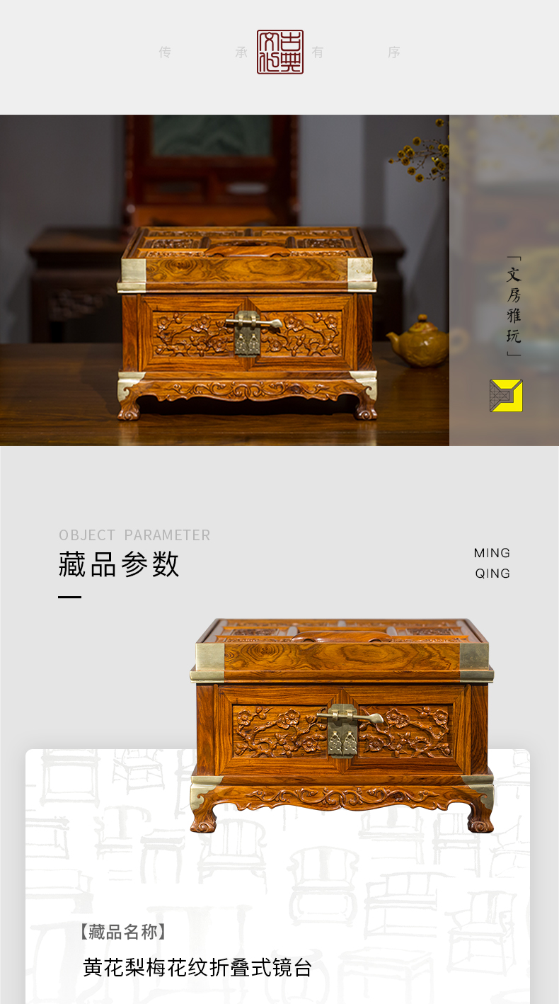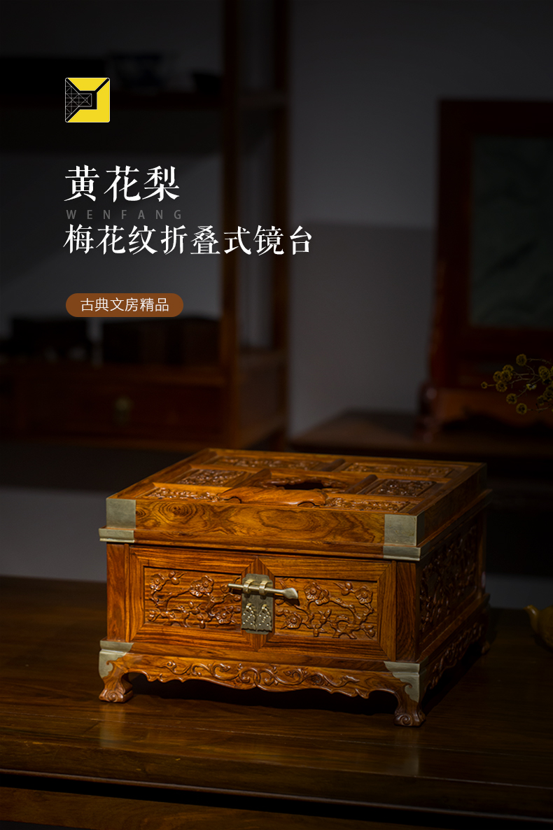 黄花梨梅花纹折叠式镜台