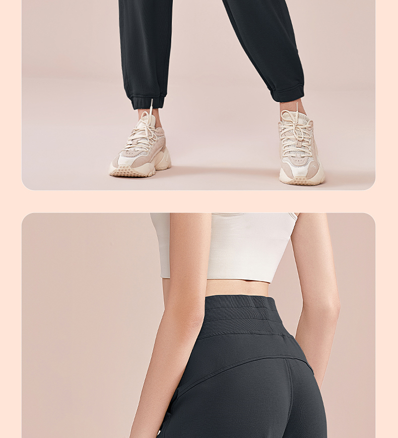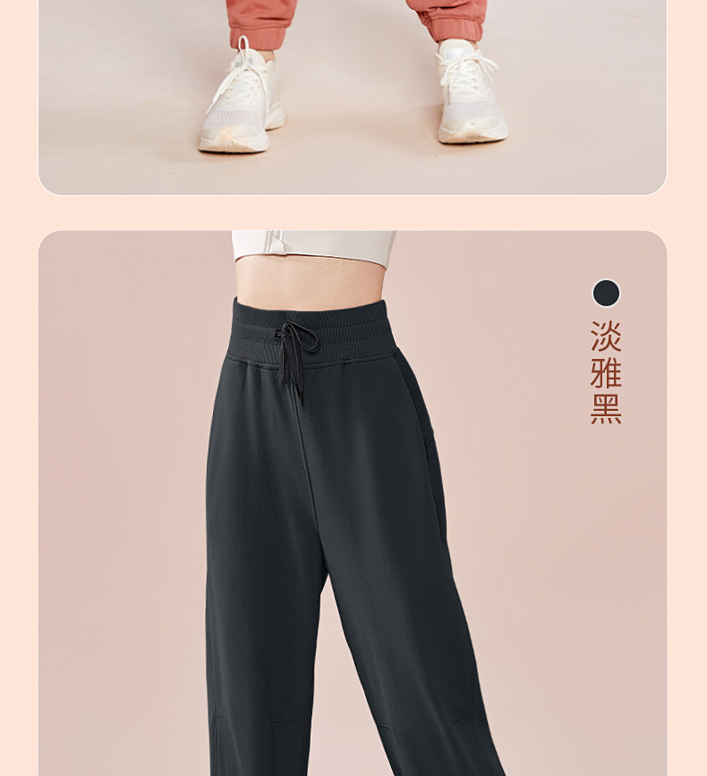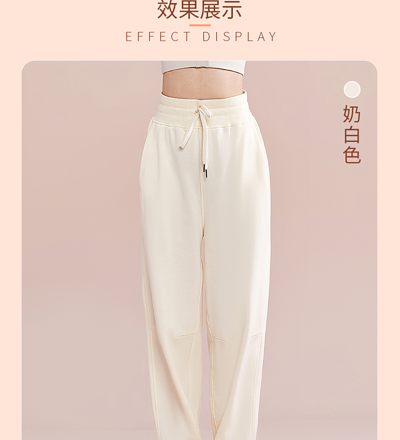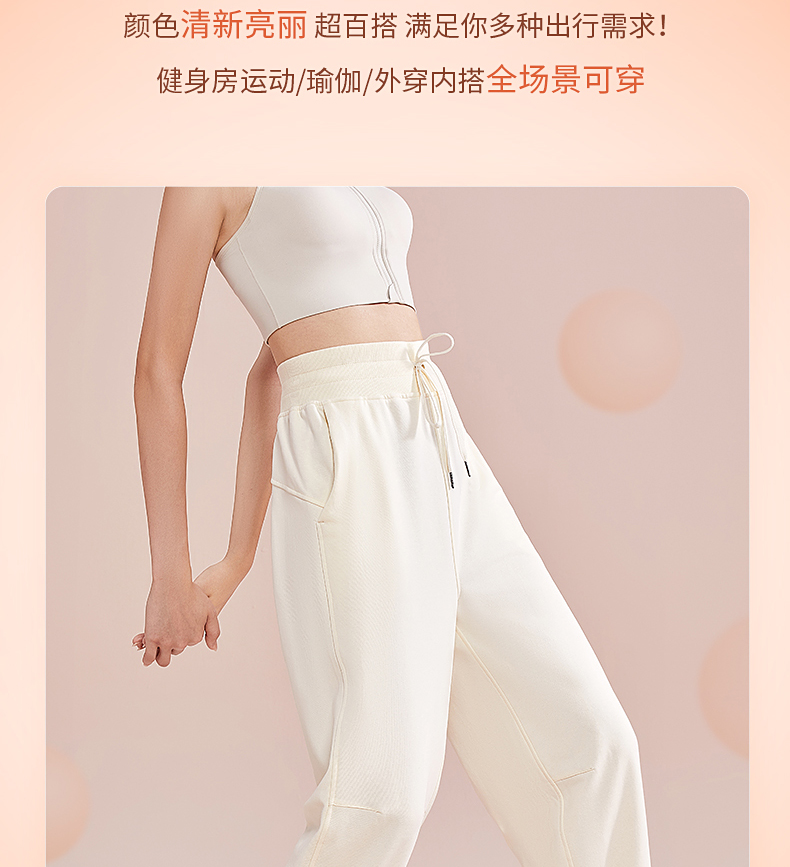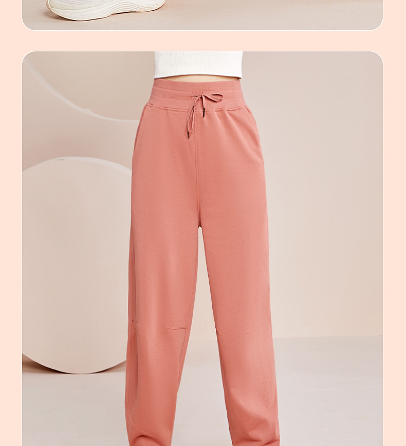跃牌【明丽逸动】系列 高腰宽松运动长裤女休闲纯棉健身裤哈伦裤AL-8026
