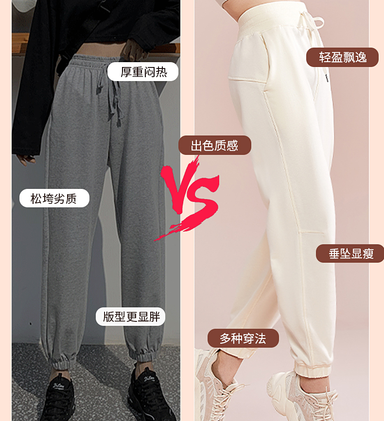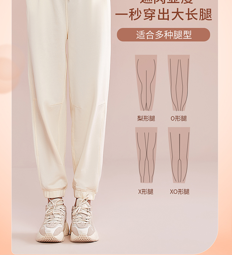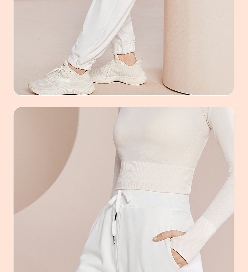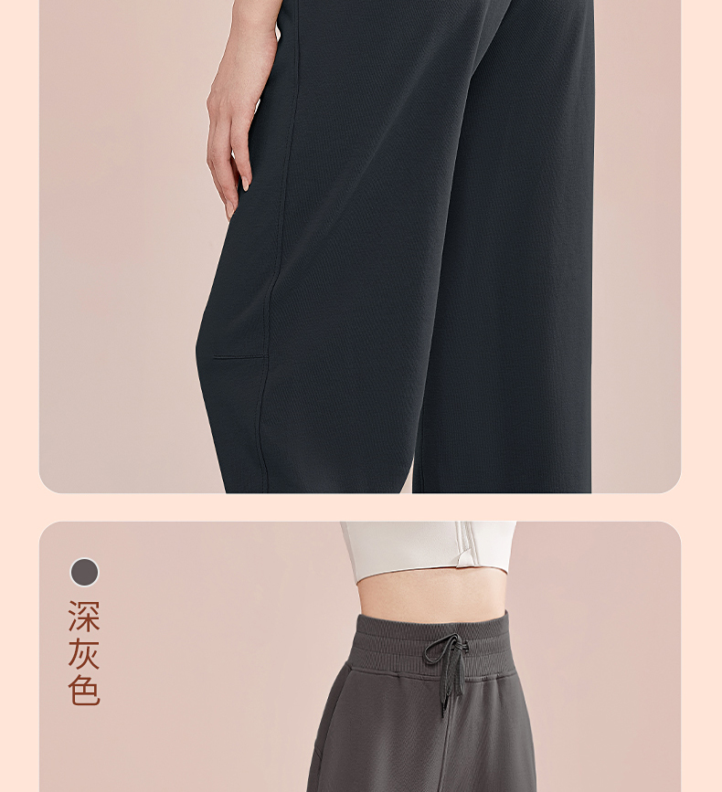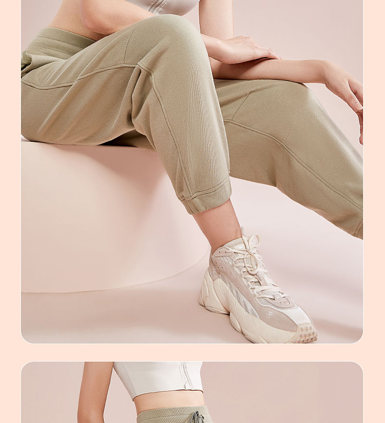 跃牌【明丽逸动】系列 高腰宽松运动长裤女休闲纯棉健身裤哈伦裤AL-8026