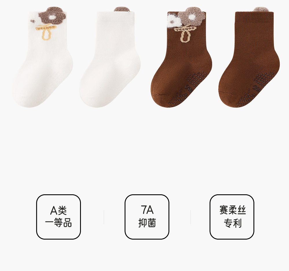 【商场同款】英氏婴儿袜子赛柔丝四季袜新款女宝7A抗菌短袜2双装
