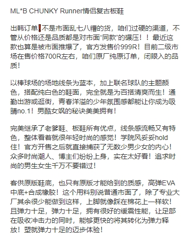 17色 ML*B CHUNKY Runner情侣复古休闲板鞋