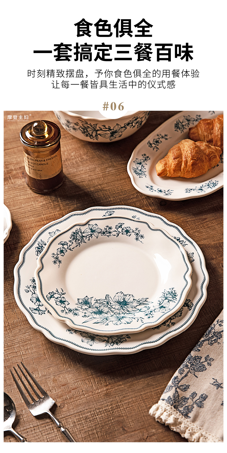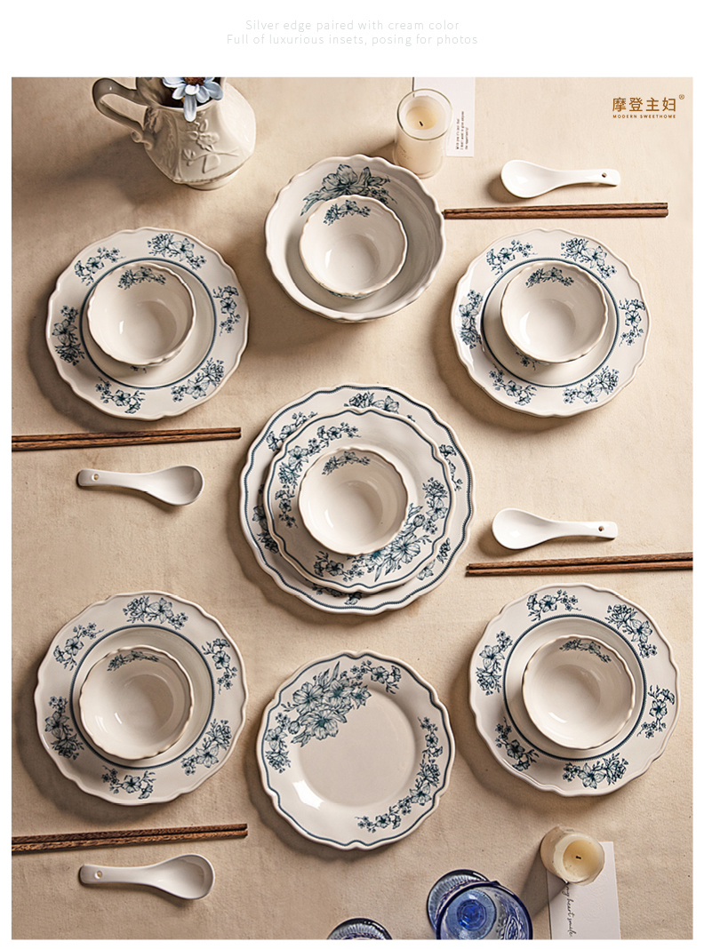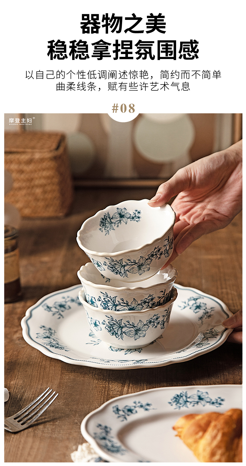 摩登主妇釉下彩中古风餐具碗碟家用2025新款青花饭碗陶瓷盘子碗具