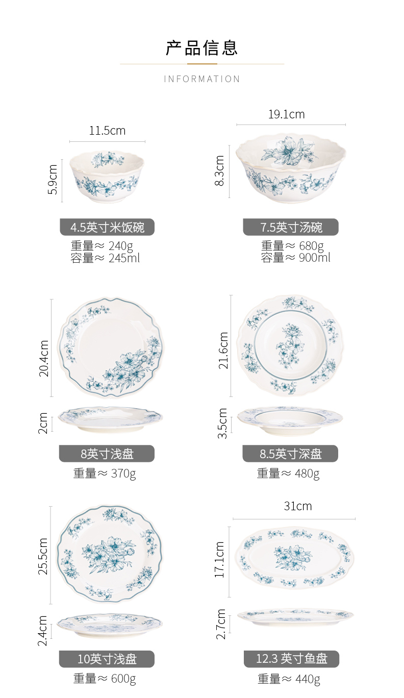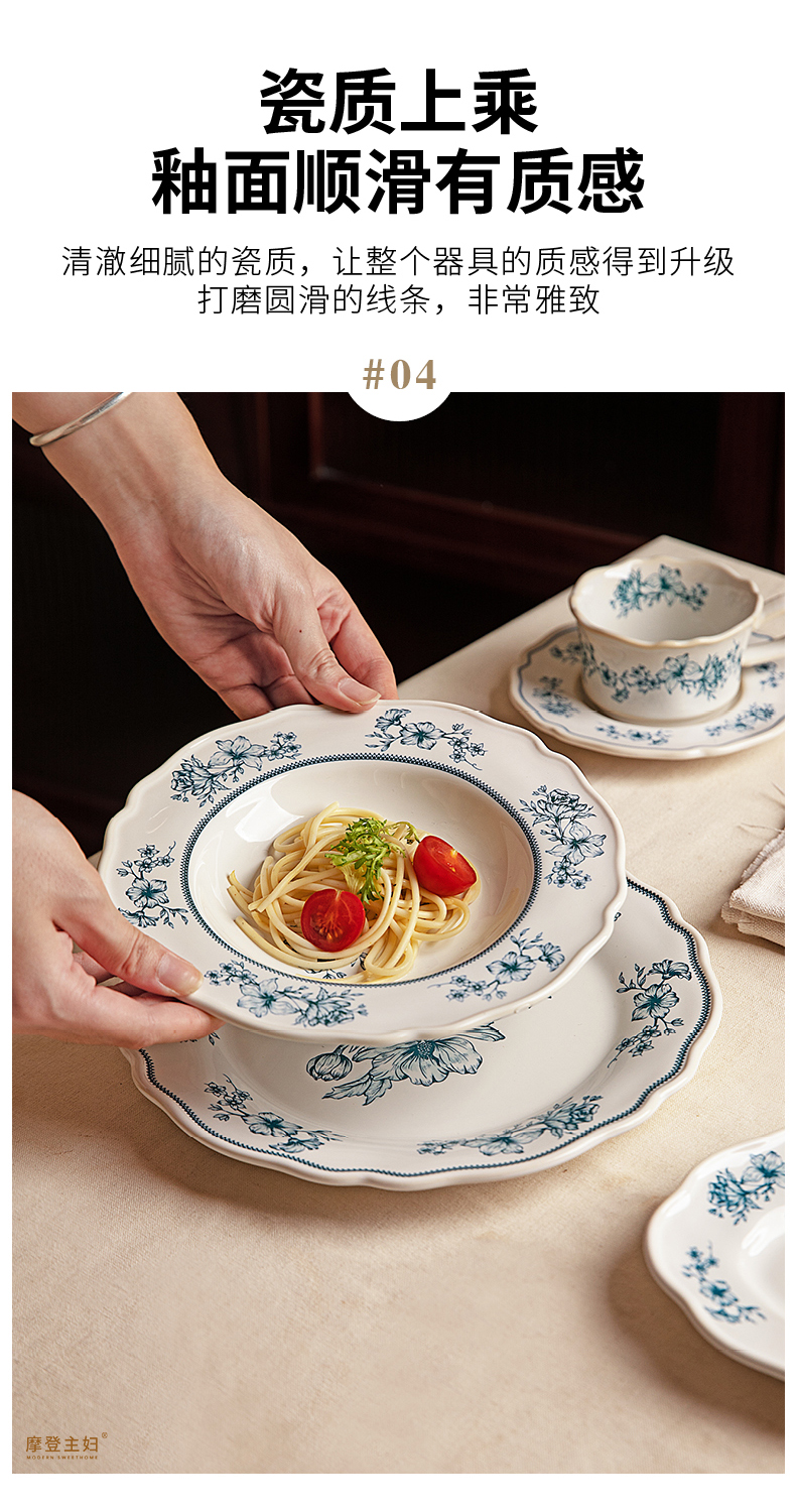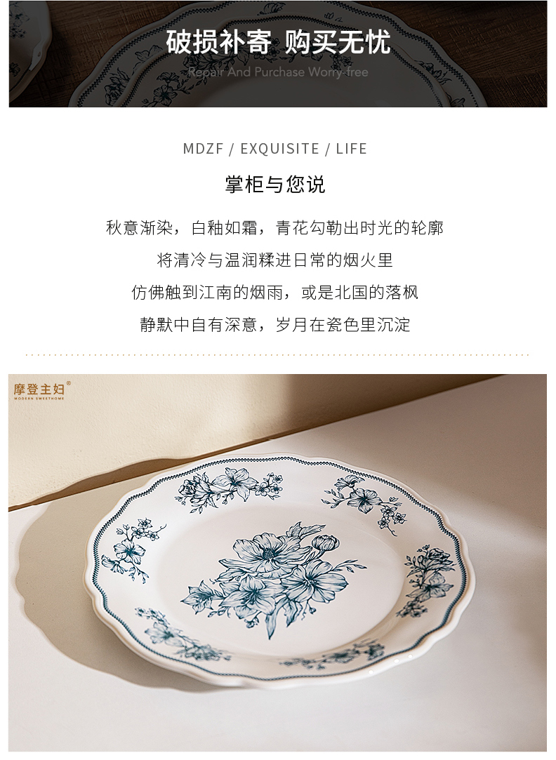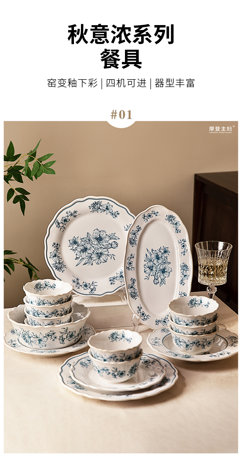 摩登主妇釉下彩中古风餐具碗碟家用2025新款青花饭碗陶瓷盘子碗具