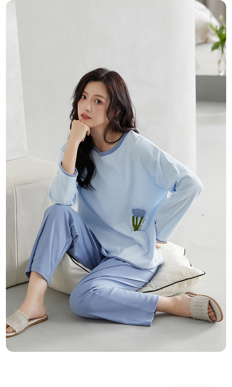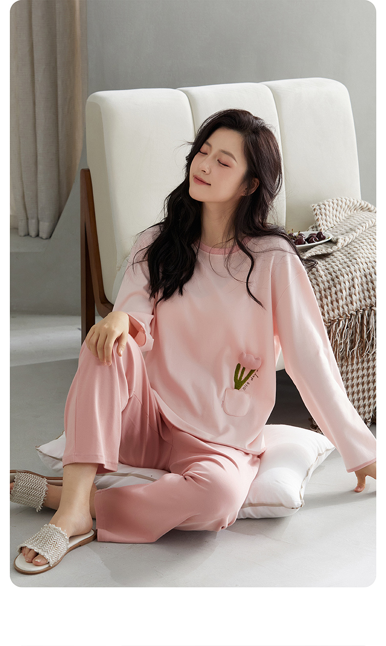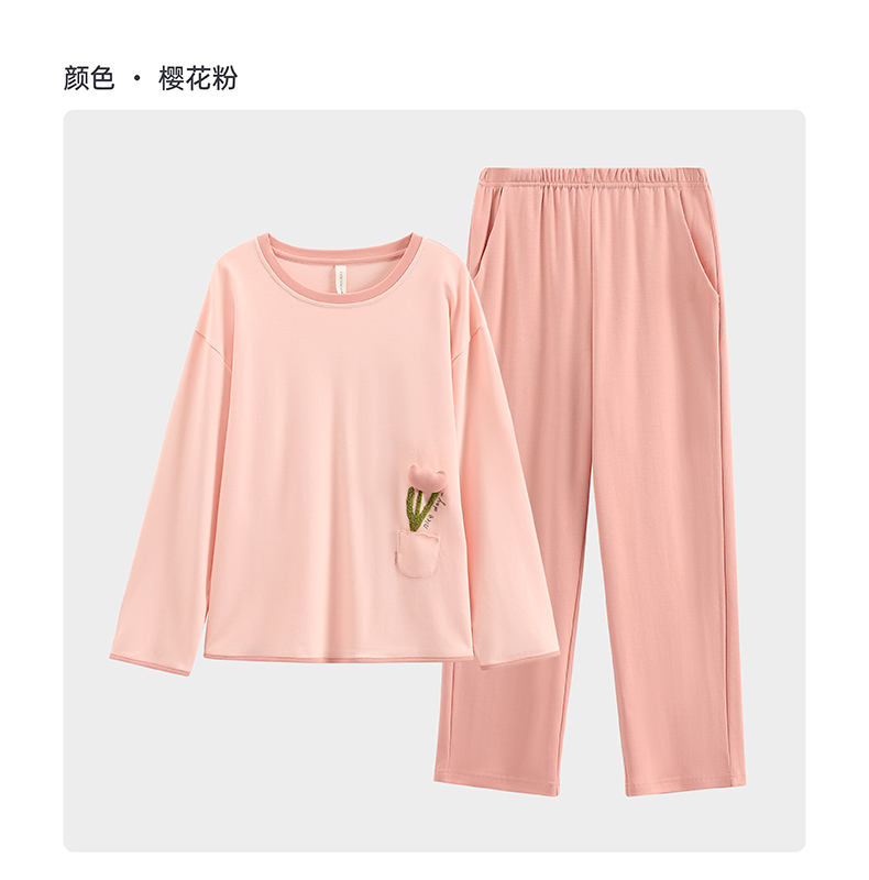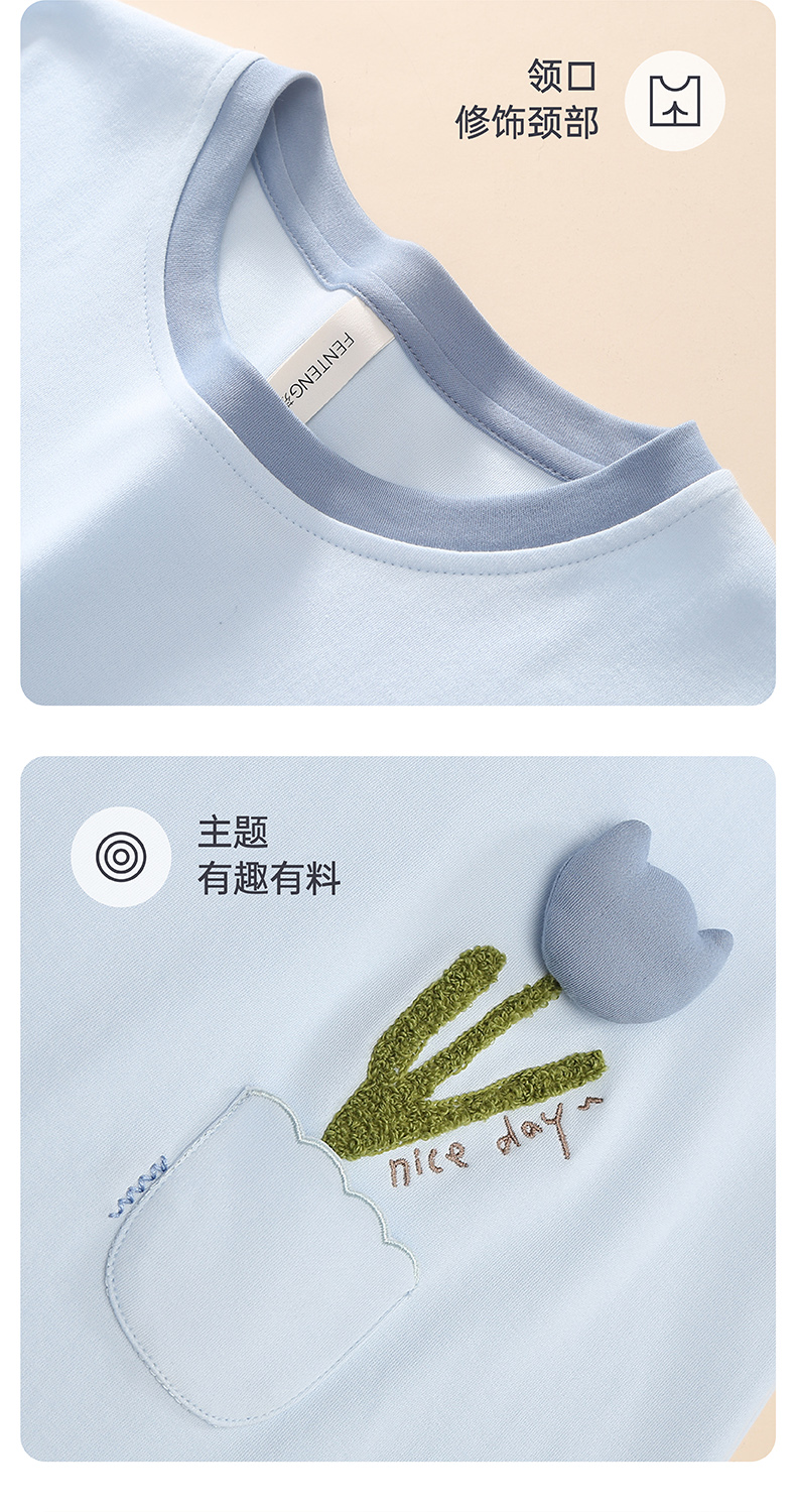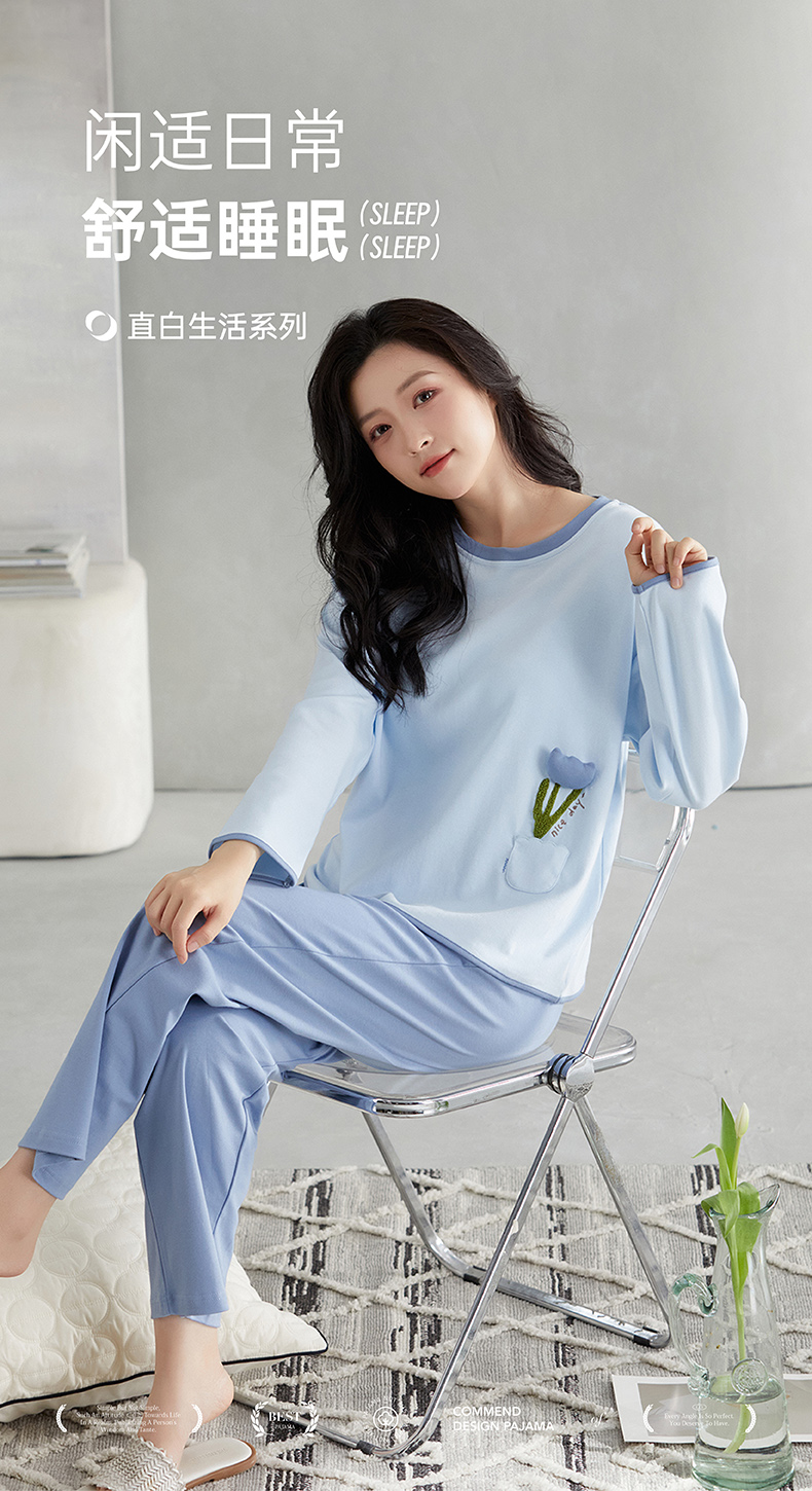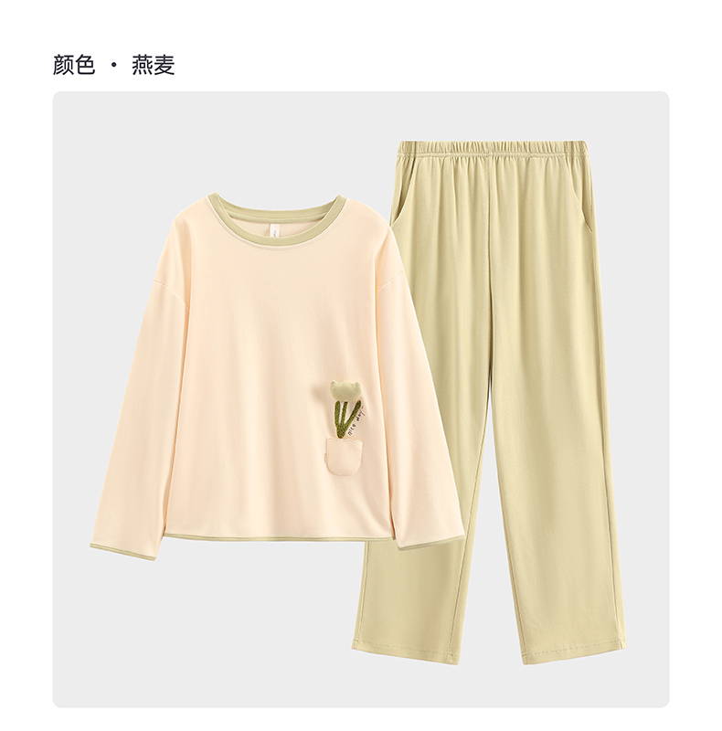 芬腾纯棉睡衣女春秋纯棉长袖圆领韩版少女大码宽松全棉家居服套装