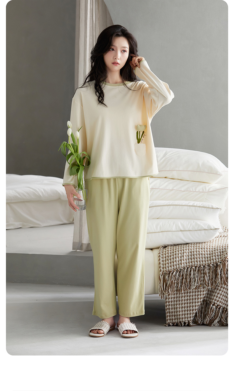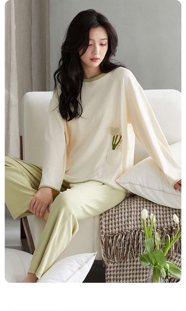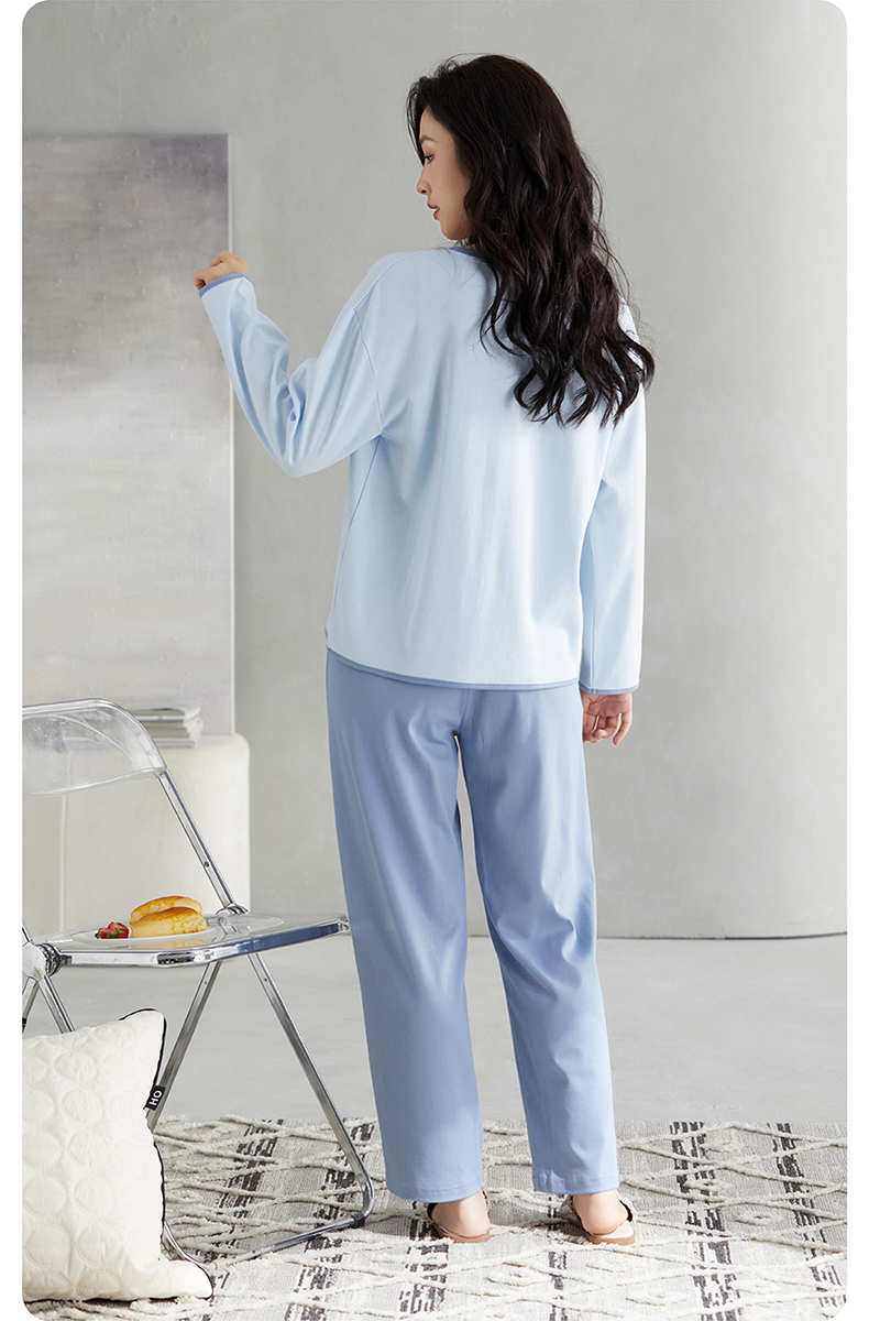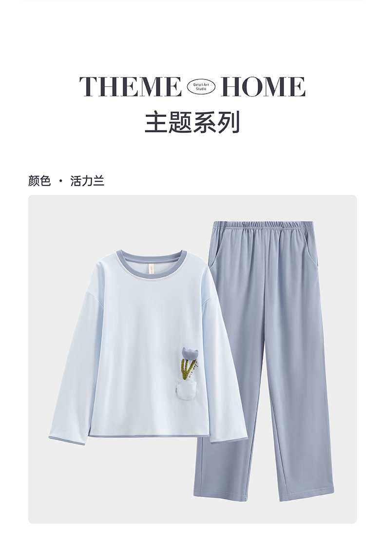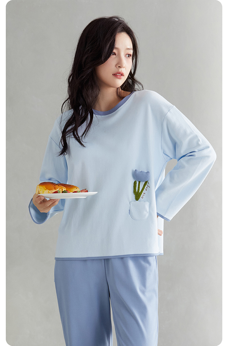 芬腾纯棉睡衣女春秋纯棉长袖圆领韩版少女大码宽松全棉家居服套装