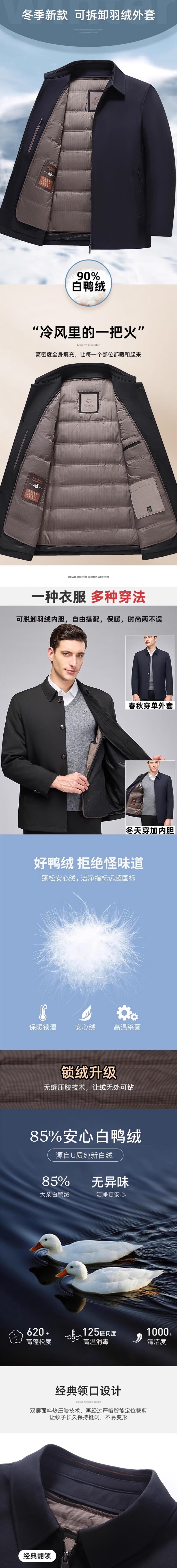 丰讯 可拆卸内胆冬季白鸭绒外套中年男士翻领羽绒服 FXNX81988