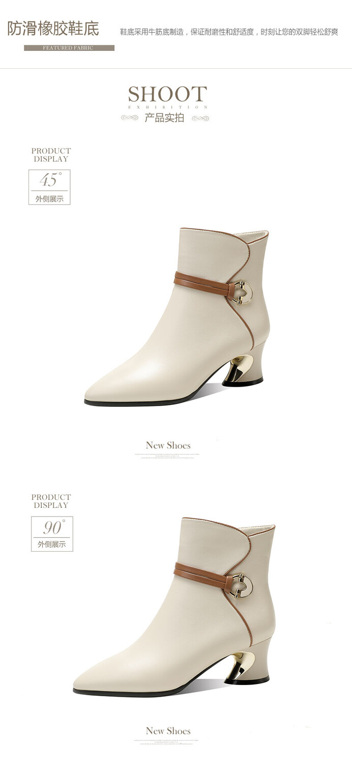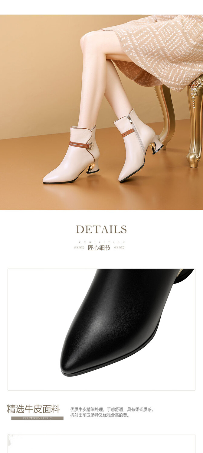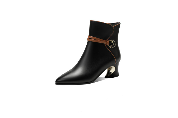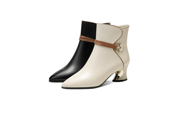 【预售5天】秋冬新款短靴女时尚拼色尖头显瘦马丁靴加绒舒适百搭短筒单靴JLD&8866