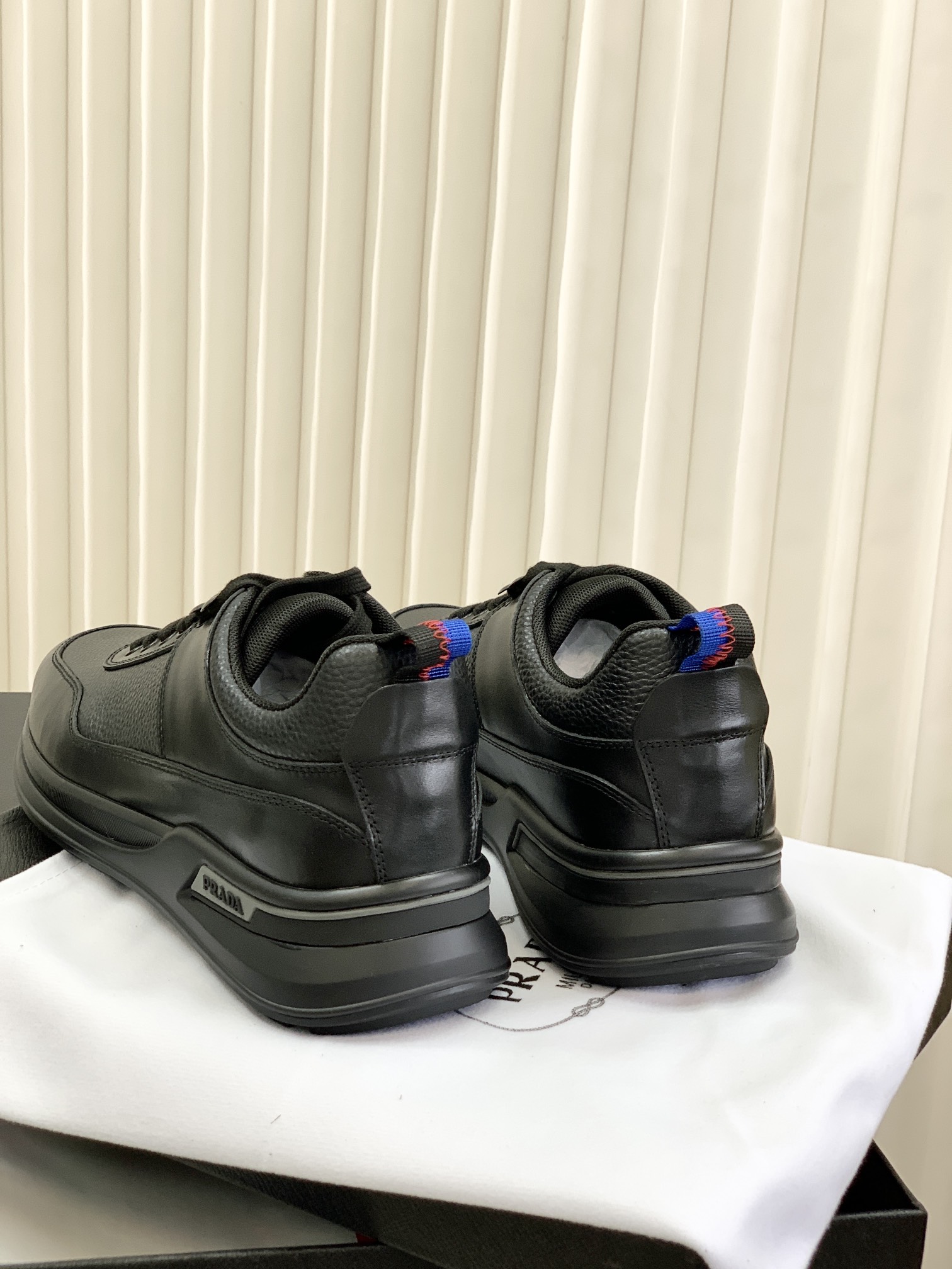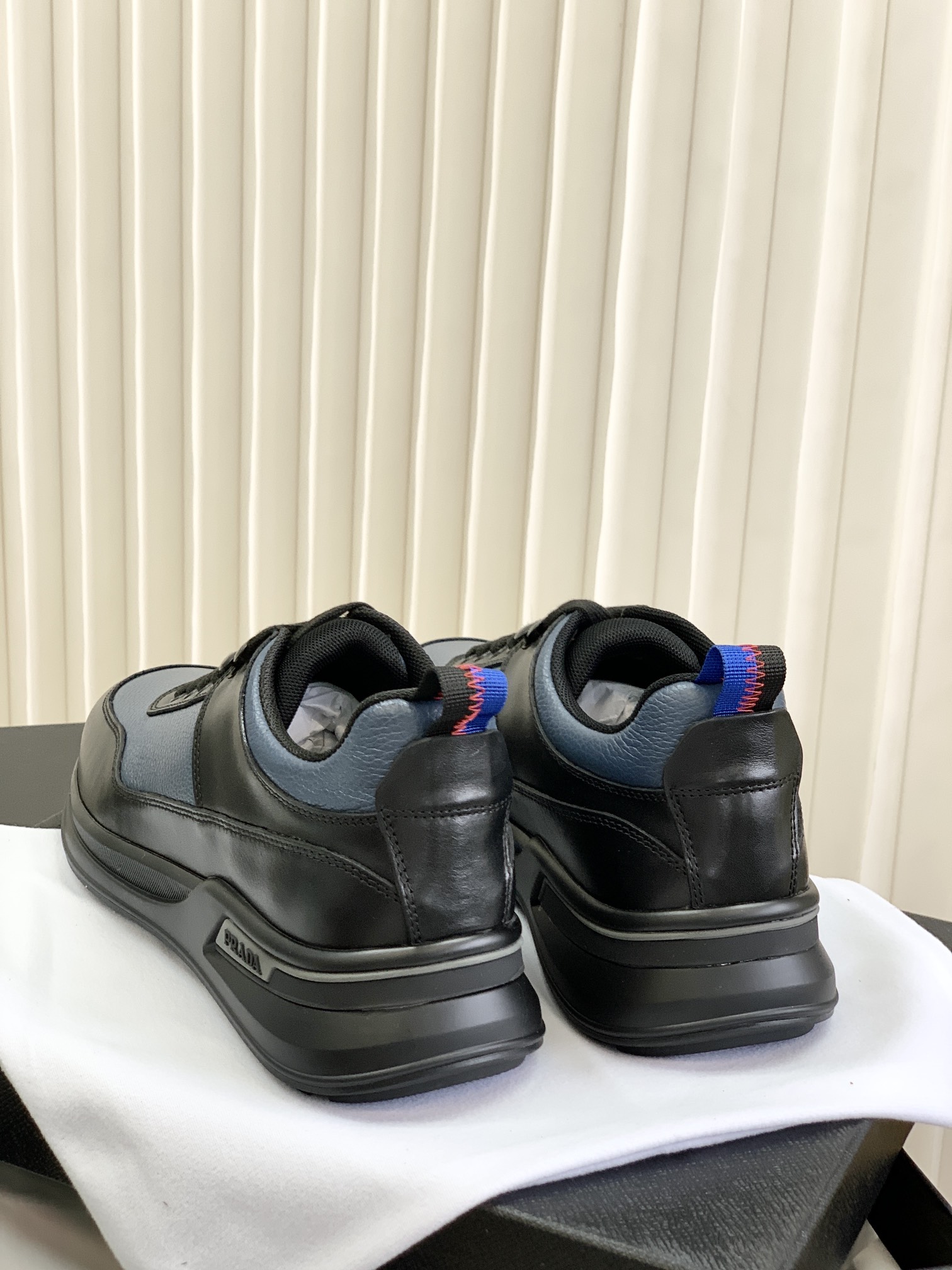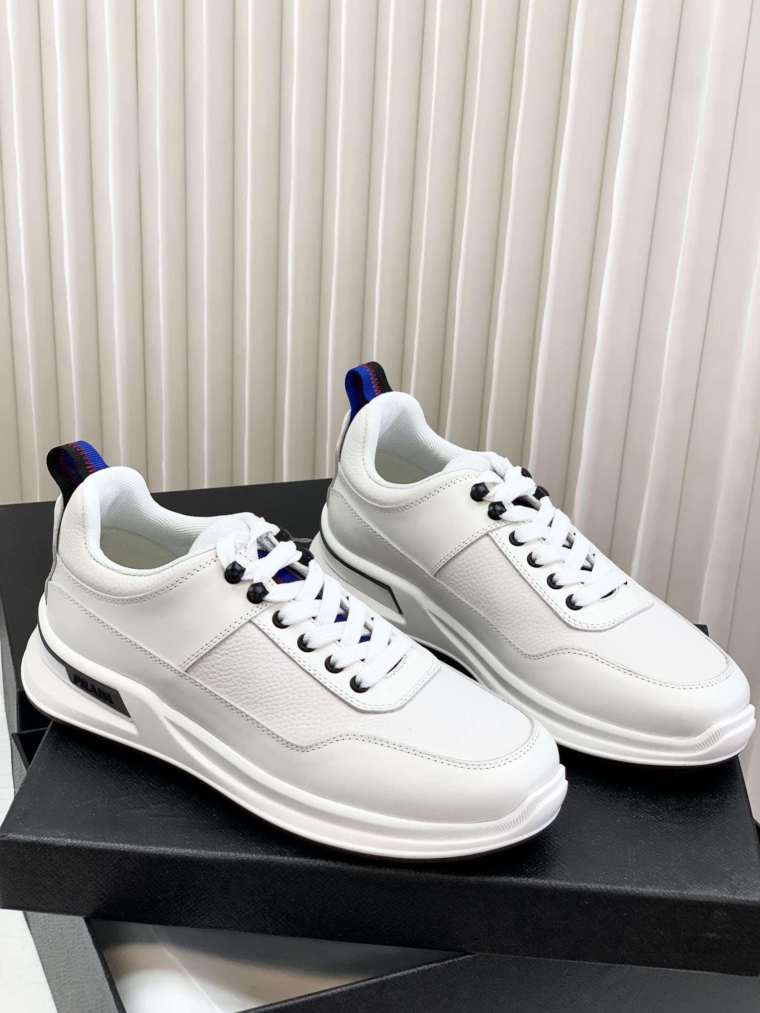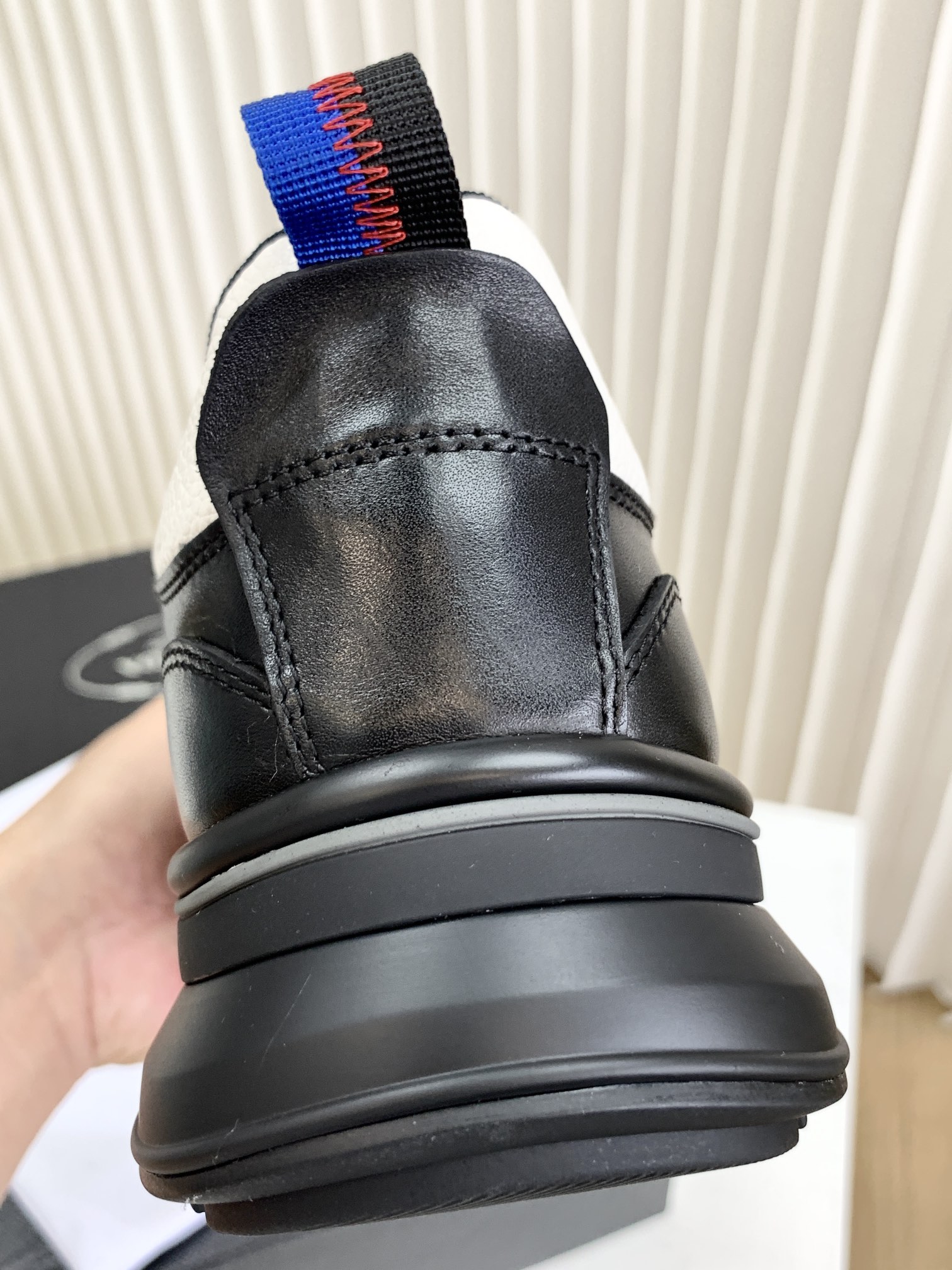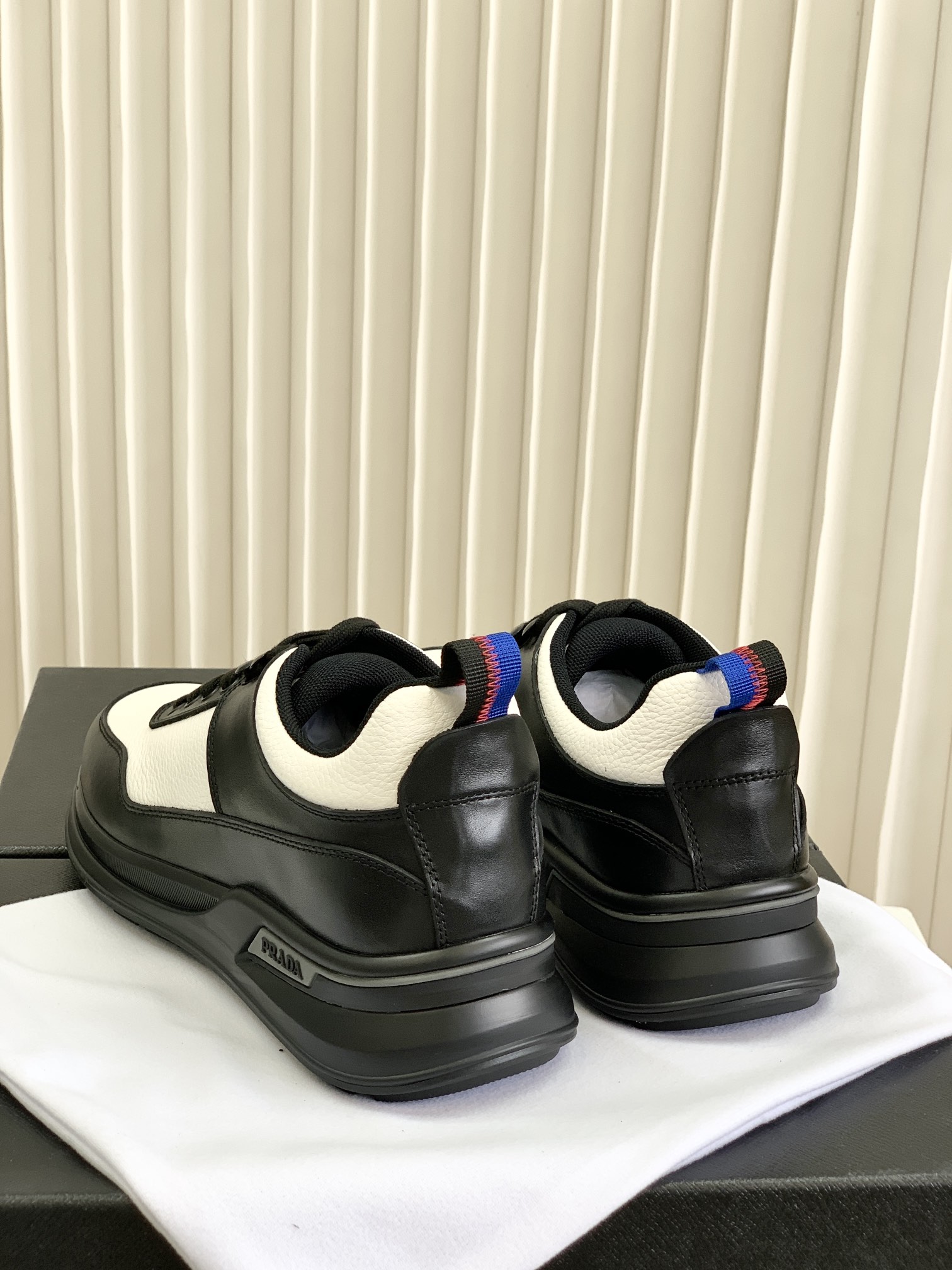 P**rada,正单,顶级,官网同步,2025最新款,男士商务休闲运动鞋‼️ 这款运动鞋采用光滑小牛皮拼接荔枝纹牛皮,现代简约风格,舒适透气,实用百搭,配以全金属珐琅鞋眼棉鞋带,鞋舌饰以撞色织带,与后跟鞋提拉袢相呼应,搭配4cm轻便的凸纹橡胶鞋底,外侧饰有Prada徽标细节,织物透气内里,品牌徽标牛皮垫脚,缔造舒适的穿着体验!