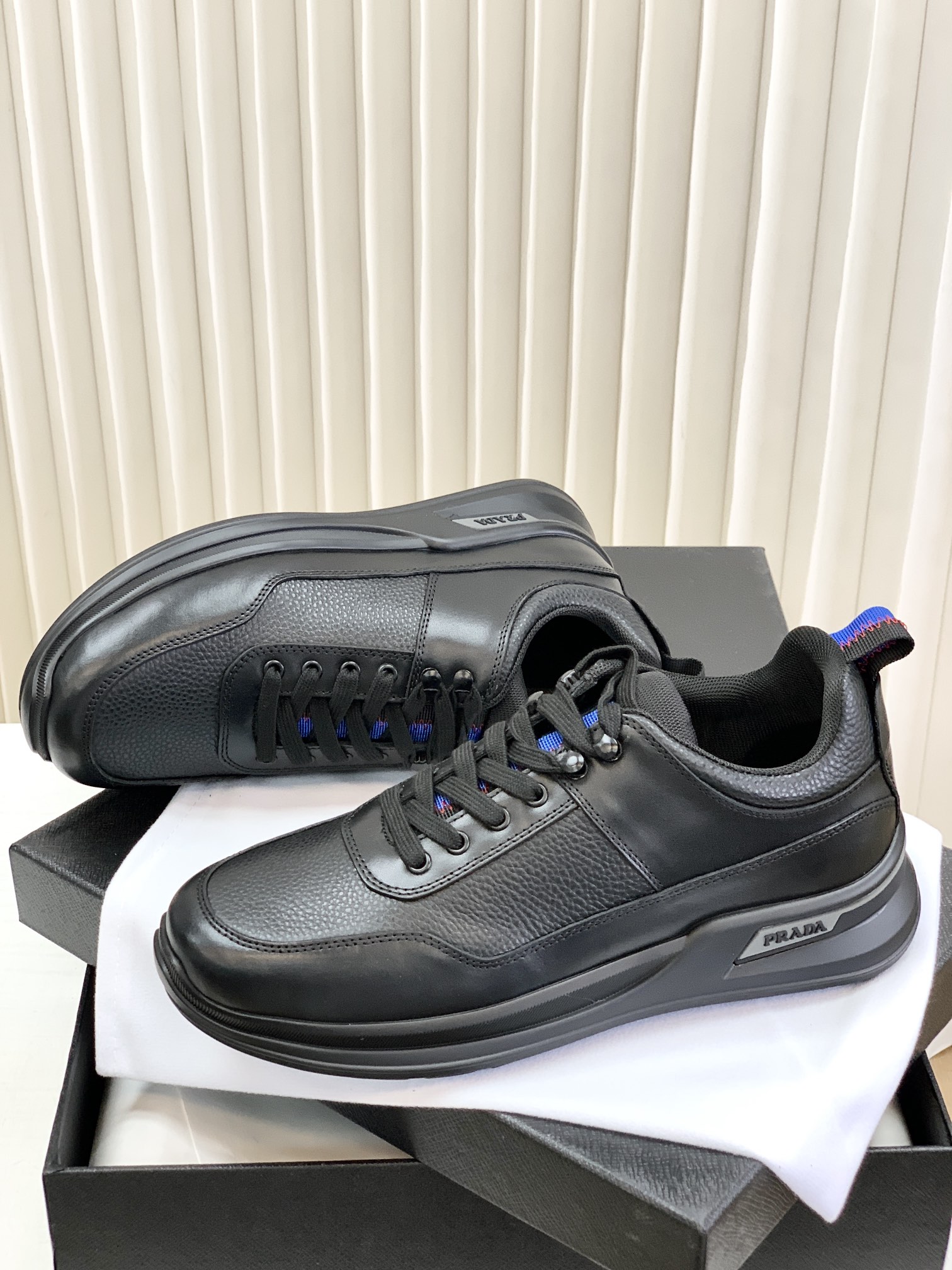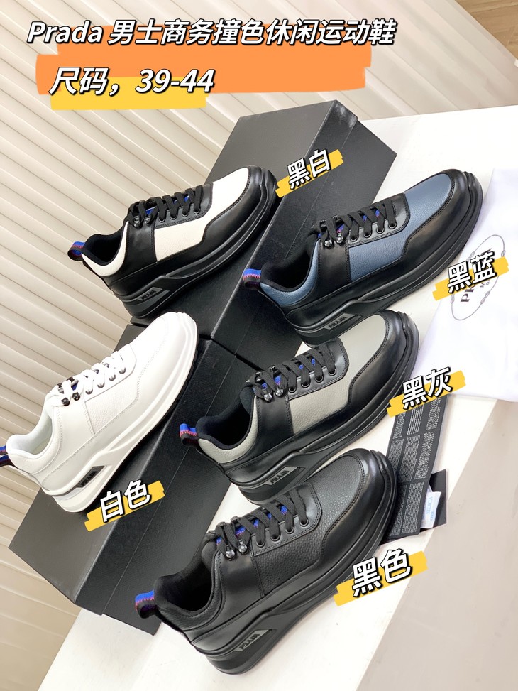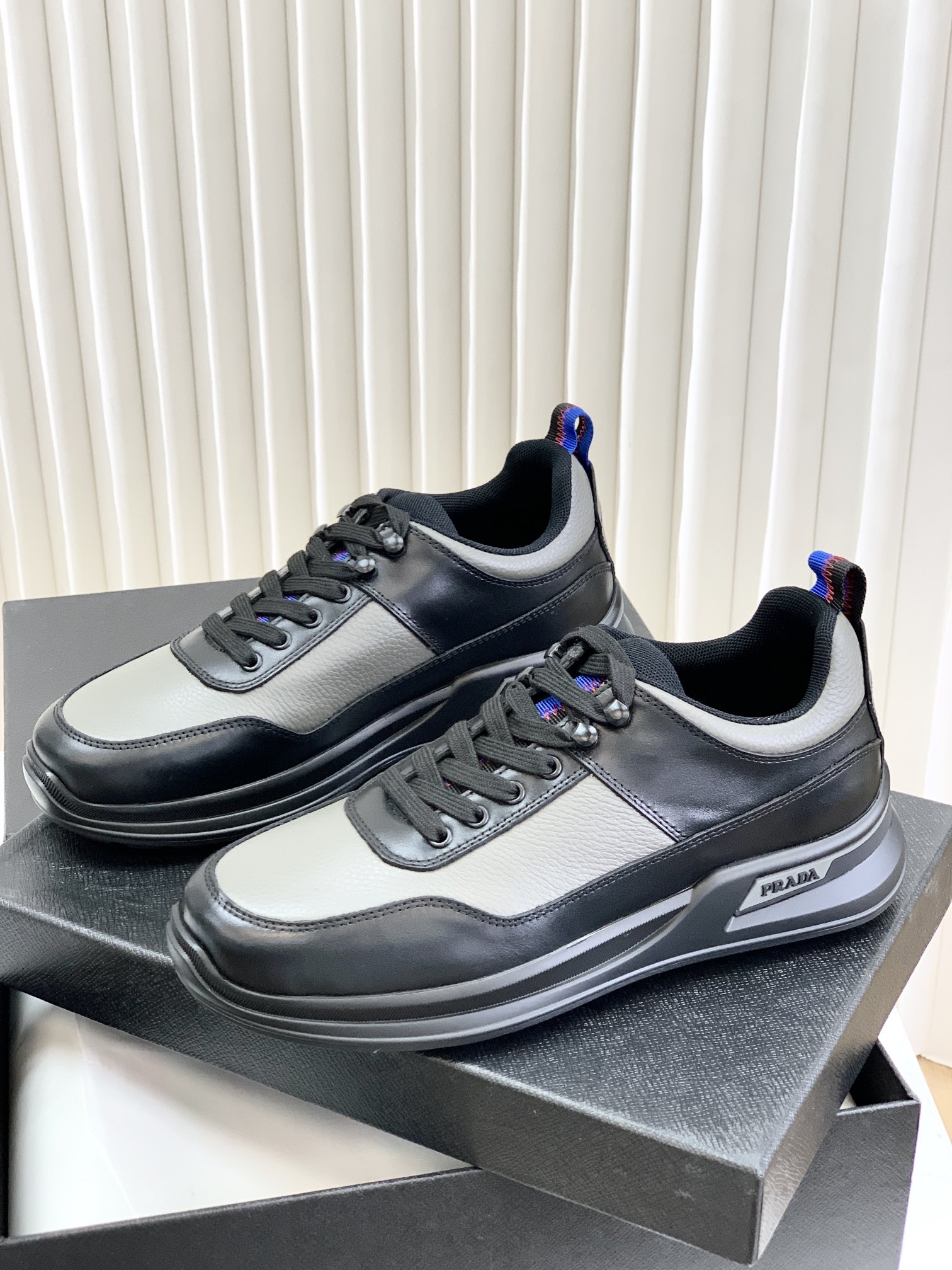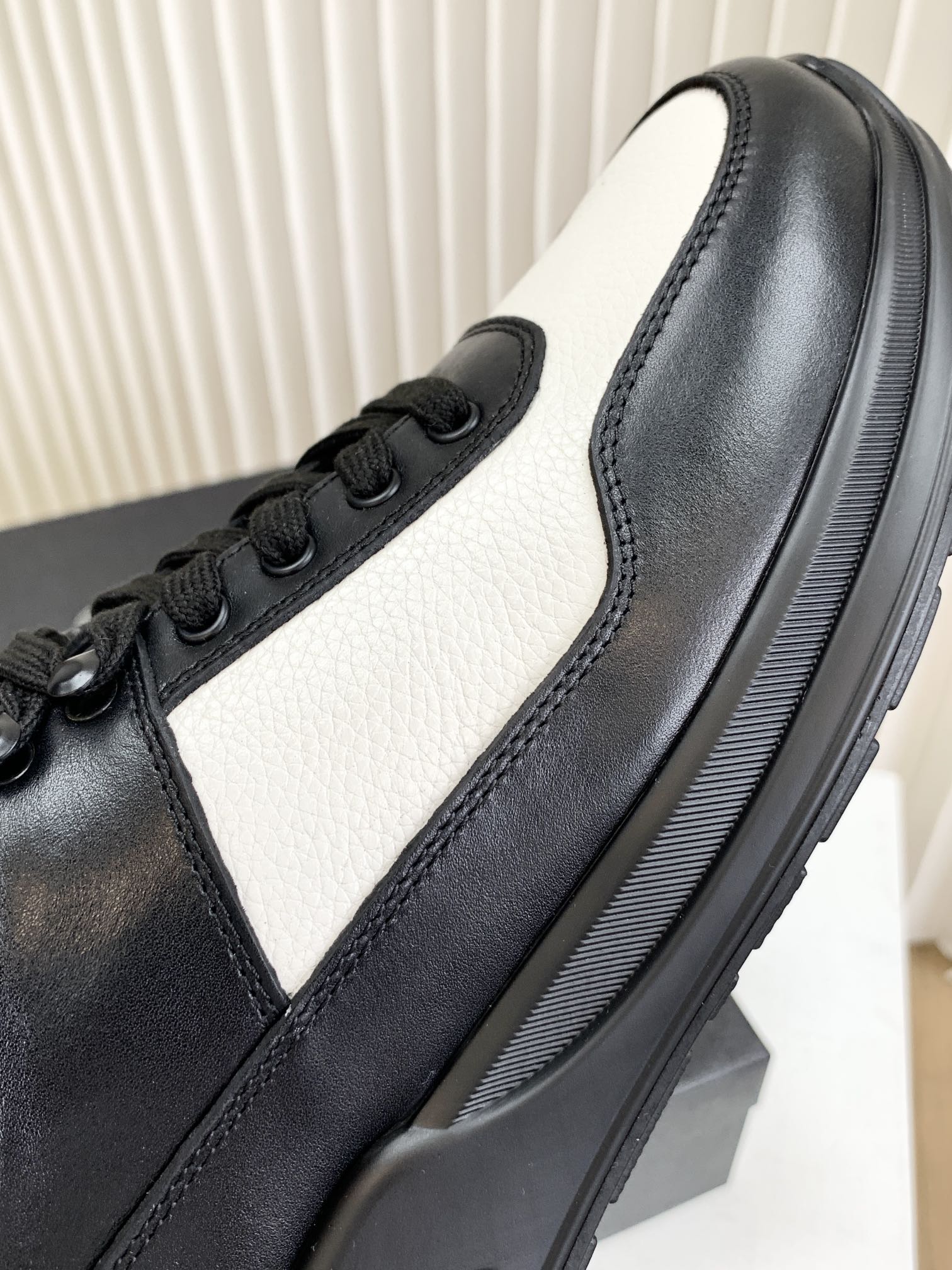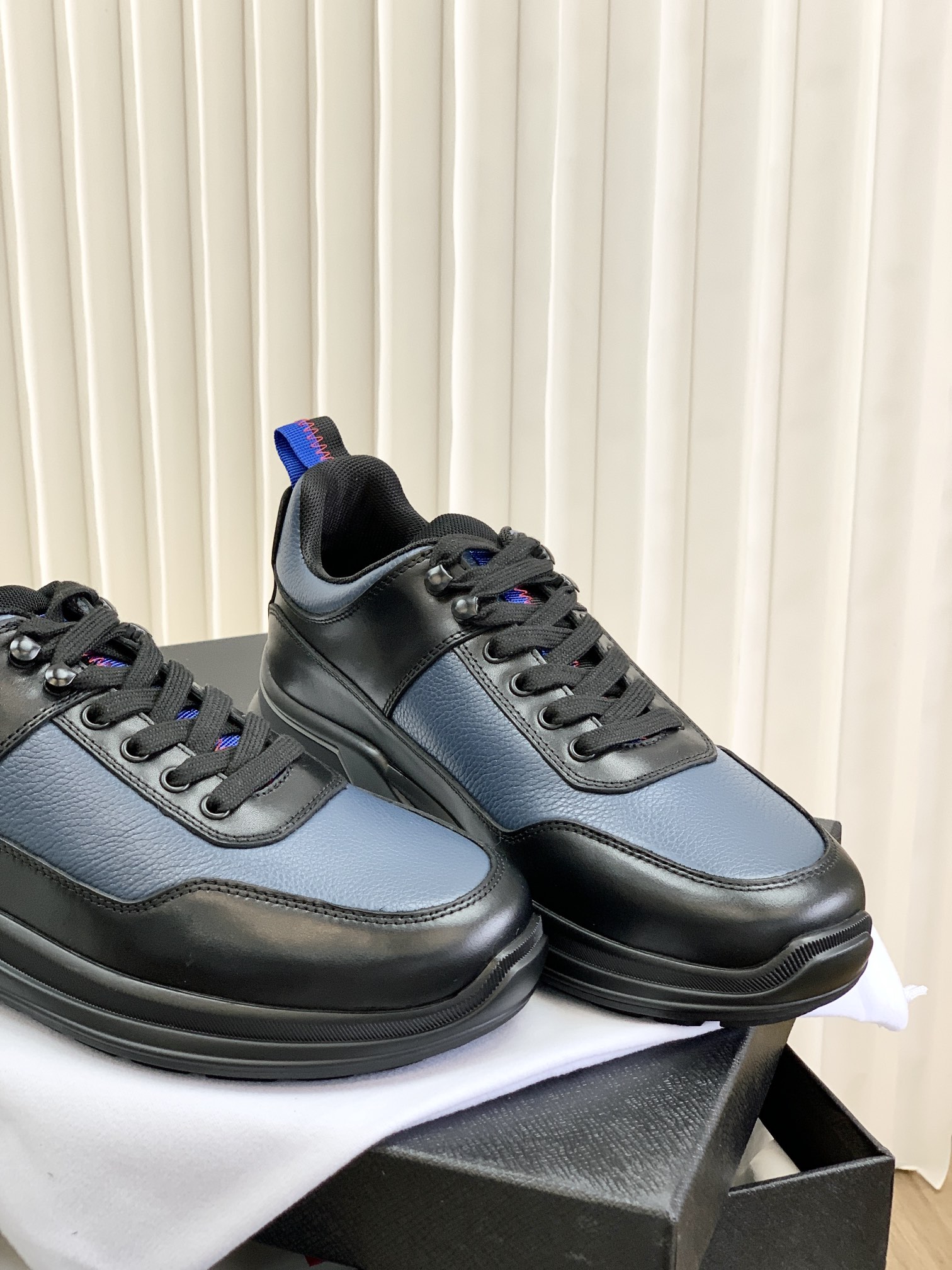 P**rada,正单,顶级,官网同步,2025最新款,男士商务休闲运动鞋‼️ 这款运动鞋采用光滑小牛皮拼接荔枝纹牛皮,现代简约风格,舒适透气,实用百搭,配以全金属珐琅鞋眼棉鞋带,鞋舌饰以撞色织带,与后跟鞋提拉袢相呼应,搭配4cm轻便的凸纹橡胶鞋底,外侧饰有Prada徽标细节,织物透气内里,品牌徽标牛皮垫脚,缔造舒适的穿着体验!