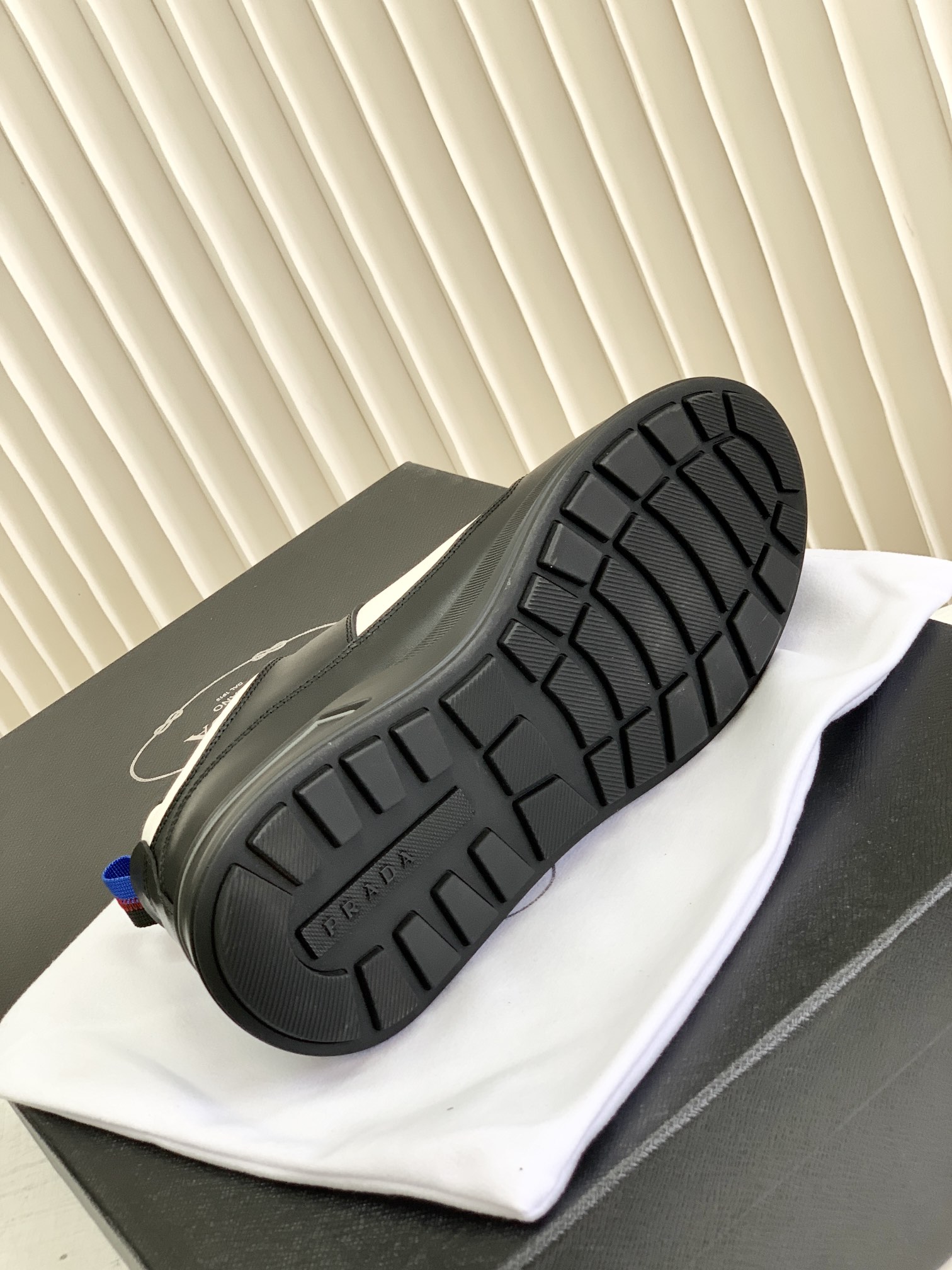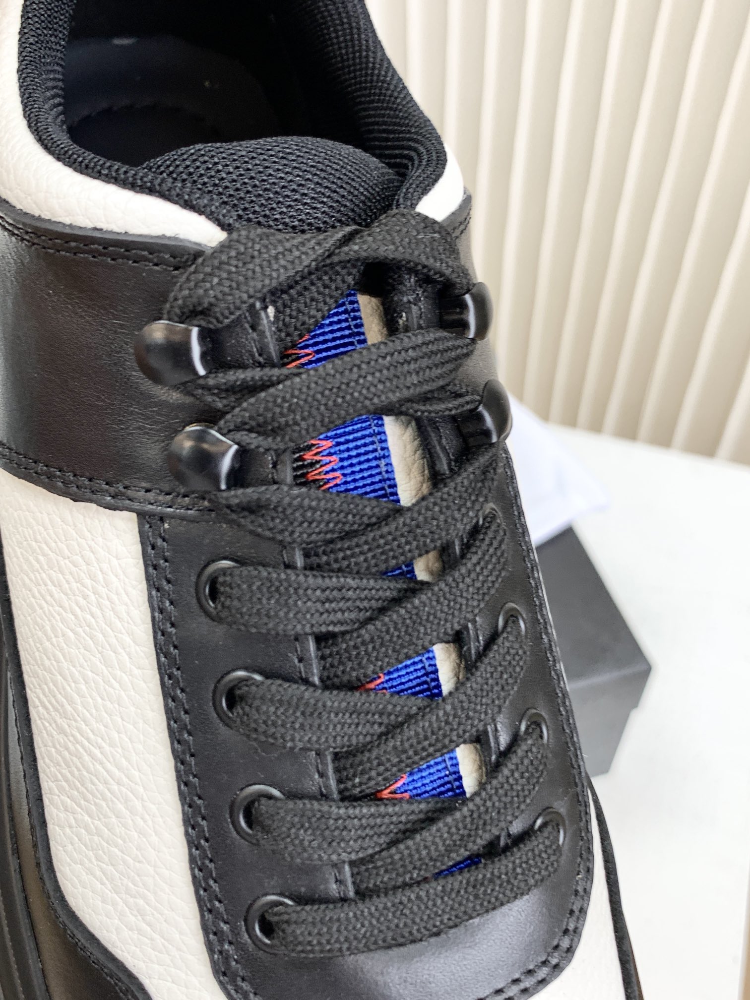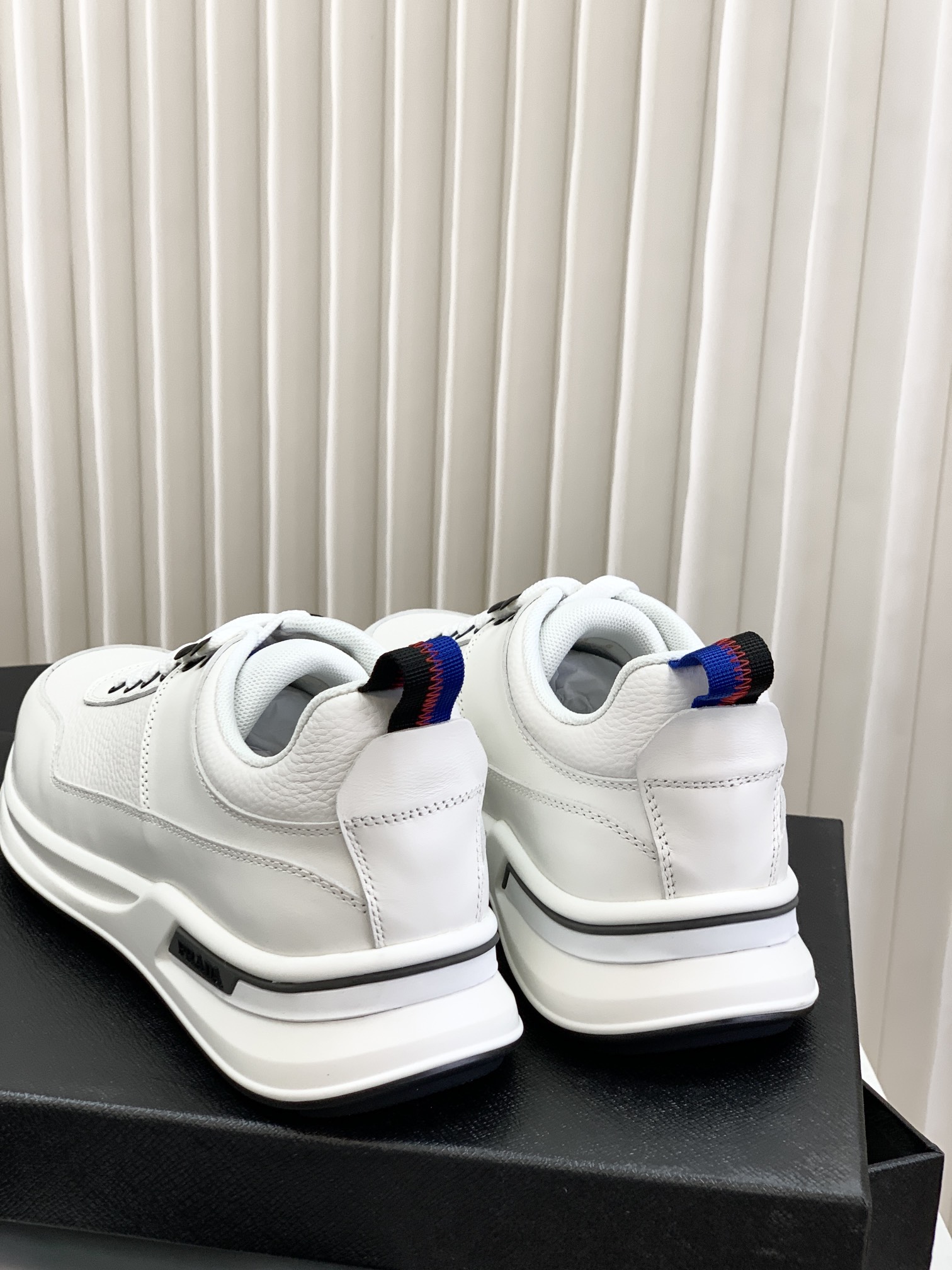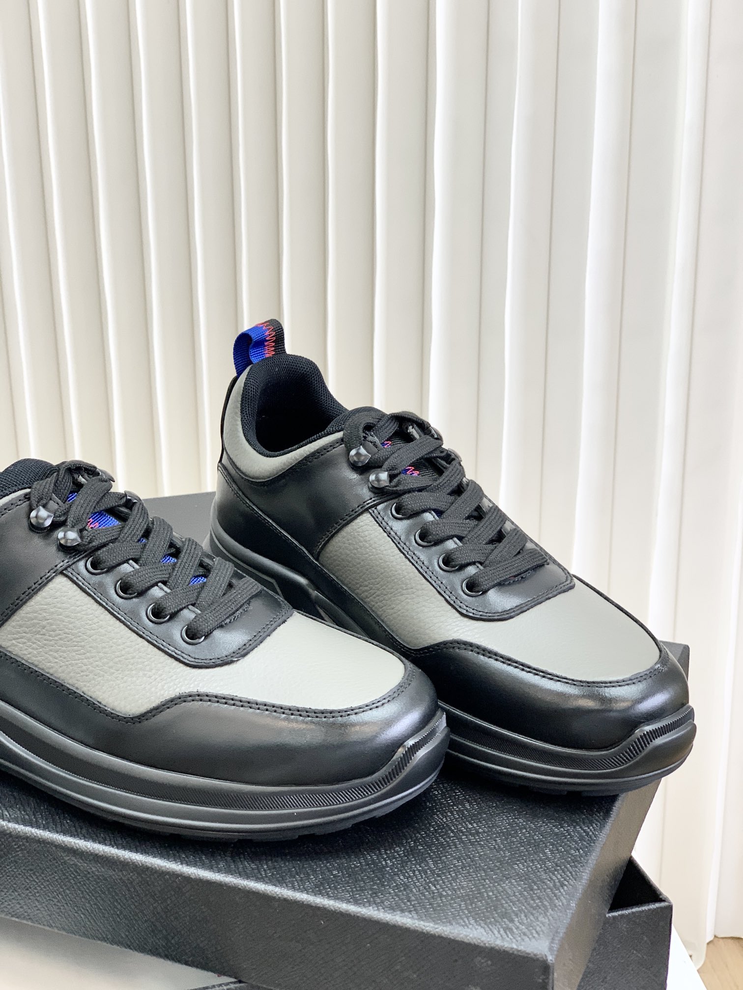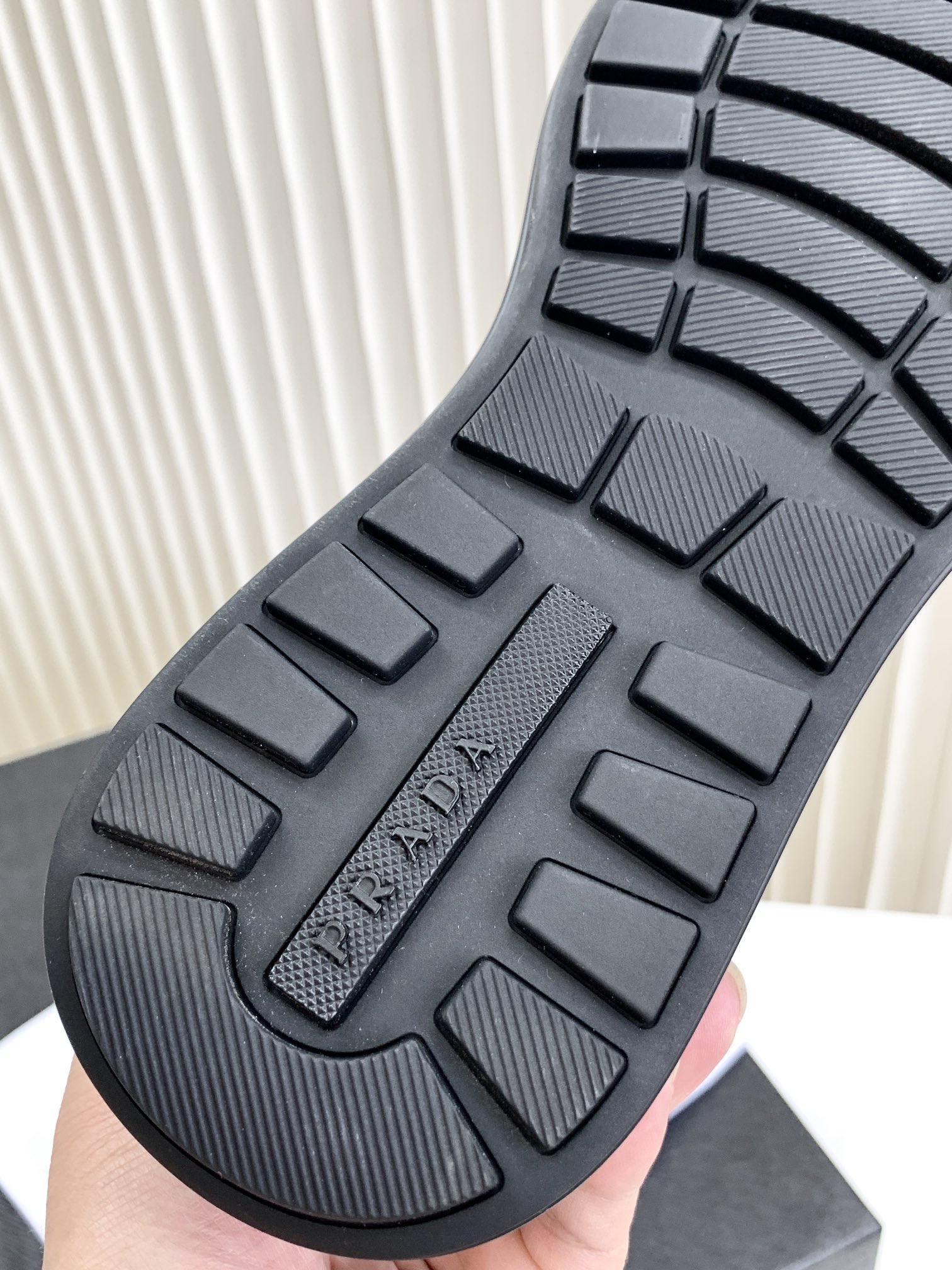 P**rada,正单,顶级,官网同步,2025最新款,男士商务休闲运动鞋‼️ 这款运动鞋采用光滑小牛皮拼接荔枝纹牛皮,现代简约风格,舒适透气,实用百搭,配以全金属珐琅鞋眼棉鞋带,鞋舌饰以撞色织带,与后跟鞋提拉袢相呼应,搭配4cm轻便的凸纹橡胶鞋底,外侧饰有Prada徽标细节,织物透气内里,品牌徽标牛皮垫脚,缔造舒适的穿着体验!