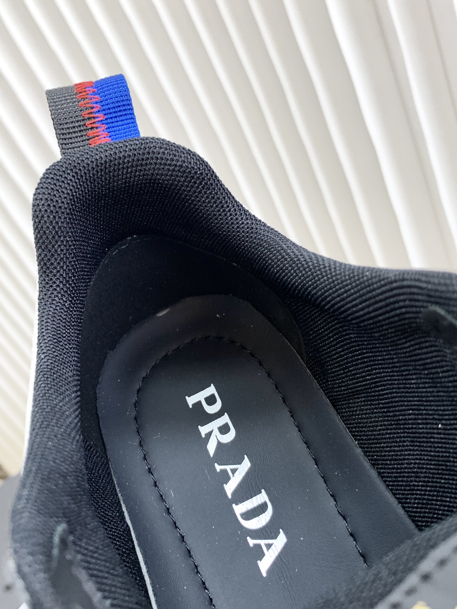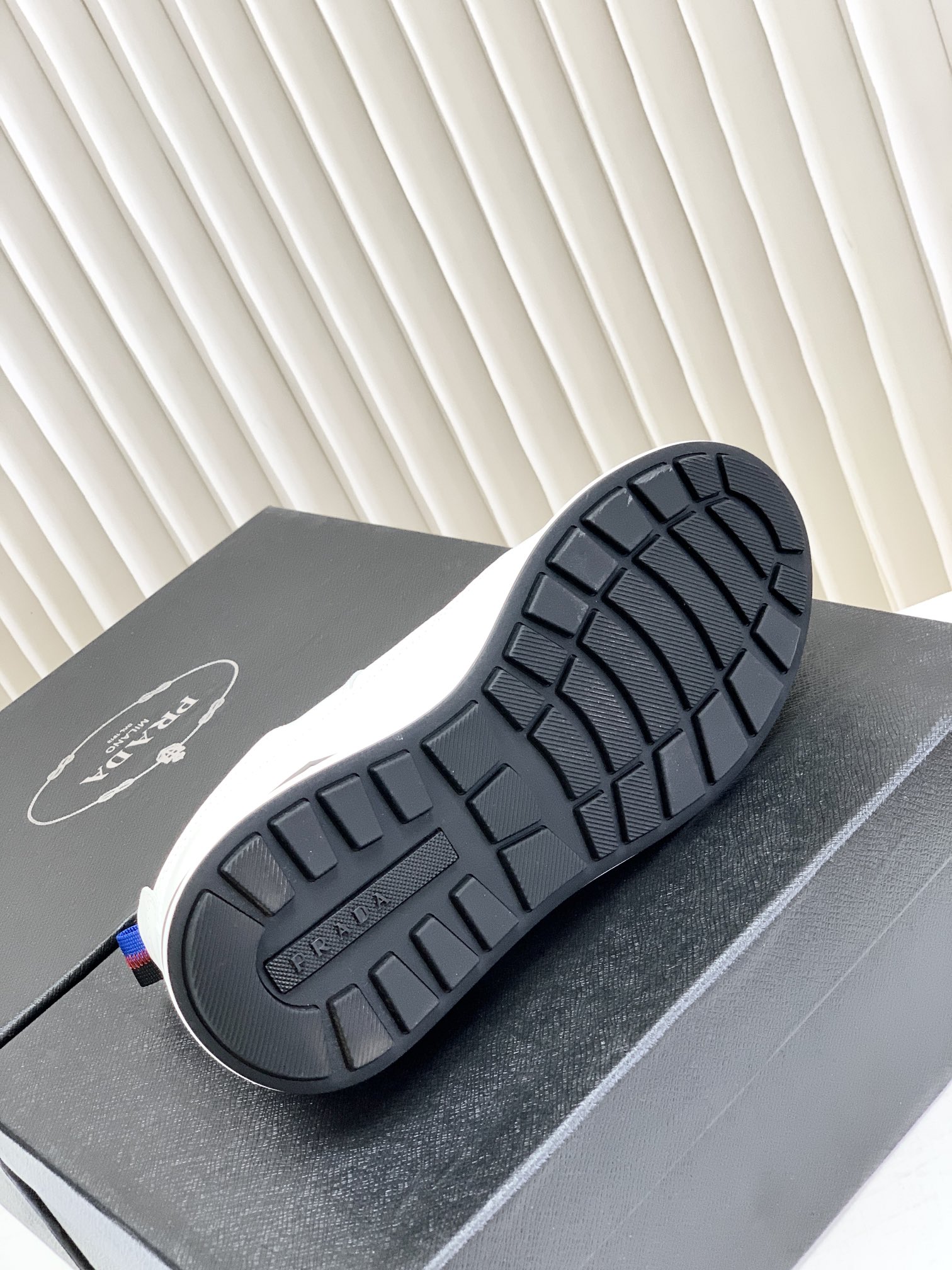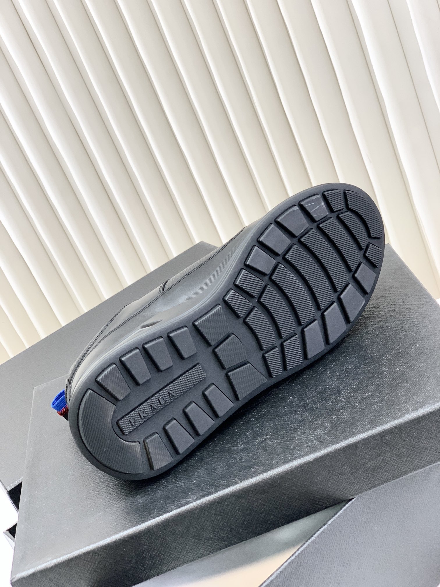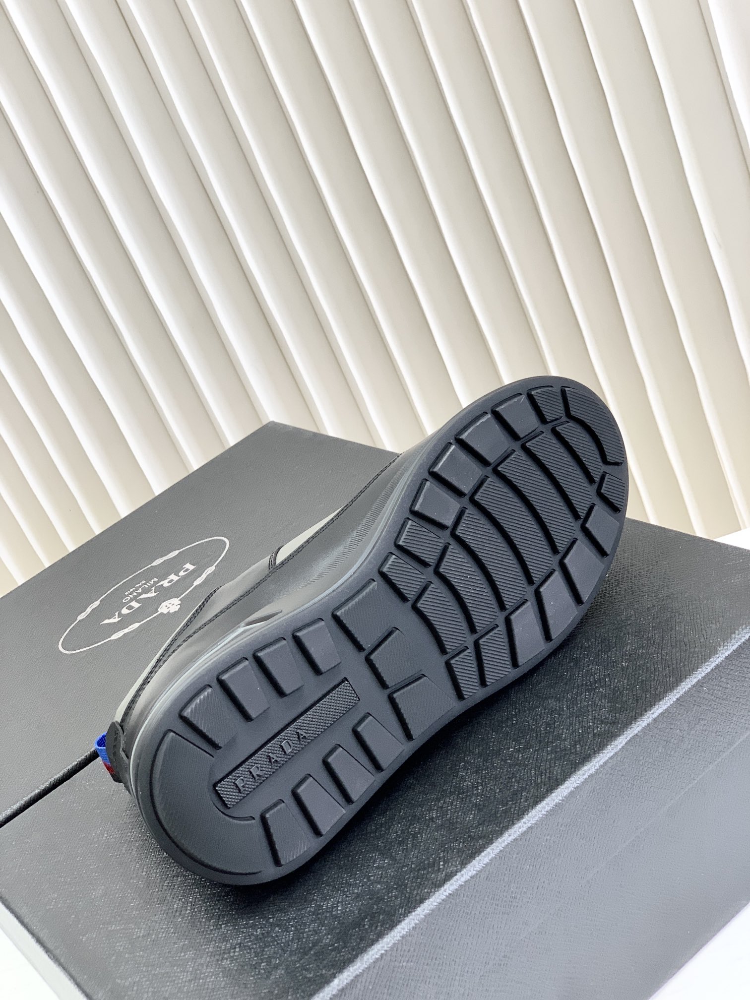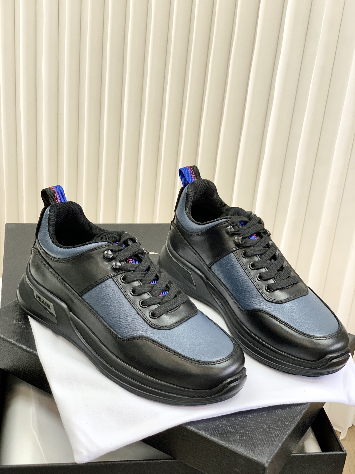 P**rada,正单,顶级,官网同步,2025最新款,男士商务休闲运动鞋‼️ 这款运动鞋采用光滑小牛皮拼接荔枝纹牛皮,现代简约风格,舒适透气,实用百搭,配以全金属珐琅鞋眼棉鞋带,鞋舌饰以撞色织带,与后跟鞋提拉袢相呼应,搭配4cm轻便的凸纹橡胶鞋底,外侧饰有Prada徽标细节,织物透气内里,品牌徽标牛皮垫脚,缔造舒适的穿着体验!