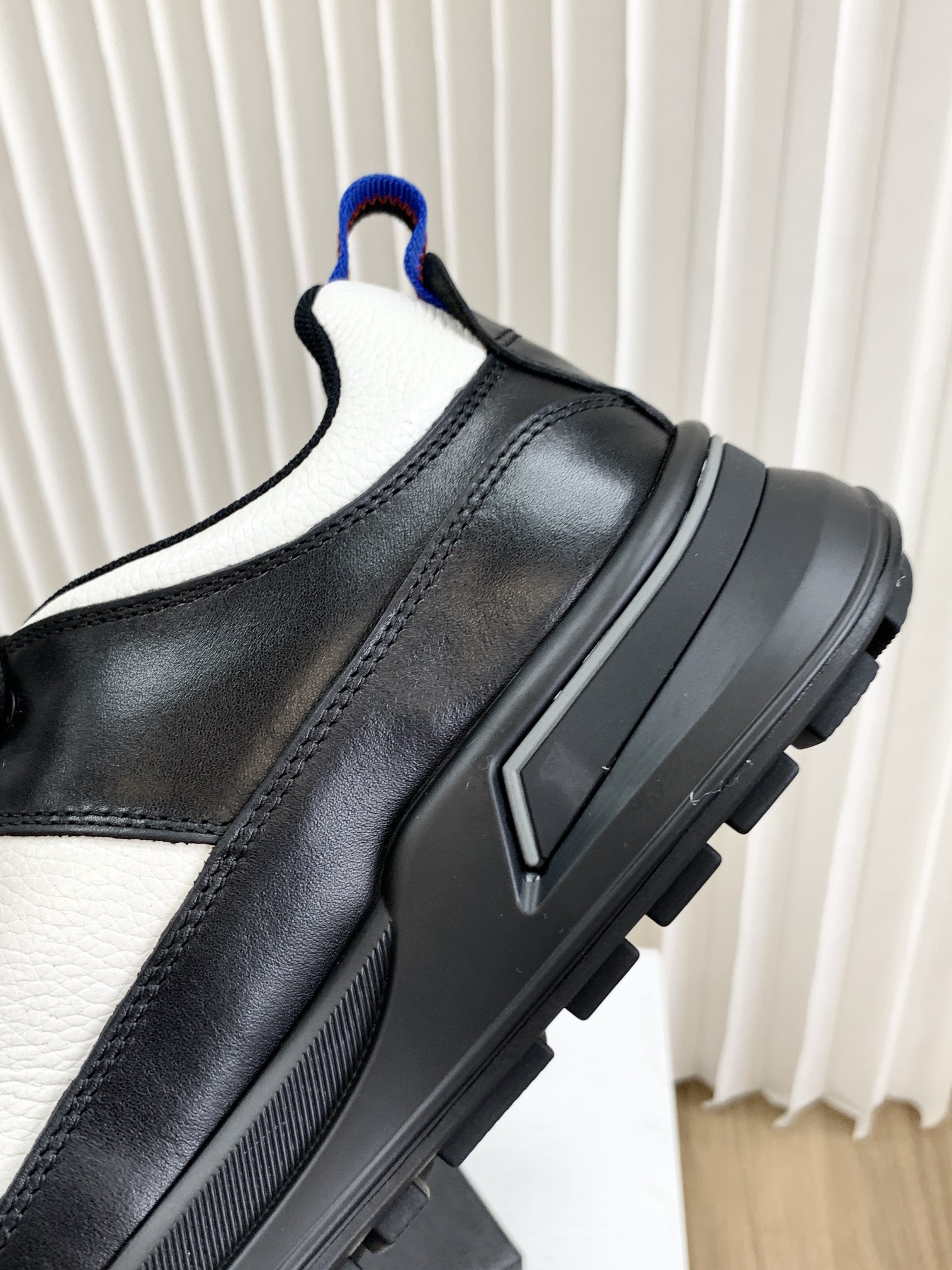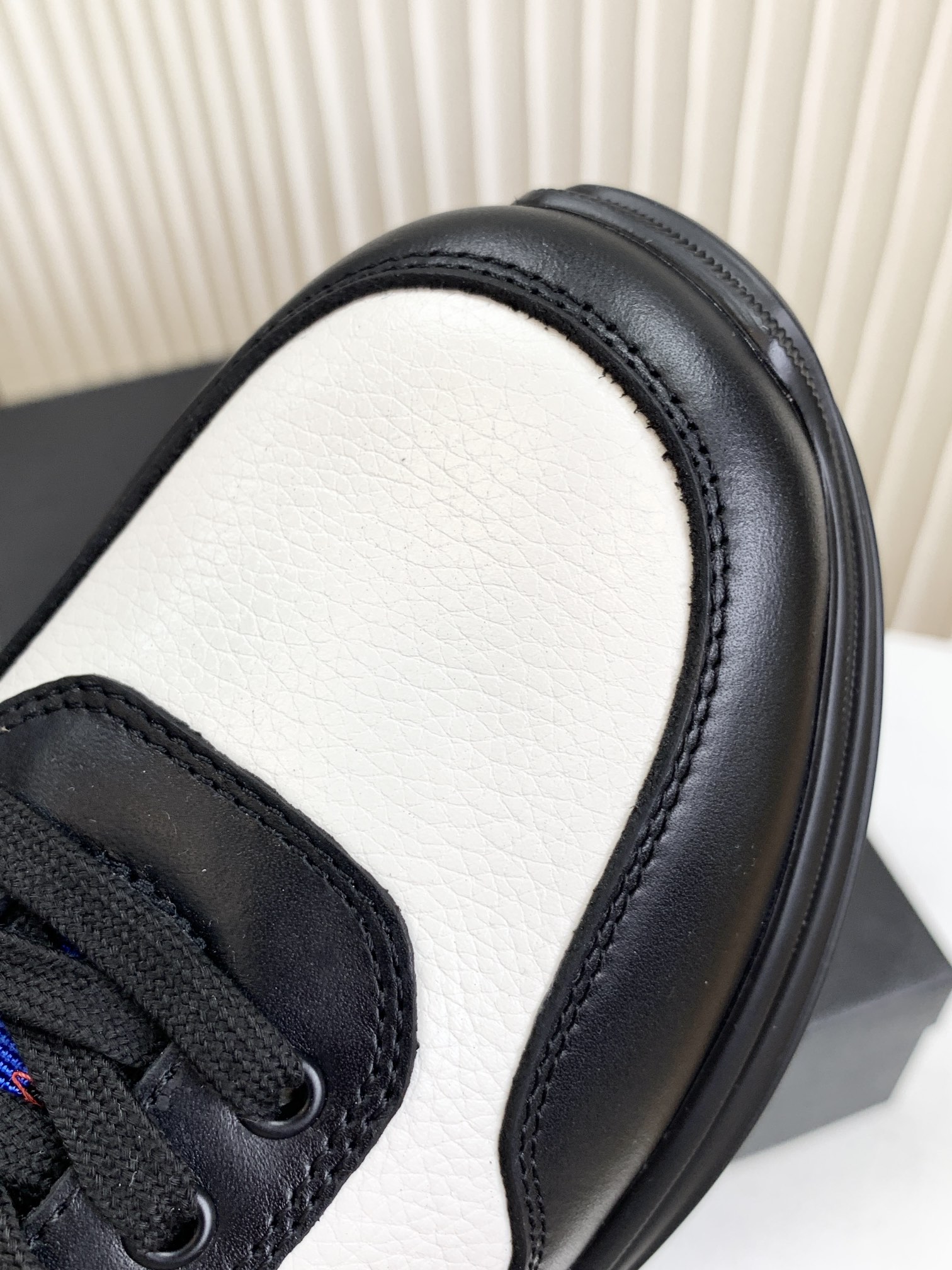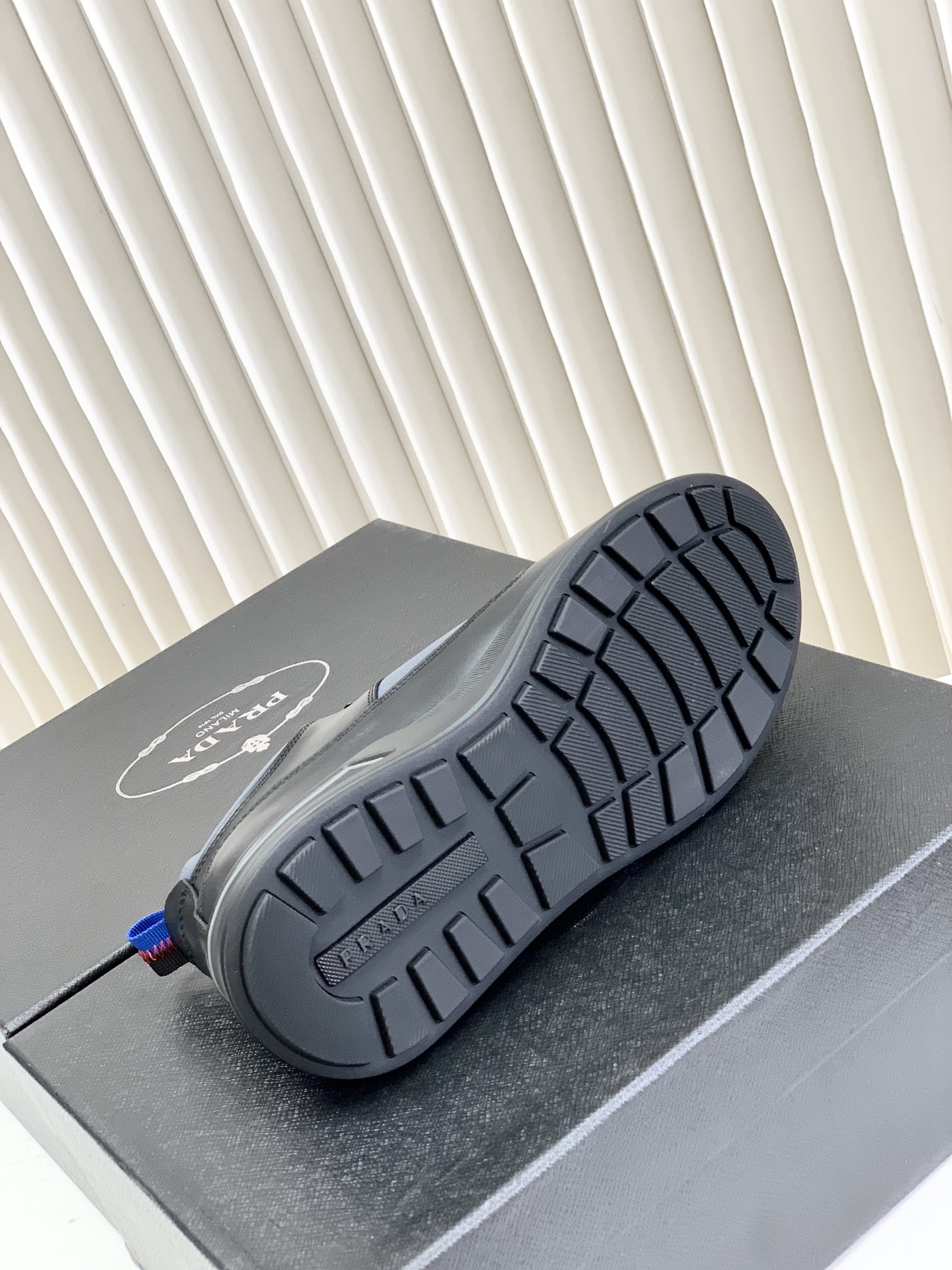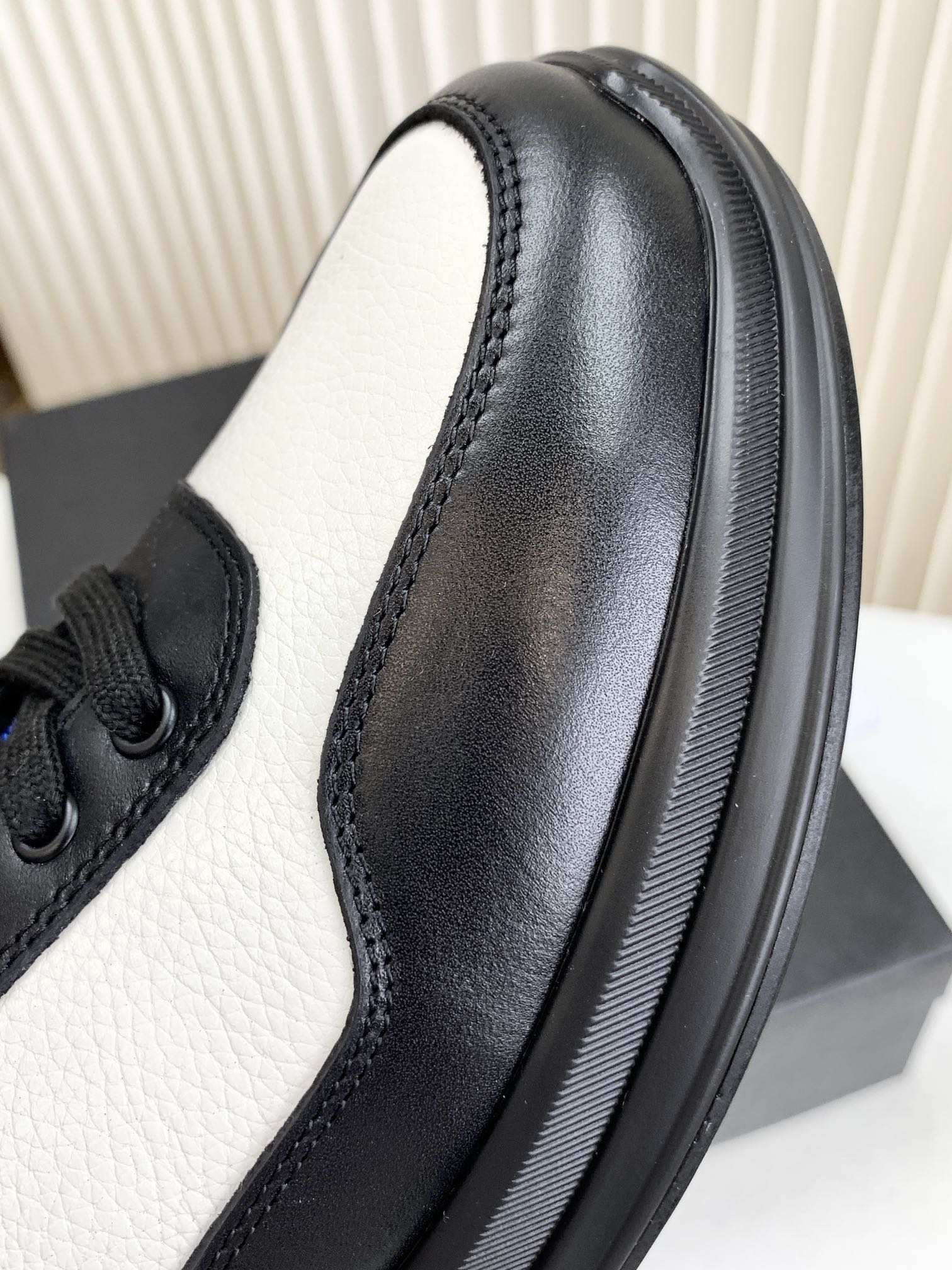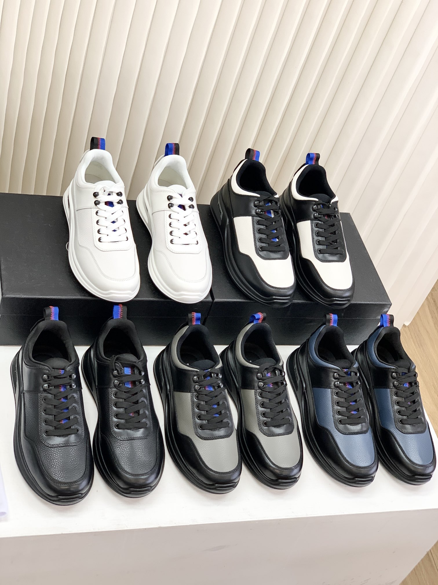 P**rada,正单,顶级,官网同步,2025最新款,男士商务休闲运动鞋‼️ 这款运动鞋采用光滑小牛皮拼接荔枝纹牛皮,现代简约风格,舒适透气,实用百搭,配以全金属珐琅鞋眼棉鞋带,鞋舌饰以撞色织带,与后跟鞋提拉袢相呼应,搭配4cm轻便的凸纹橡胶鞋底,外侧饰有Prada徽标细节,织物透气内里,品牌徽标牛皮垫脚,缔造舒适的穿着体验!