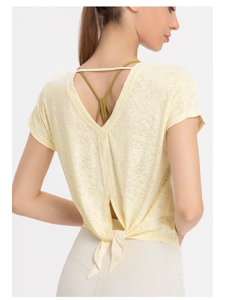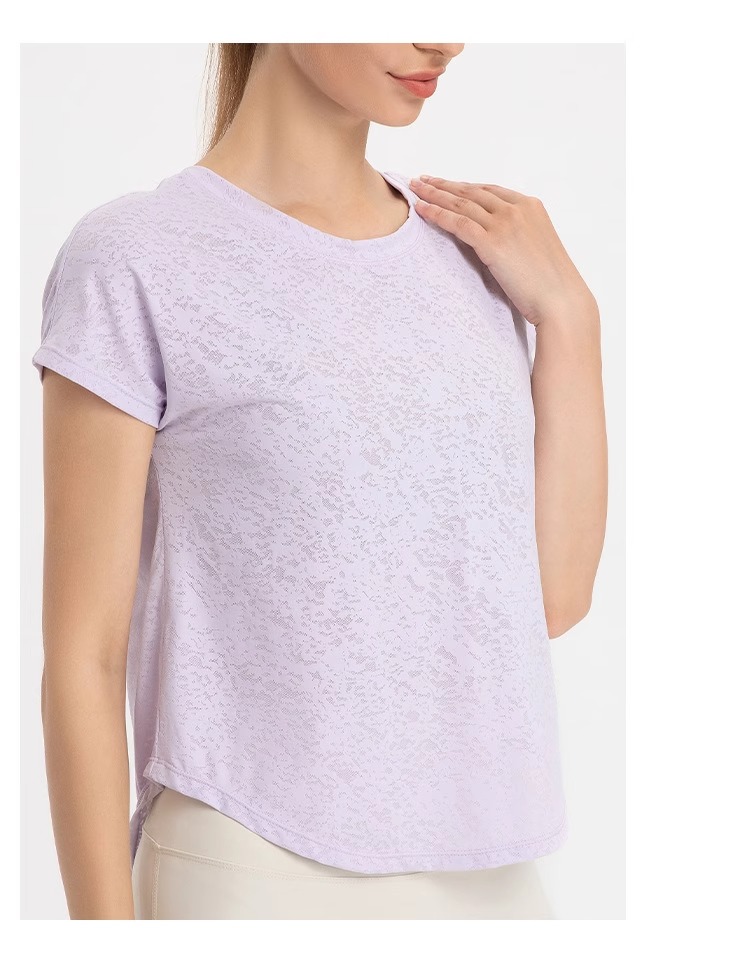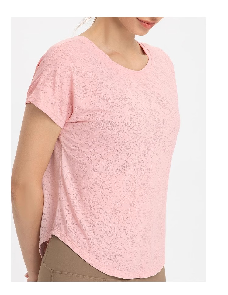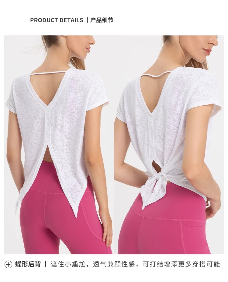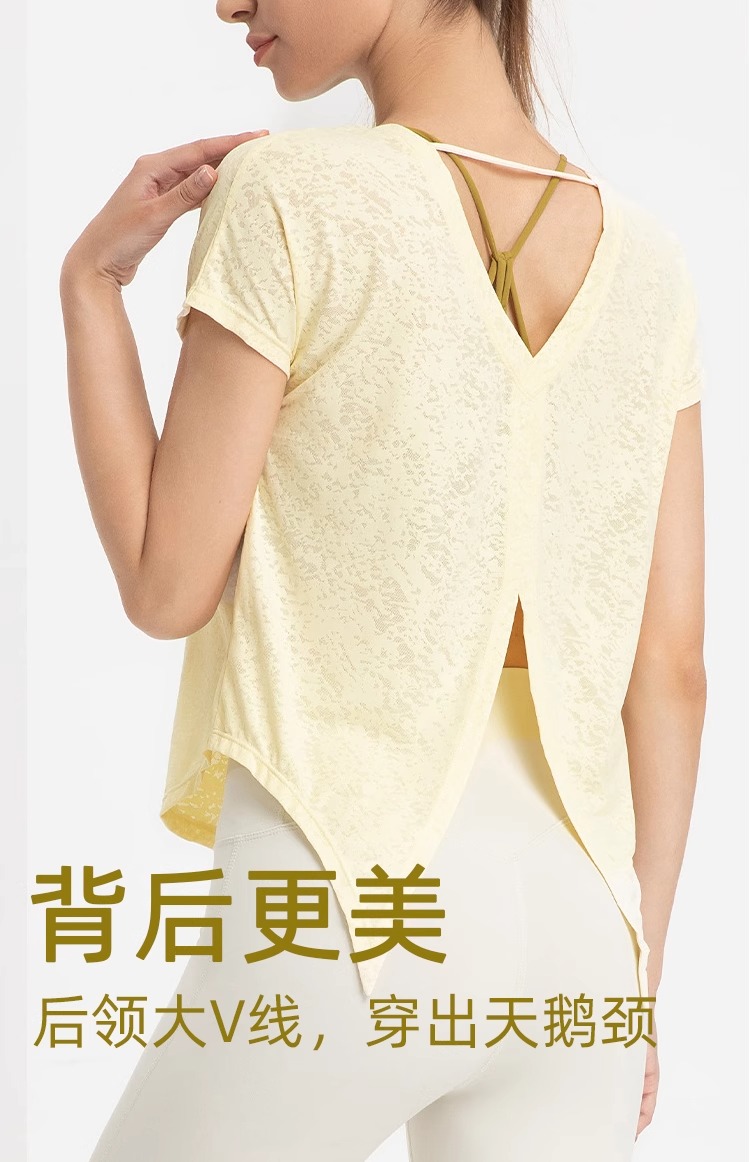 跃牌【美西西系列】普拉提训练服夏轻薄运动健身服提花开衩罩衫女短袖DX-233