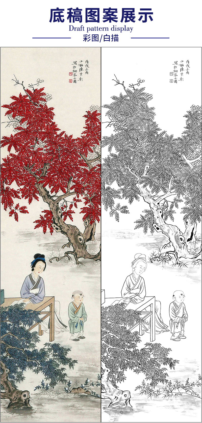 陈少梅山水人物工笔画白描底稿《人物》临摹勾线高清打印稿SM28