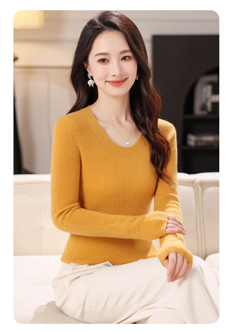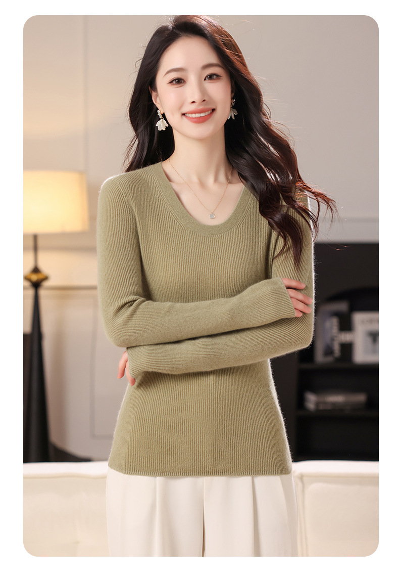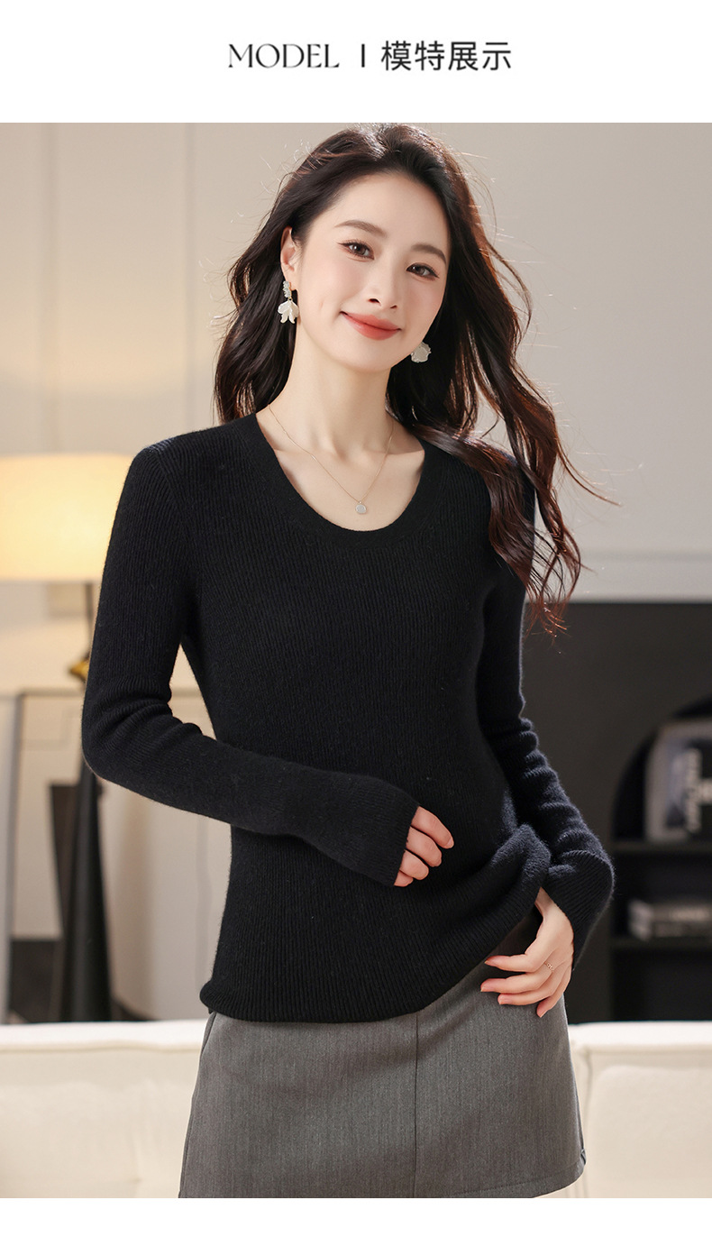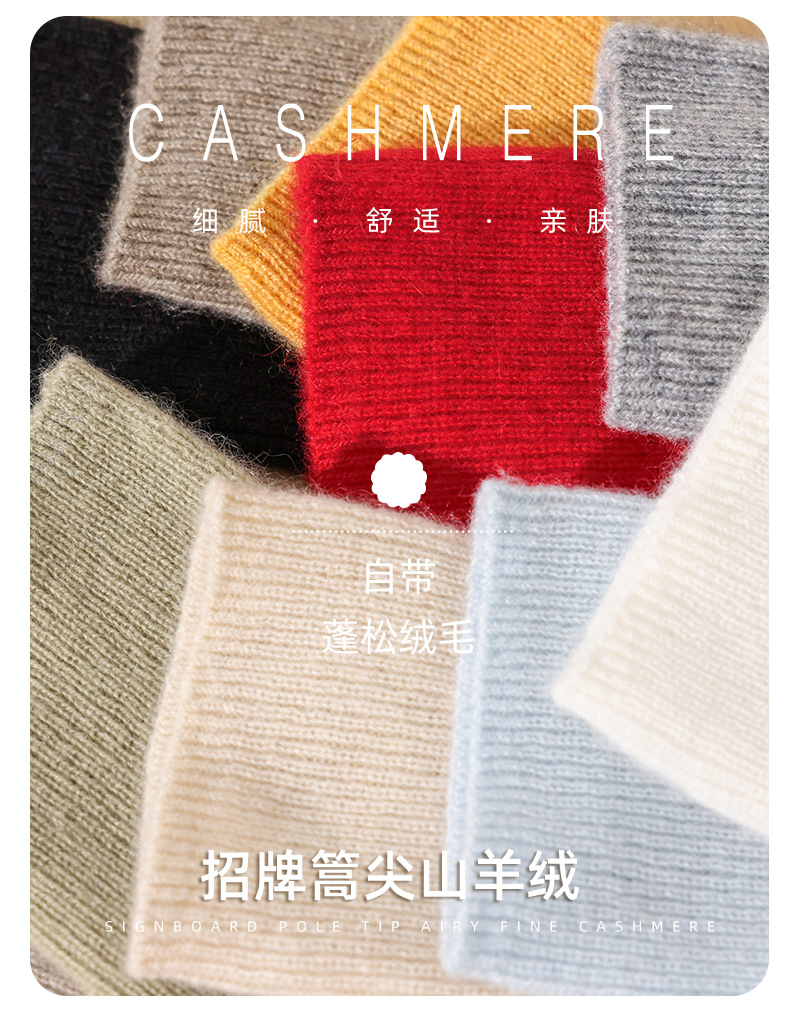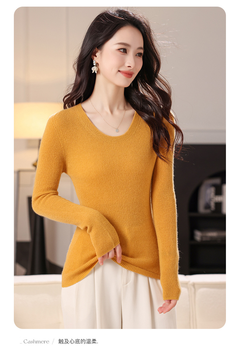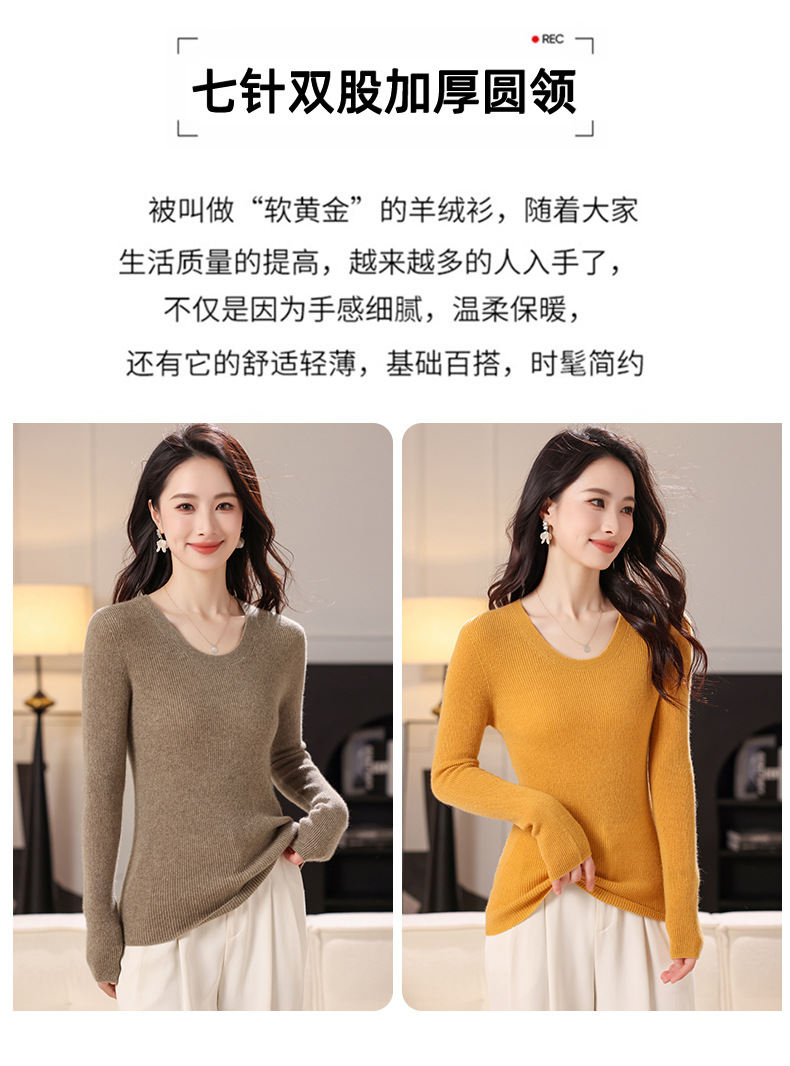OSL 82070无缝UV领山羊绒软糯亲肤基础修身针织毛衣 商品图1