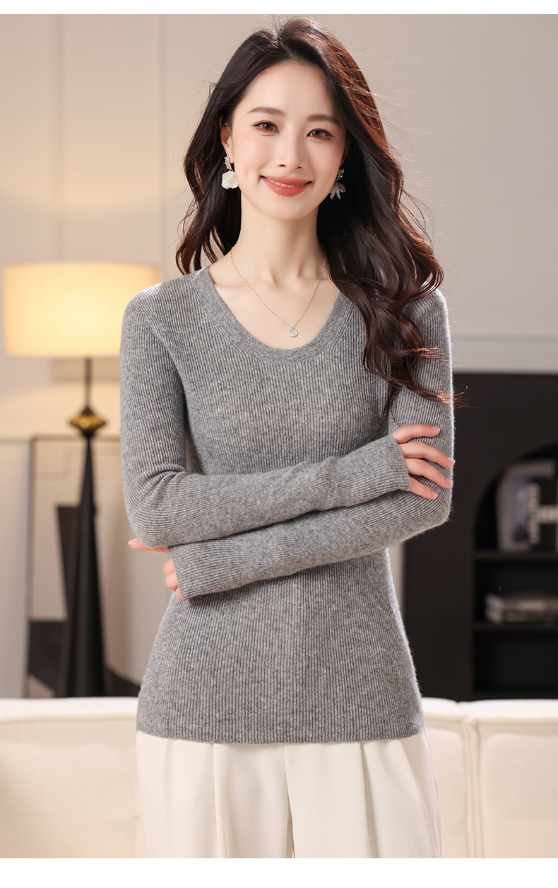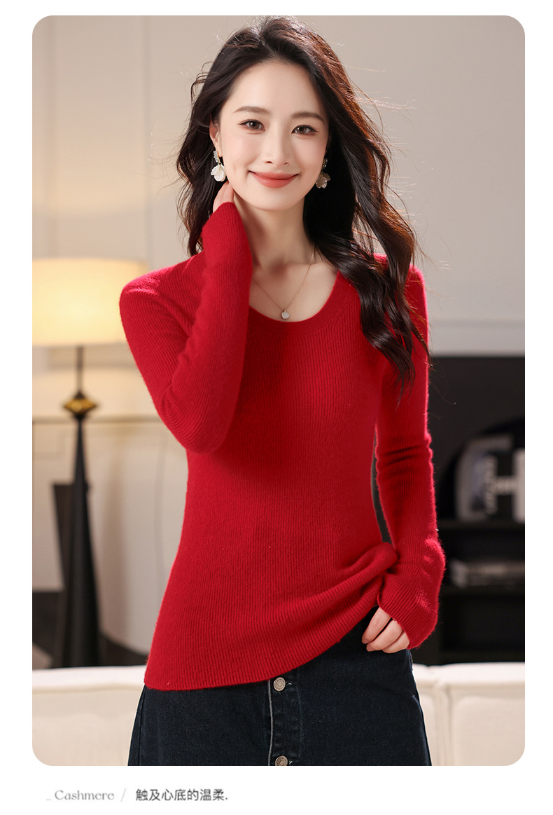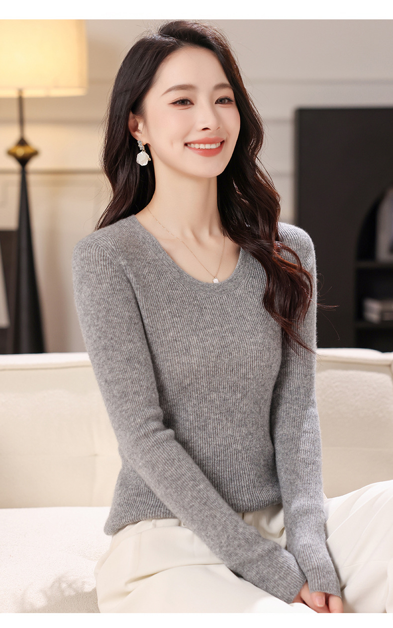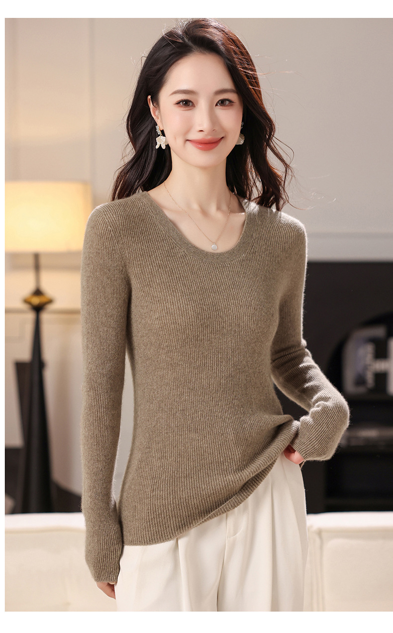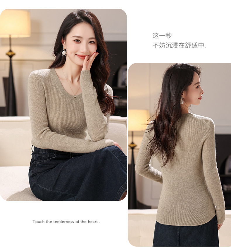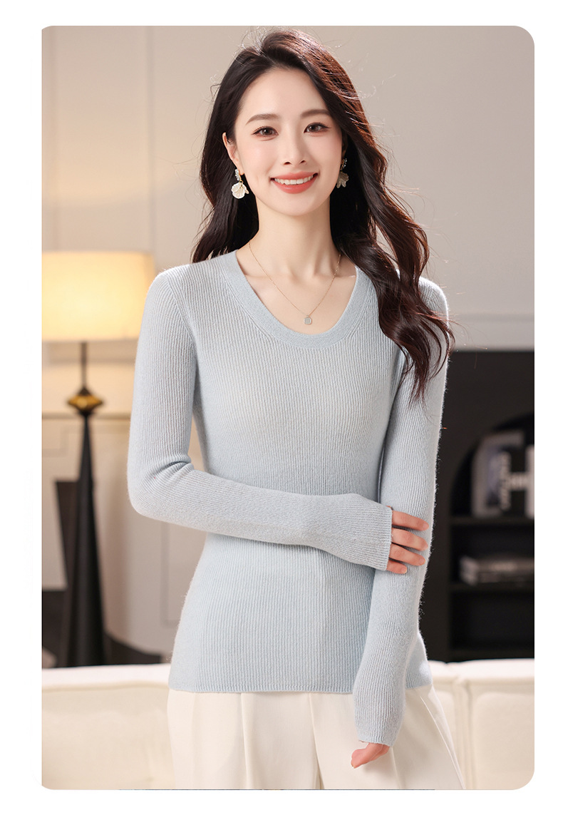 OSL 82070无缝UV领山羊绒软糯亲肤基础修身针织毛衣 商品图1