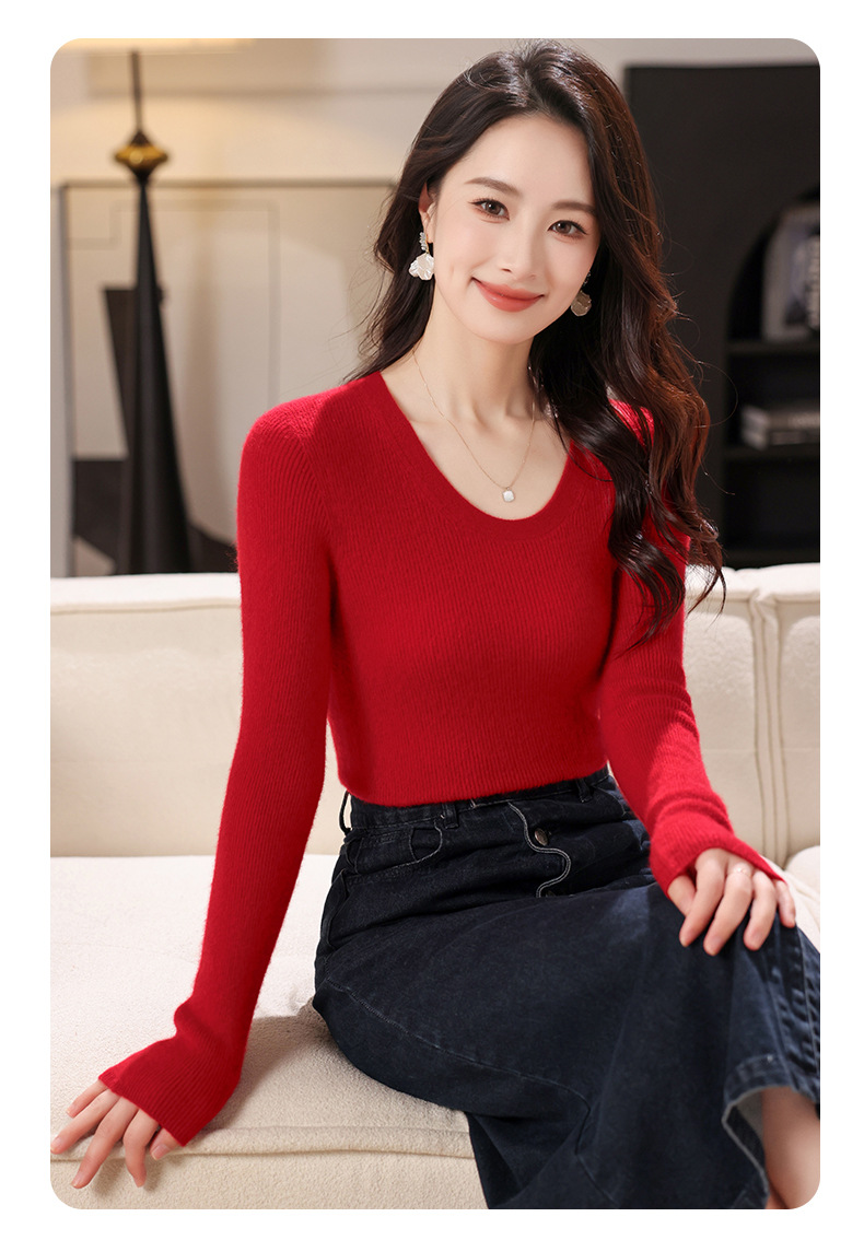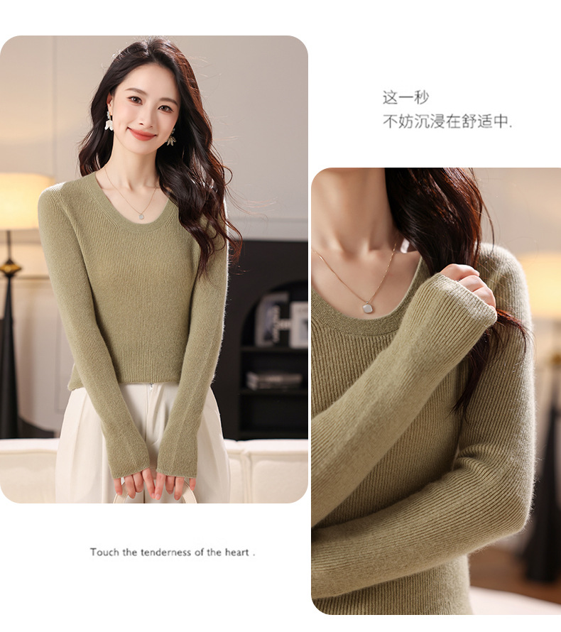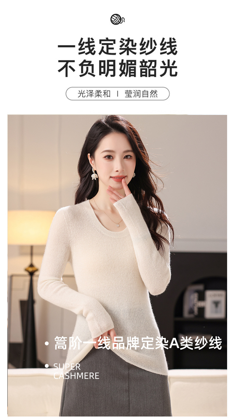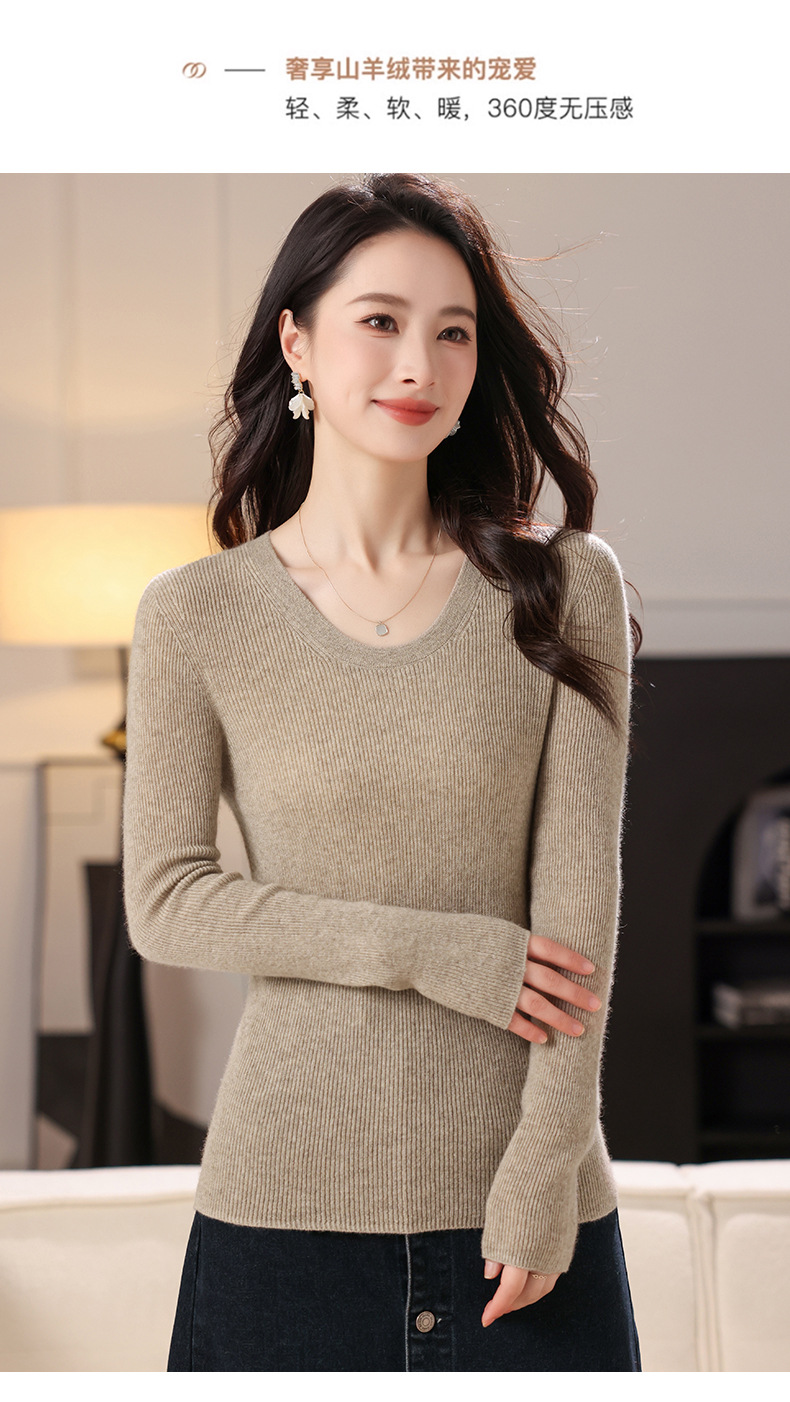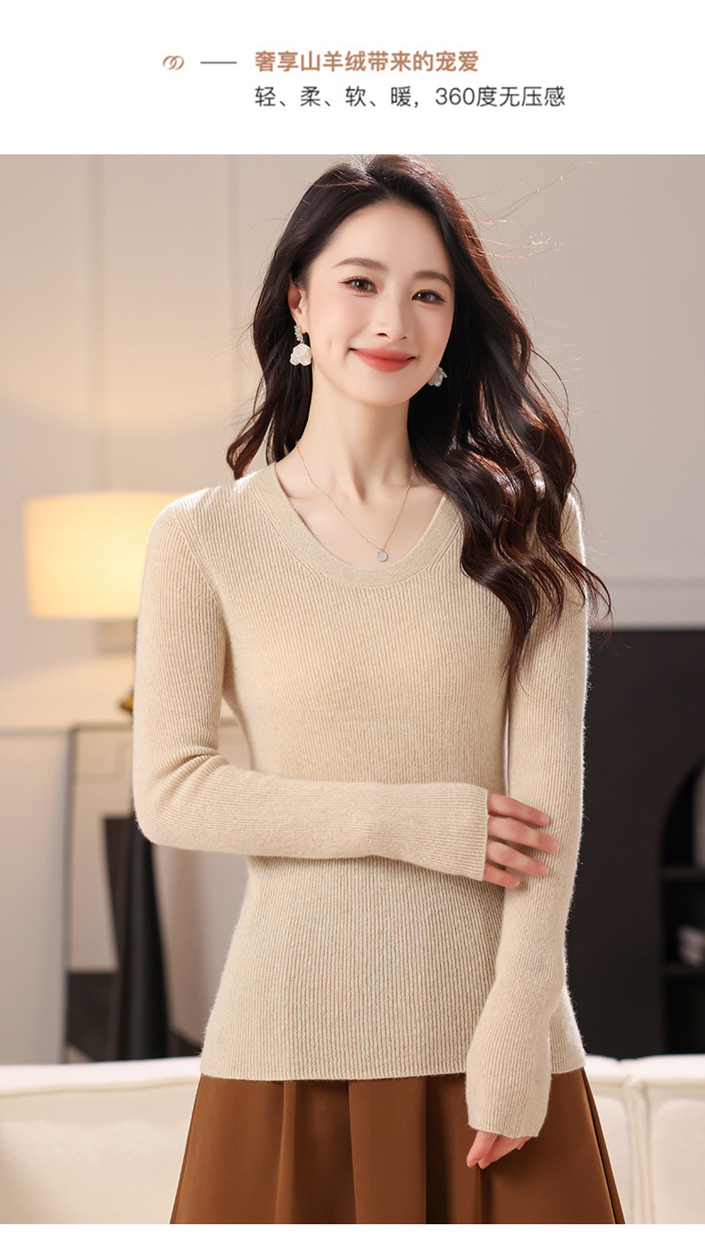 OSL 82070无缝UV领山羊绒软糯亲肤基础修身针织毛衣 商品图0