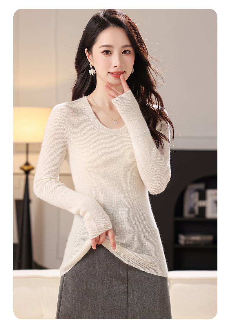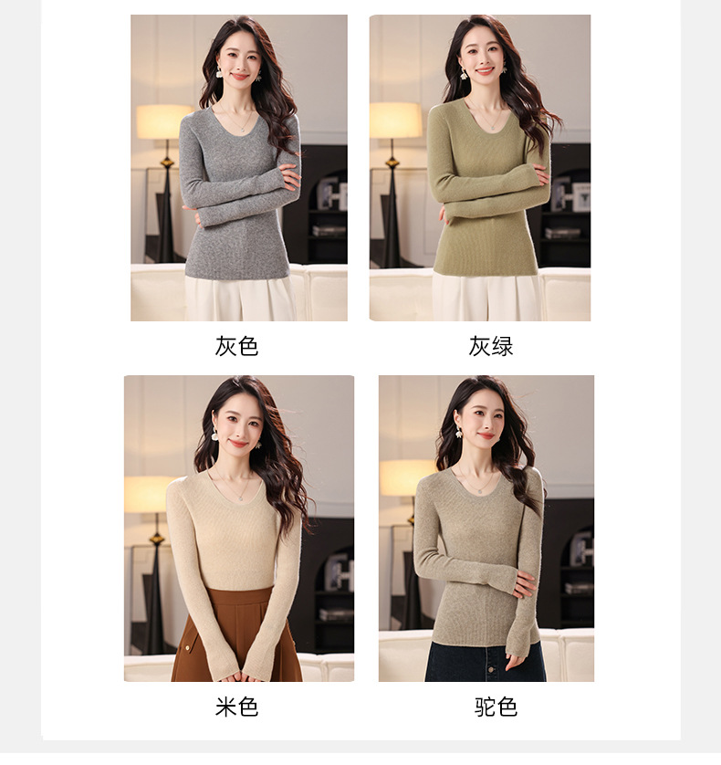 OSL 82070无缝UV领山羊绒软糯亲肤基础修身针织毛衣 商品图2
