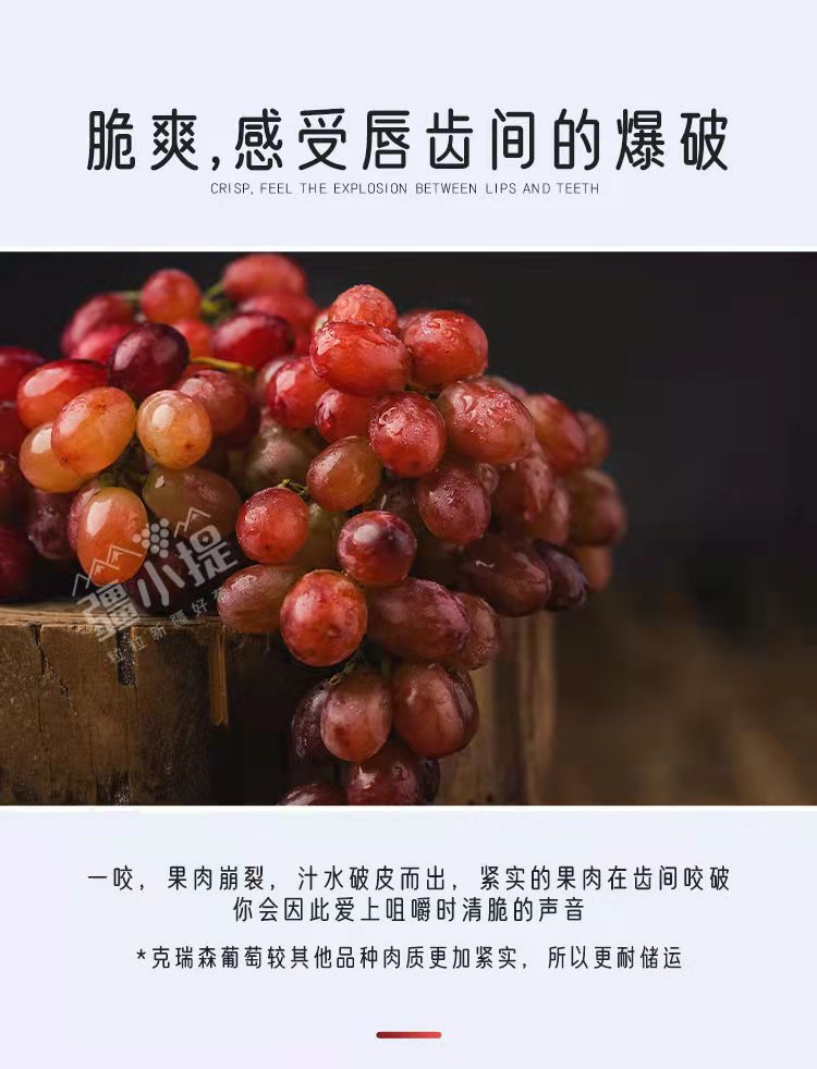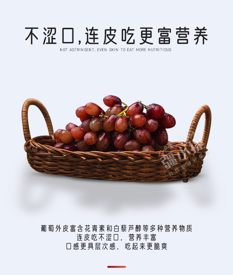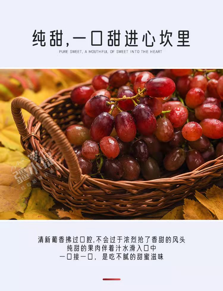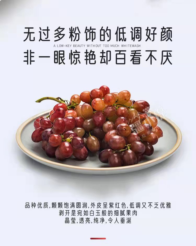 【温馨提示】1、葡萄表面有一层白色粉末,是果实生长过程中自然形成的果糖和葡萄糖,可起到保鲜作用;