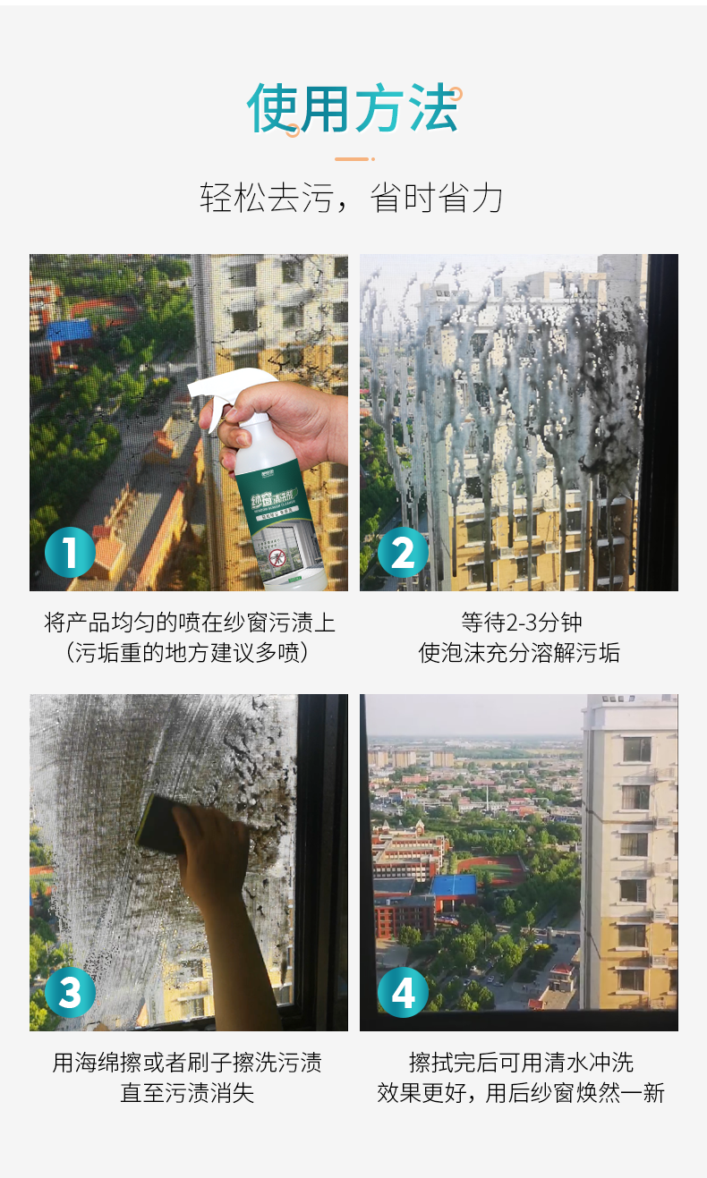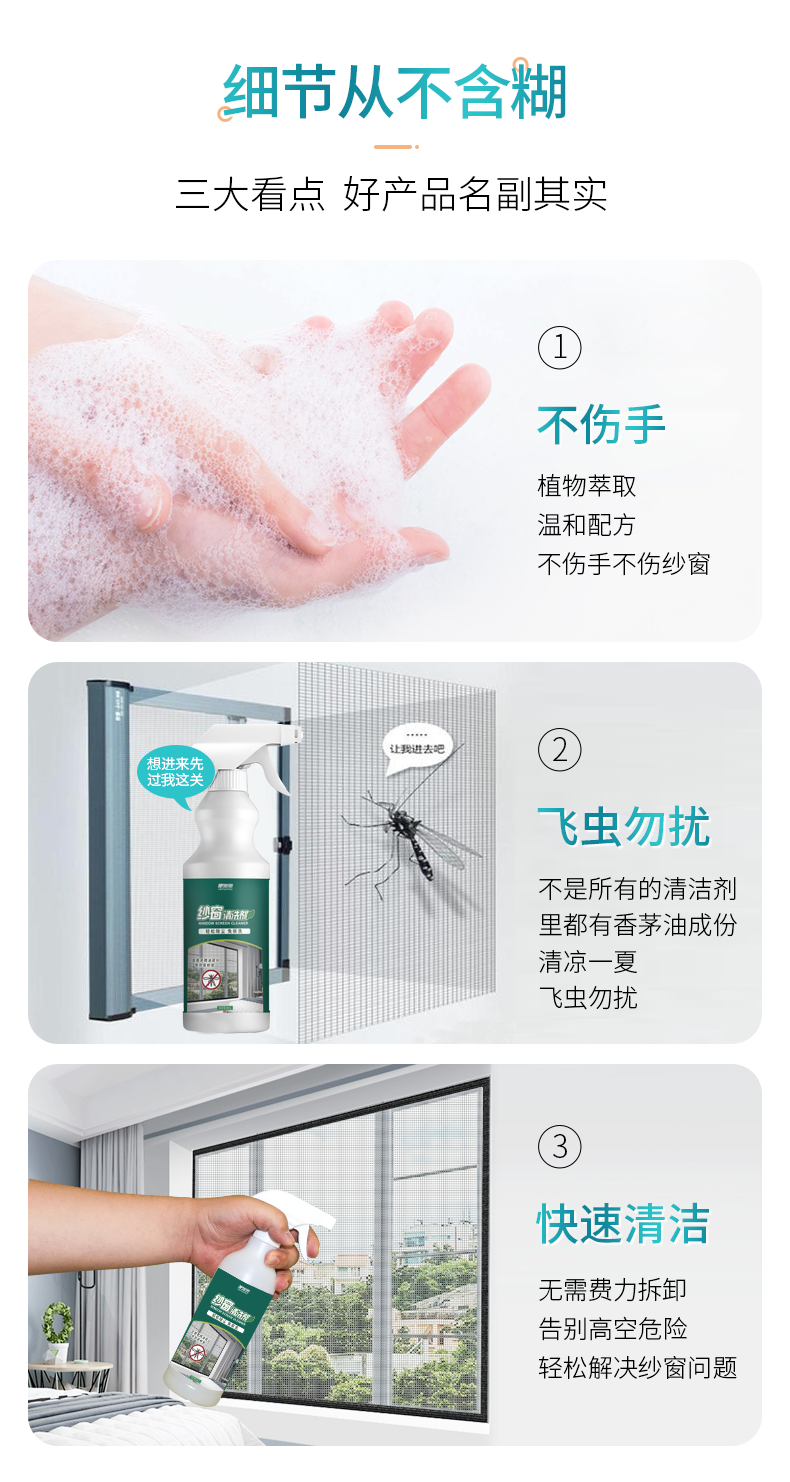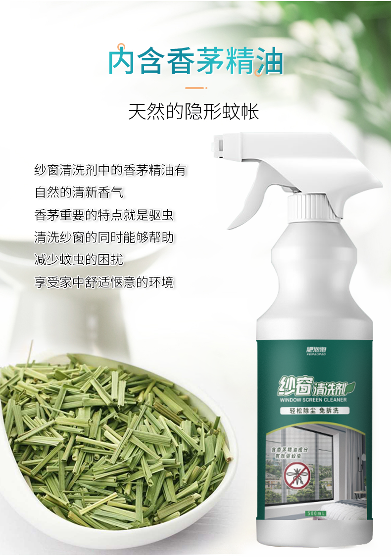 【洁净驱蚊二合一】免拆洗纱窗专用清洁剂不伤纱窗清新去味内含香茅精油洁净驱蚊二合一飞虫勿扰静享一夏