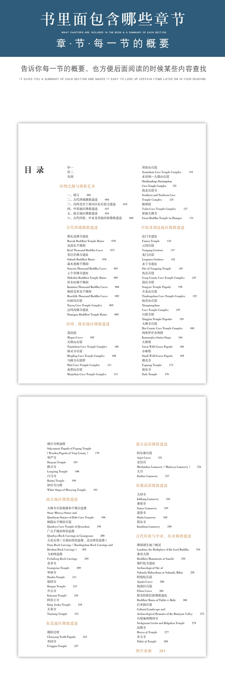 在前后两千余年的丝绸之路绵延历史中,宗教的传播与交流占有很大的比重。宗教的流传与交往,促进了民众信仰的相通与融合,成为具有动感与活力的,浸润民众生活的经久不衰的精神之魂,塑造了丝绸之路沿线的文化特性,进而影响至其他,也因此留下了众多的遗产遗址。本书着力于丝绸之路上的佛教文化遗址,通过丰富而翔实地图片和文字资料,在分区域与线性铺陈的基础上,全面展示了丝绸之路上佛教文化的绵延历史和深远影响,也因此铺陈了丝绸之路上浓墨重彩的一笔。
