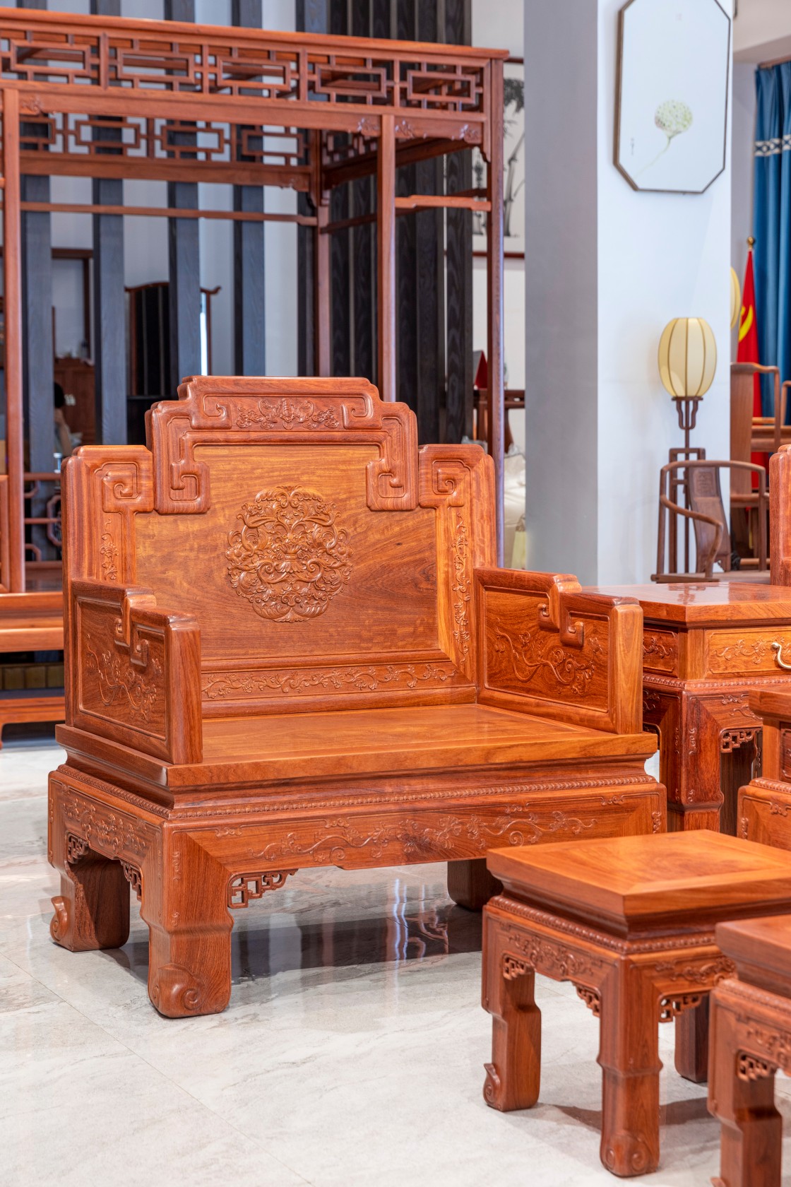 正宗缅甸花梨(大果紫檀)制作,传统榫卯工艺,零白皮零拼补,烘干严谨。