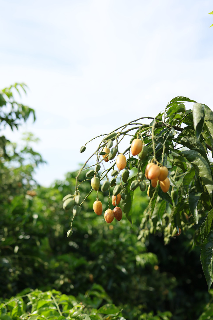 黄皮是在农场的员工啟智家生态种植的。农场之前一直也在寻找生态种植的黄皮,偶然间餐厅要开发黄皮冰淇淋,终于找到啟智家里,才有了大家这几年的生态黄皮。