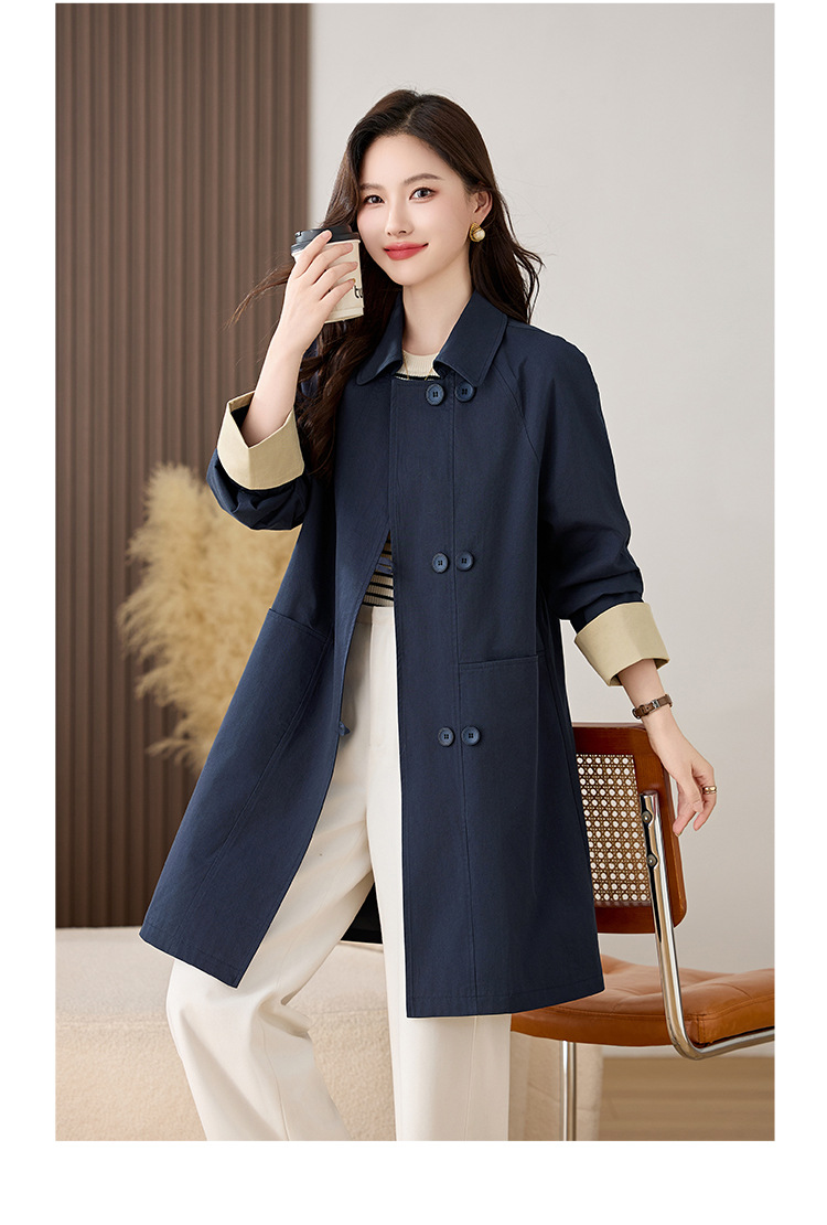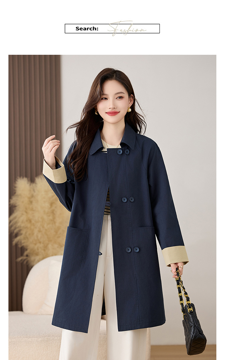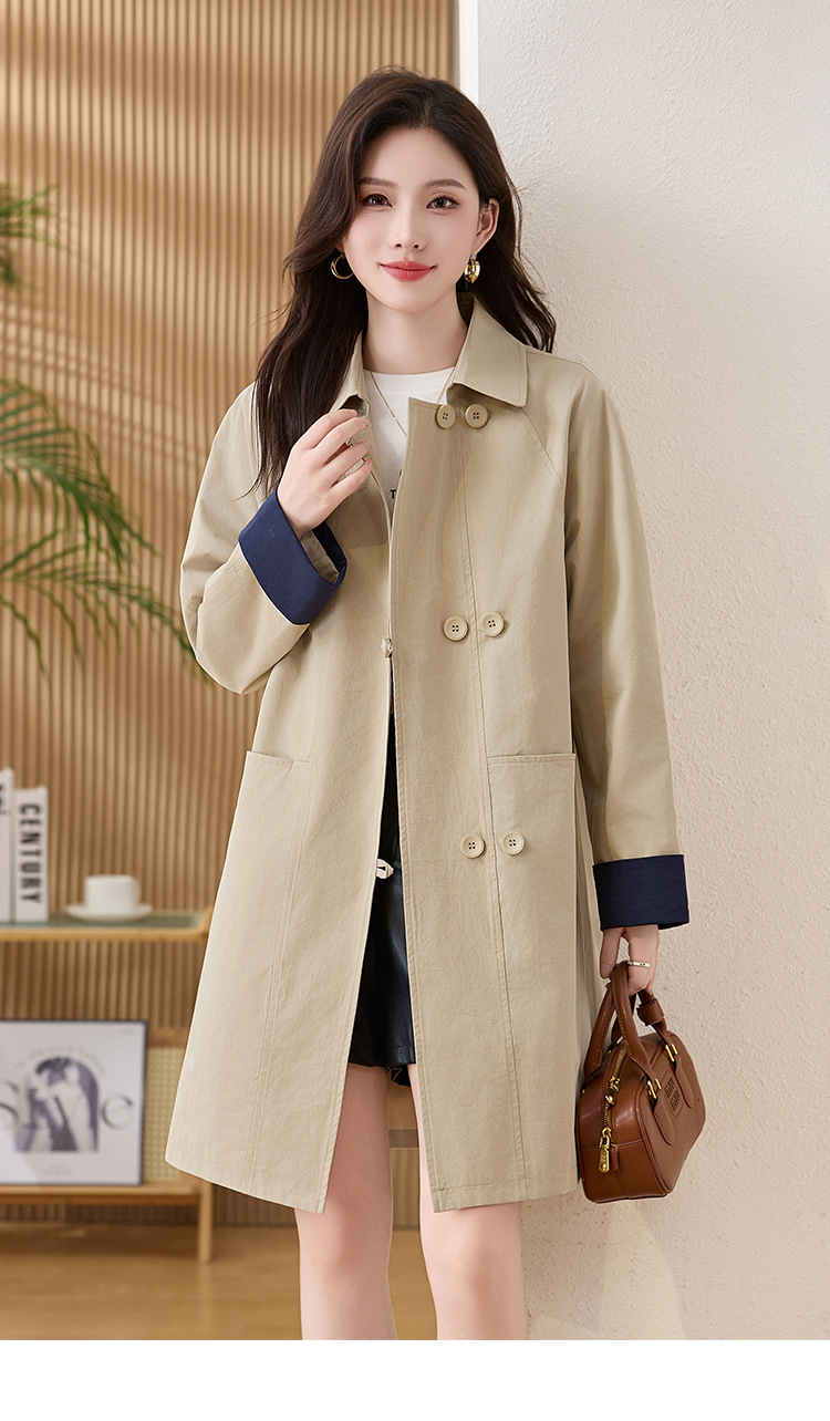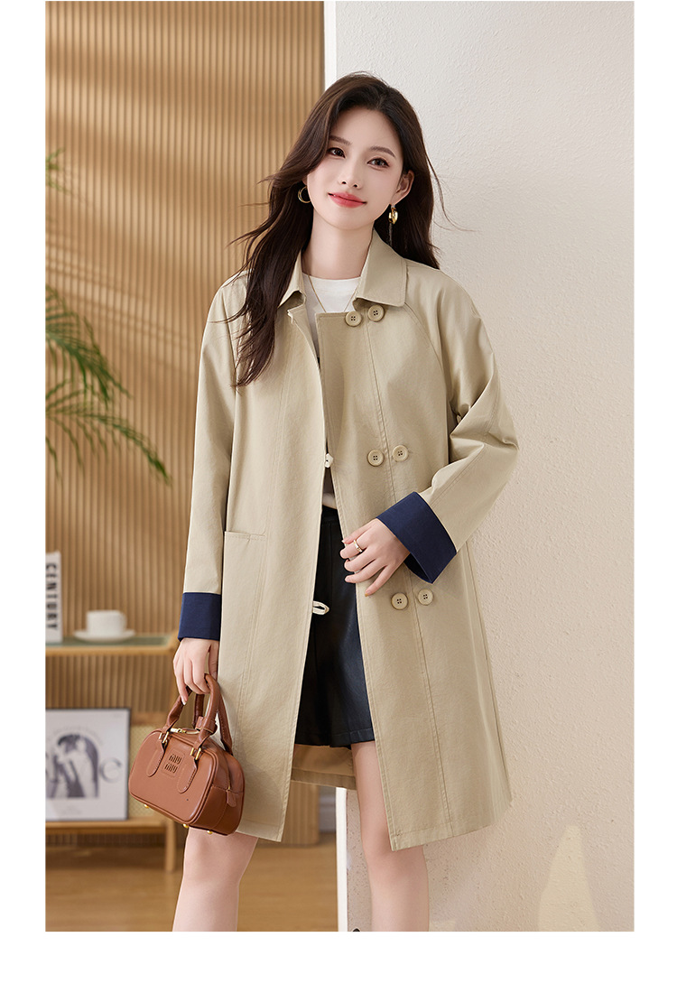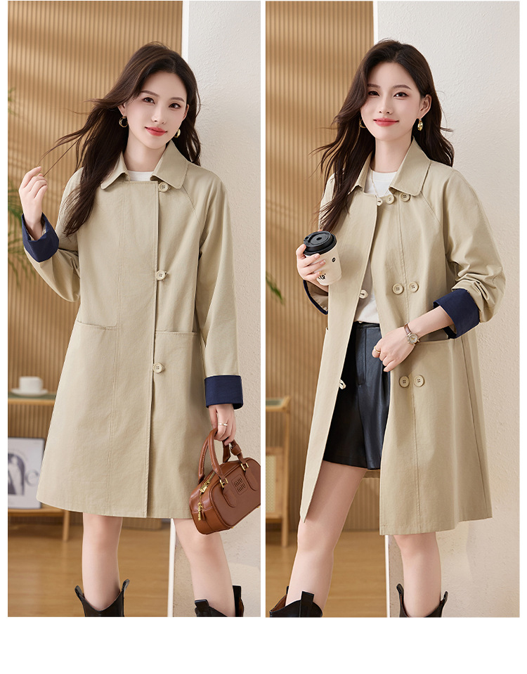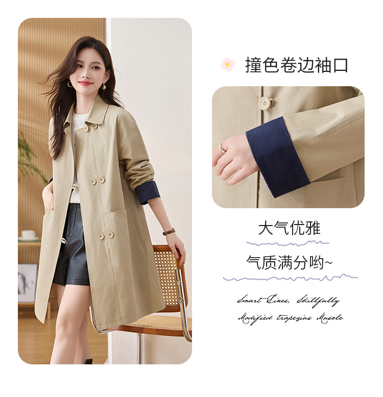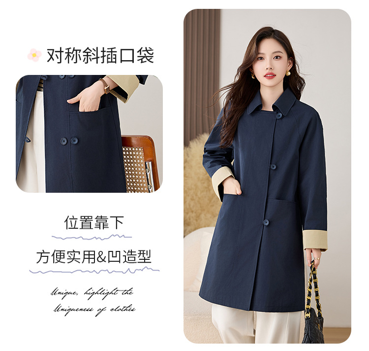 HR ZYF8881松弛感简约撞色袖洋气宽松版休闲纯色气质中长风衣 商品图4