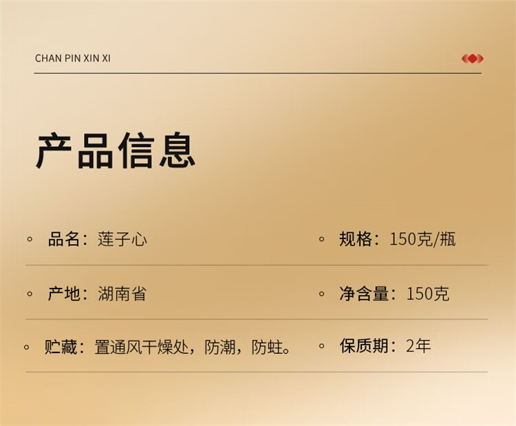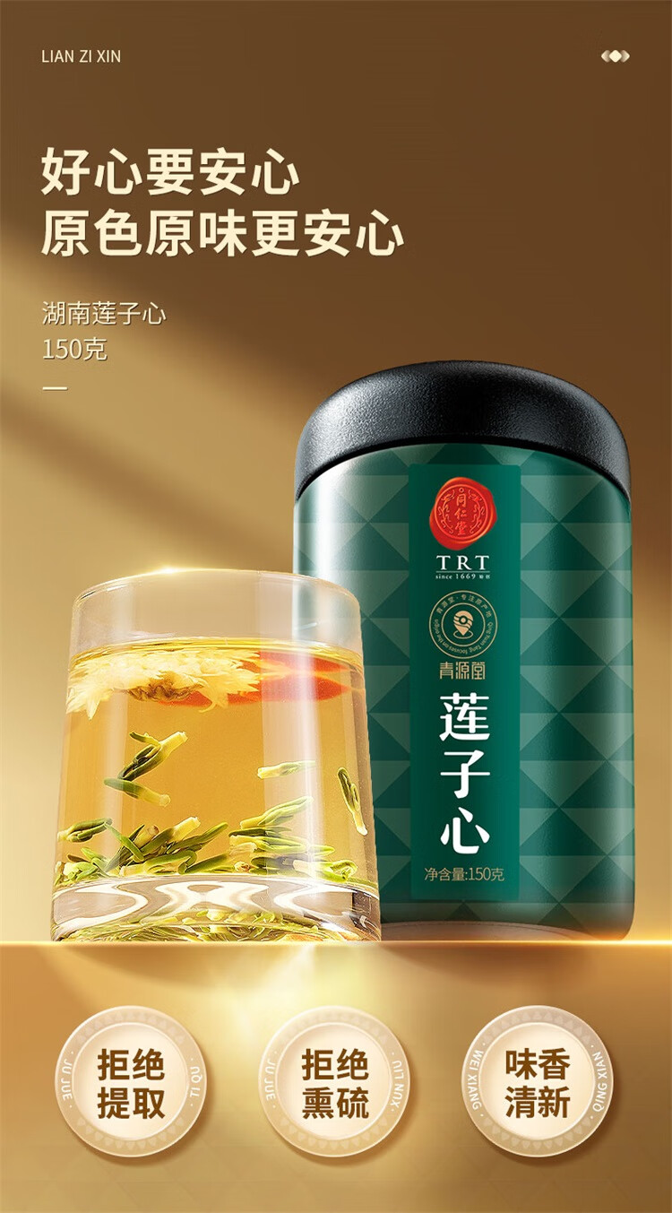 【正宗同仁堂品牌】北京同仁堂 青源堂 莲子心 150克 湖南精选 原色原味 拒绝熏硫 拒绝提取SY