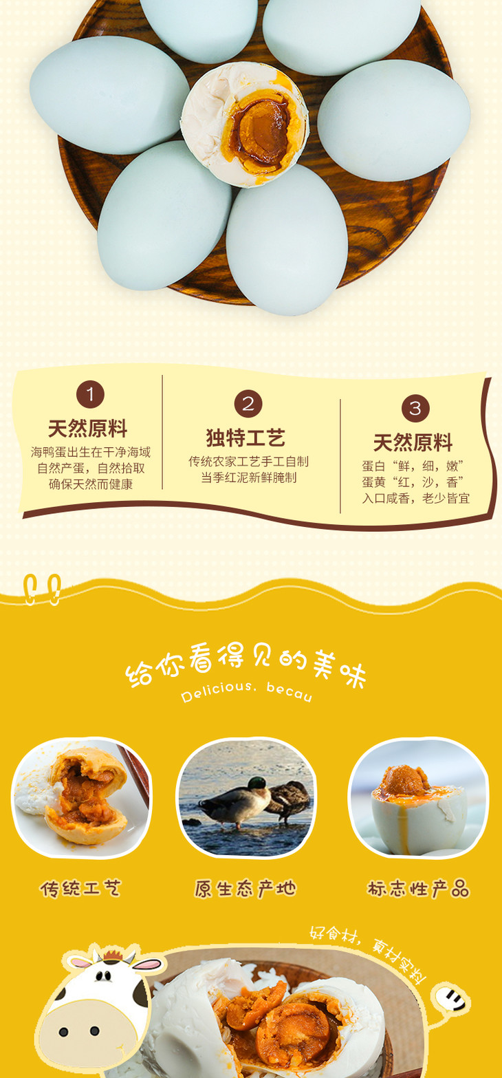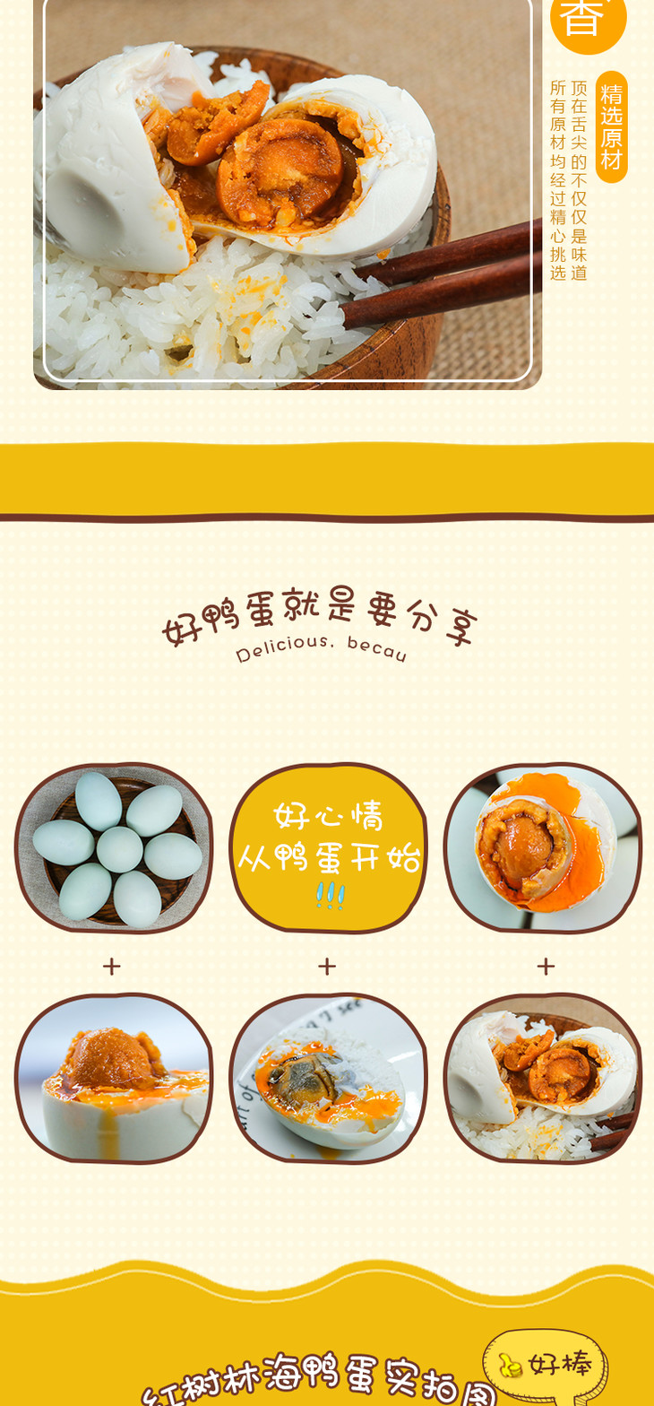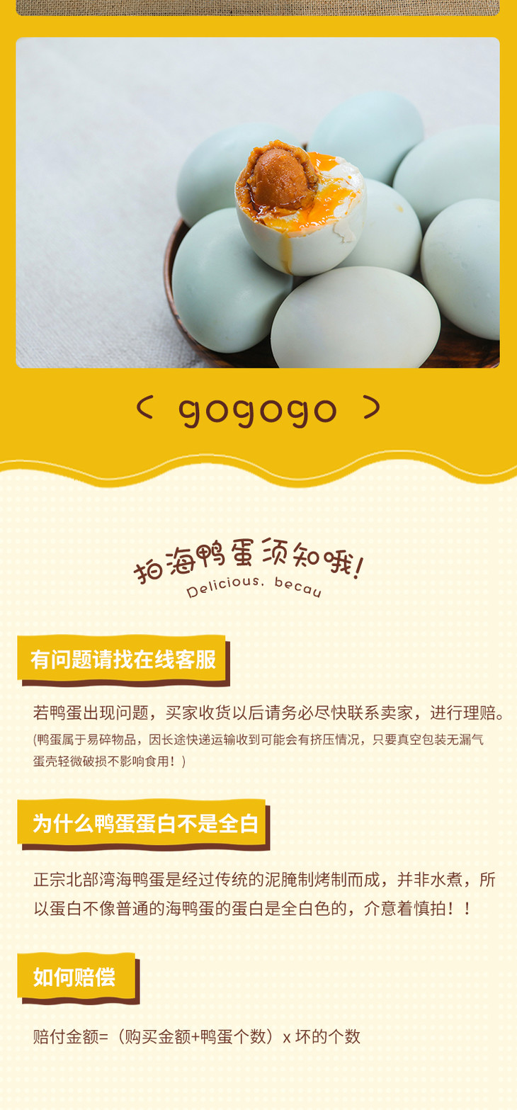 温馨提示:正宗北部湾海鸭蛋是经过传统的泥腌烤制而成,并非水煮,所以蛋白并不像普通的海鸭蛋的蛋白全是白色的,介意的慎拍。