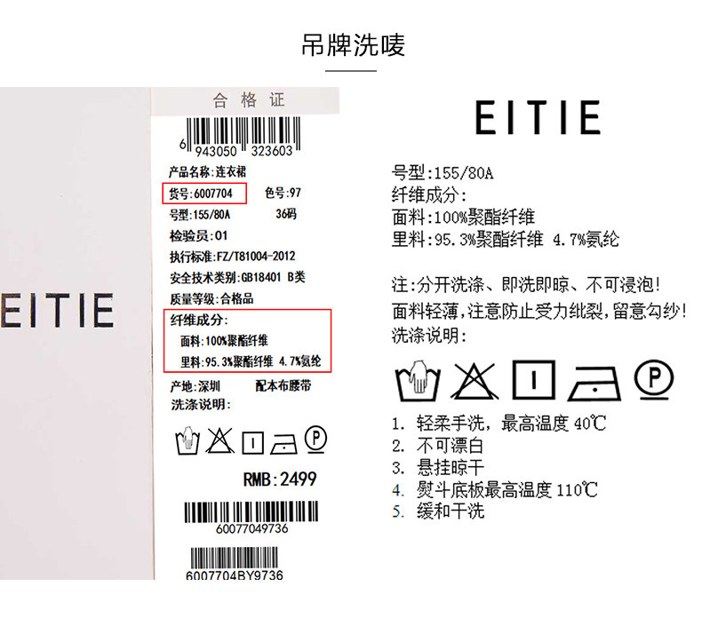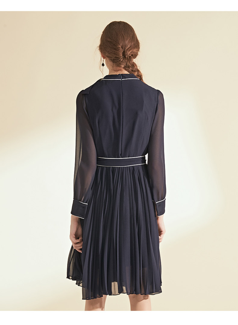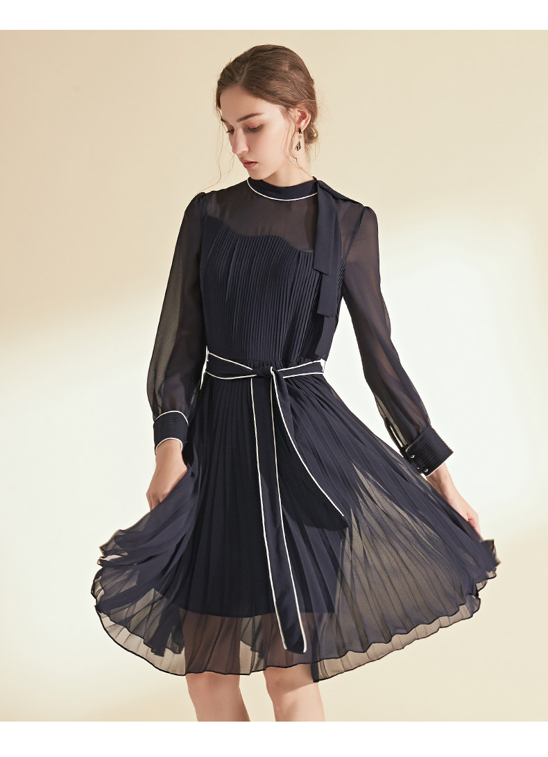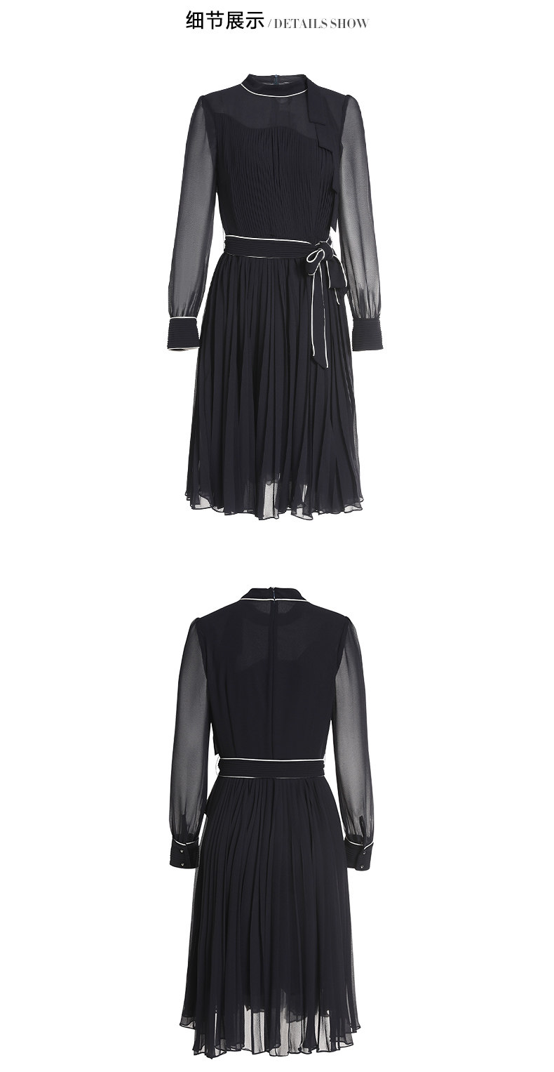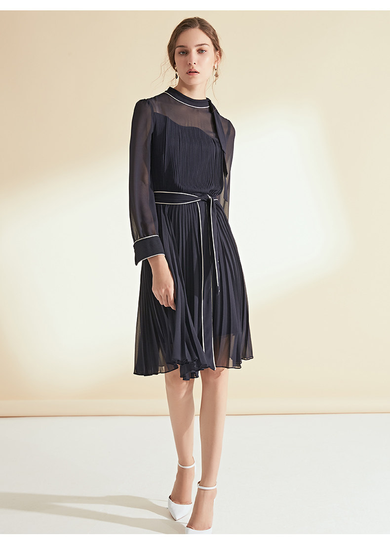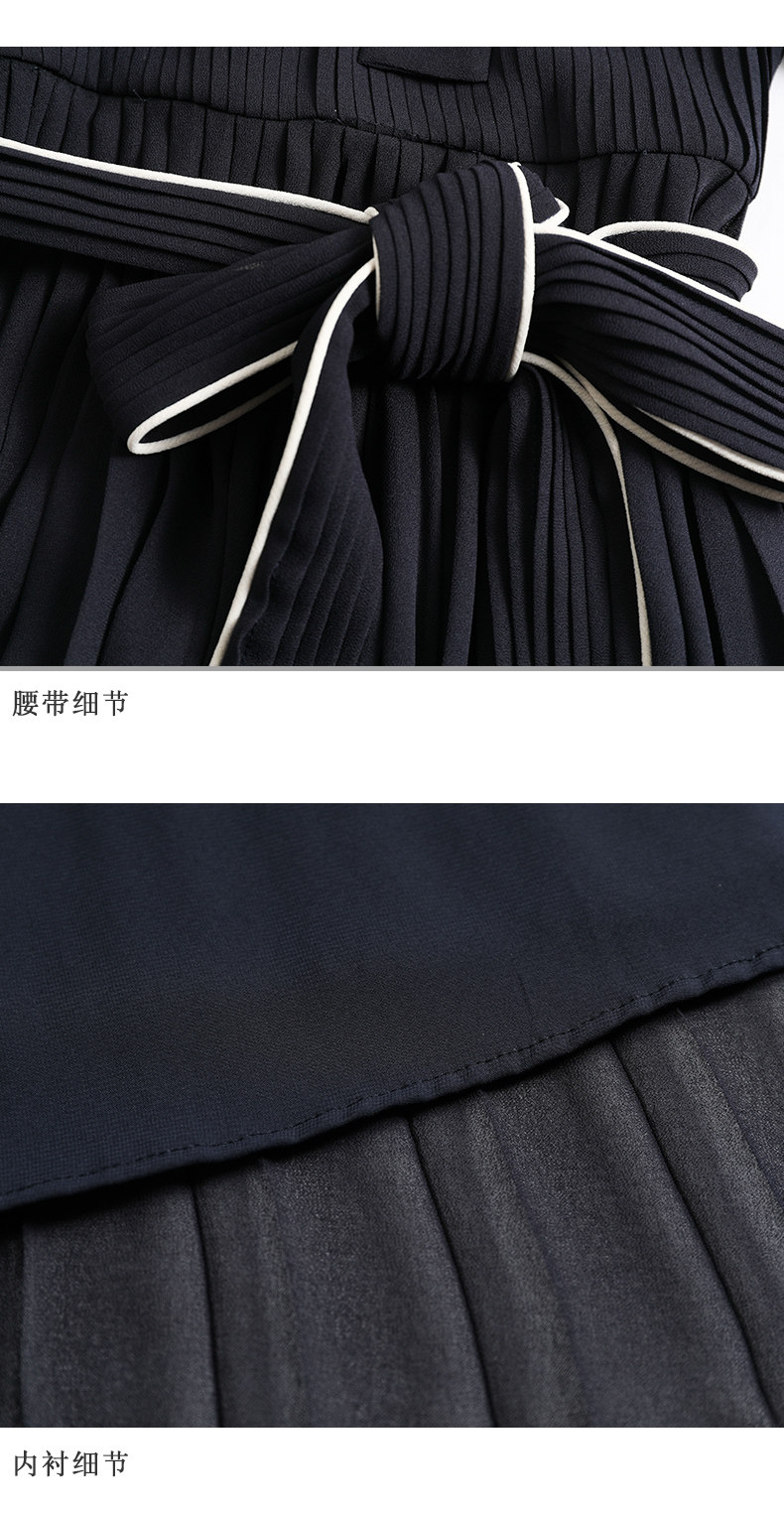 EITIE爱特爱女装初秋季收腰显瘦系带拼色压褶连衣裙6007704