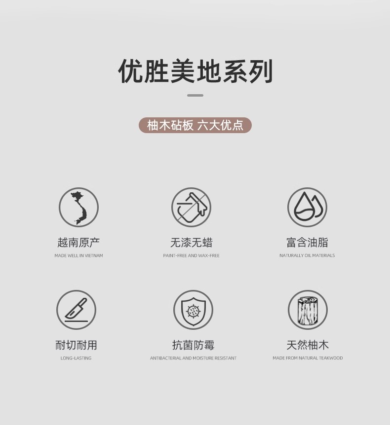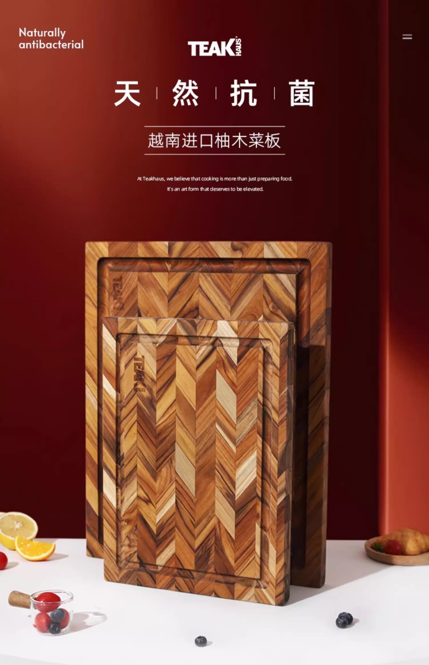美国TEAKHAUS优胜美地系列长方形加厚柚木菜板带导流槽-中号