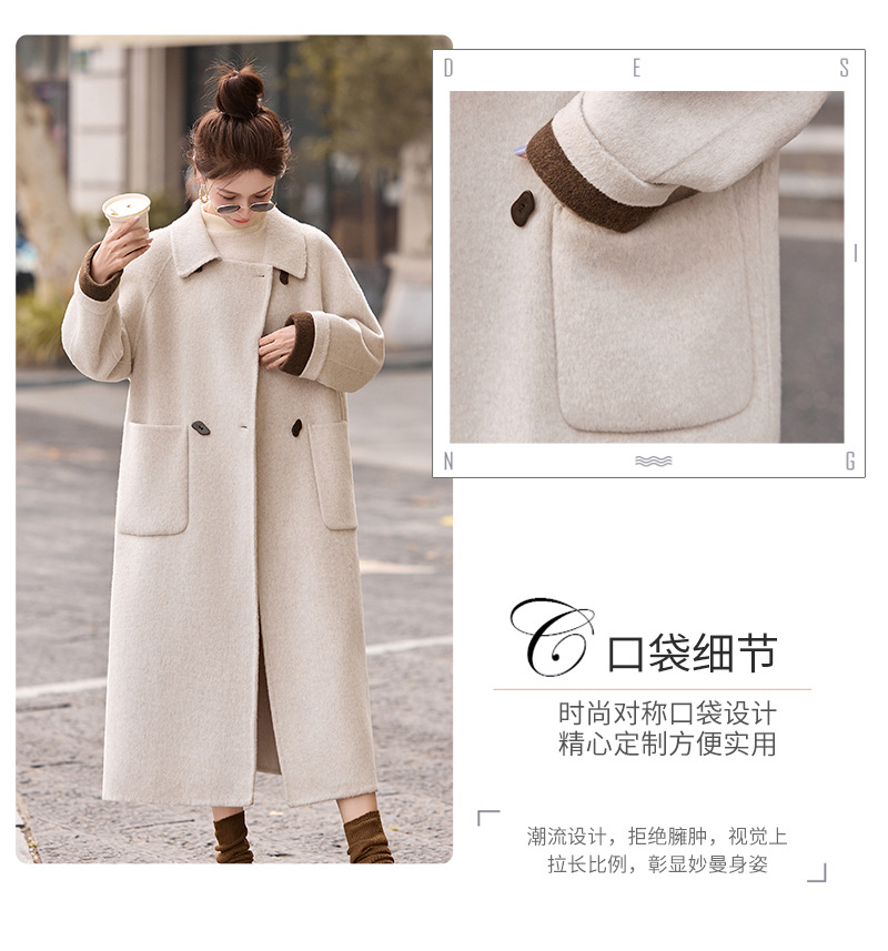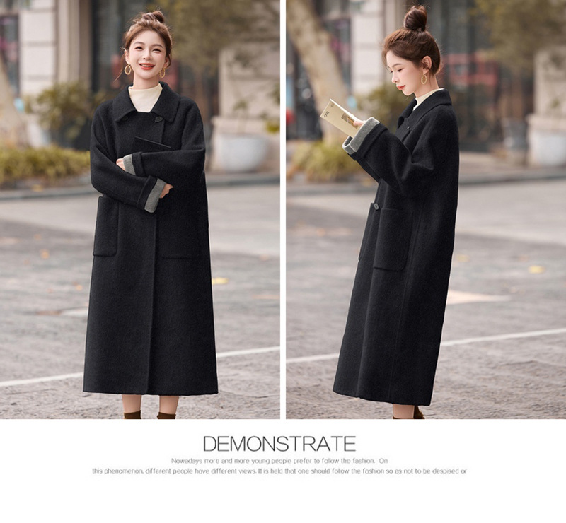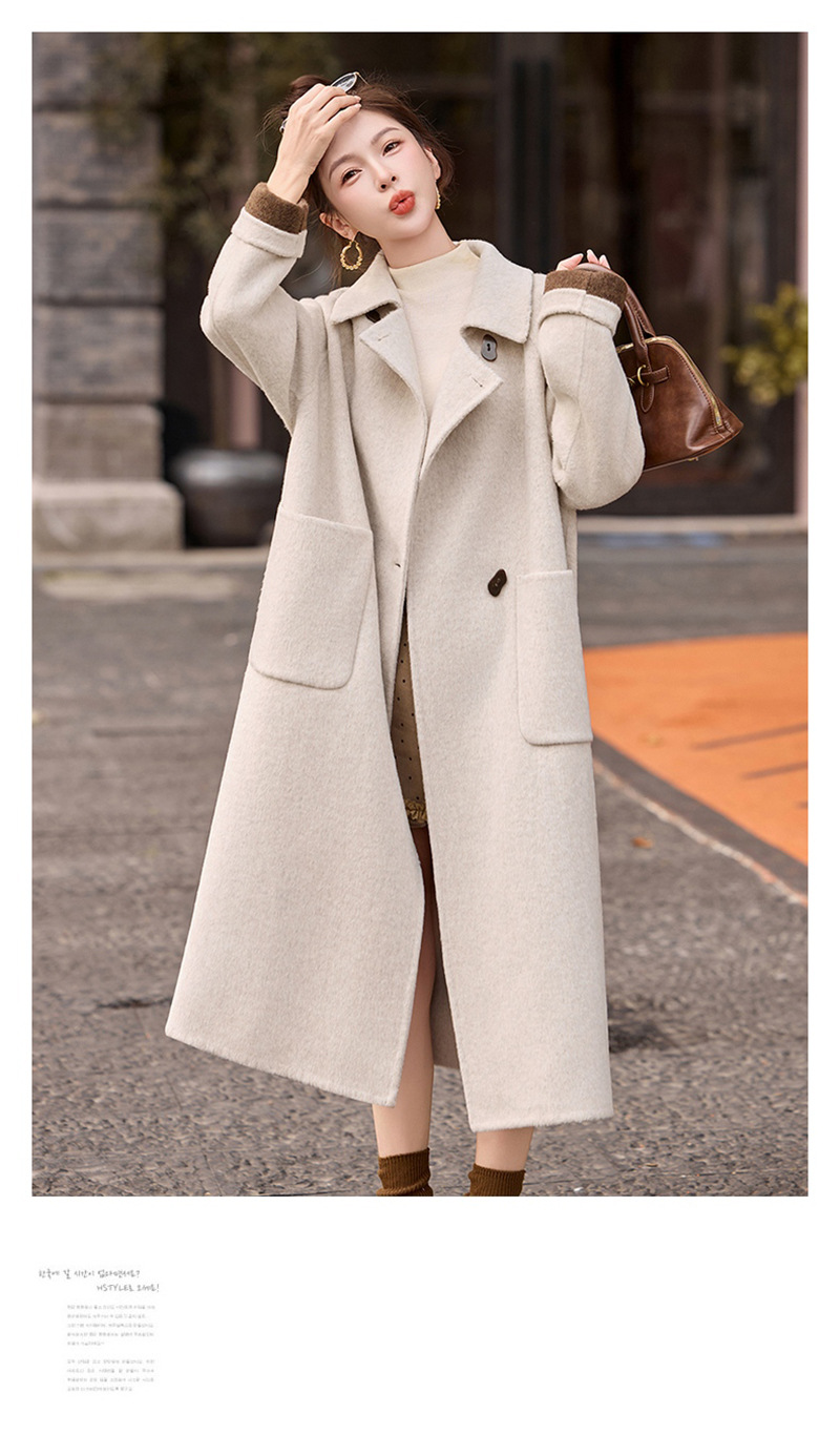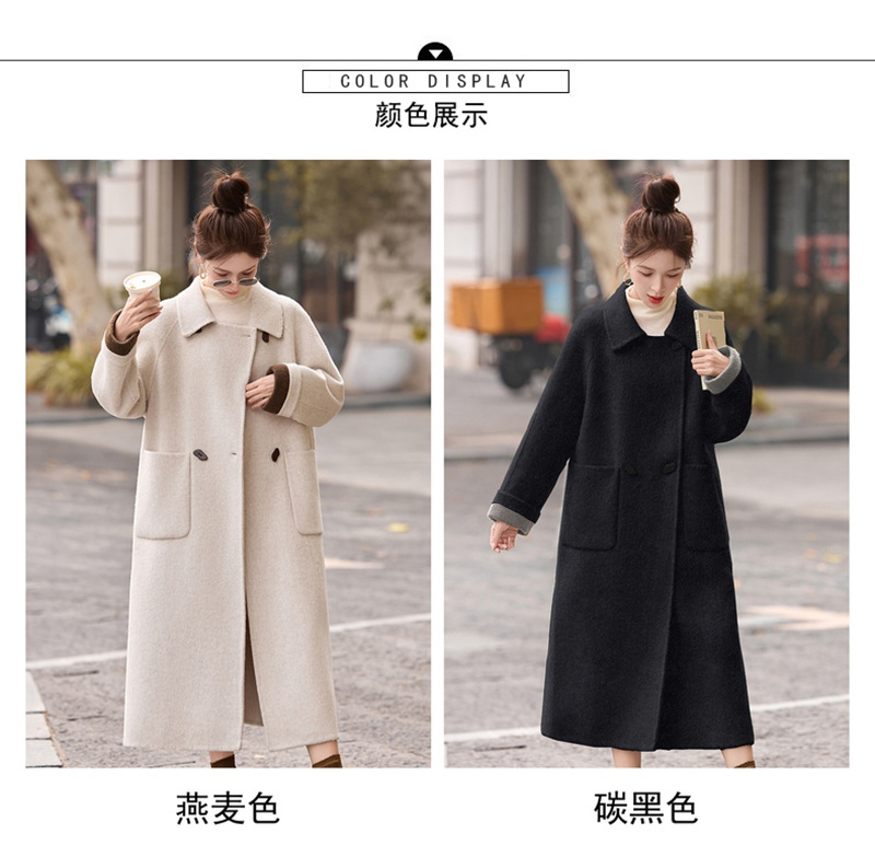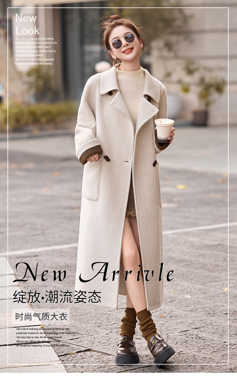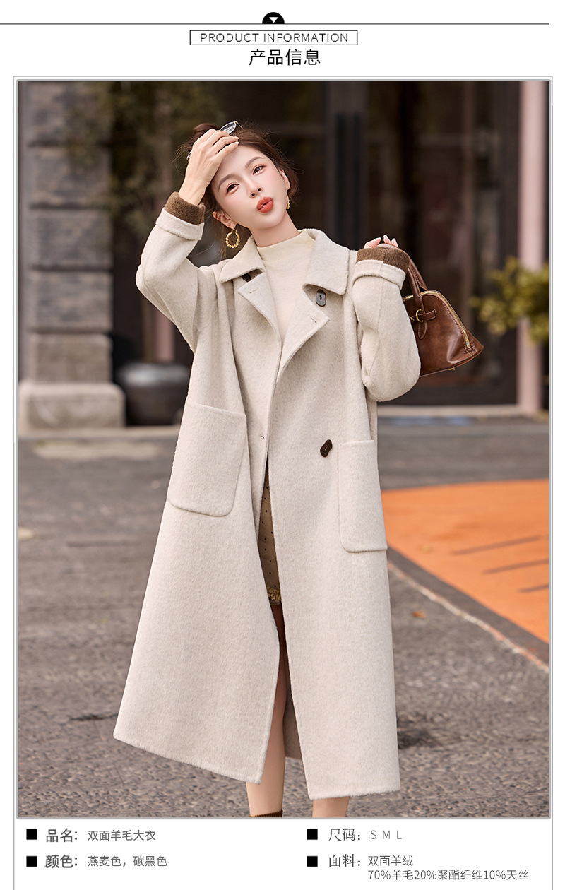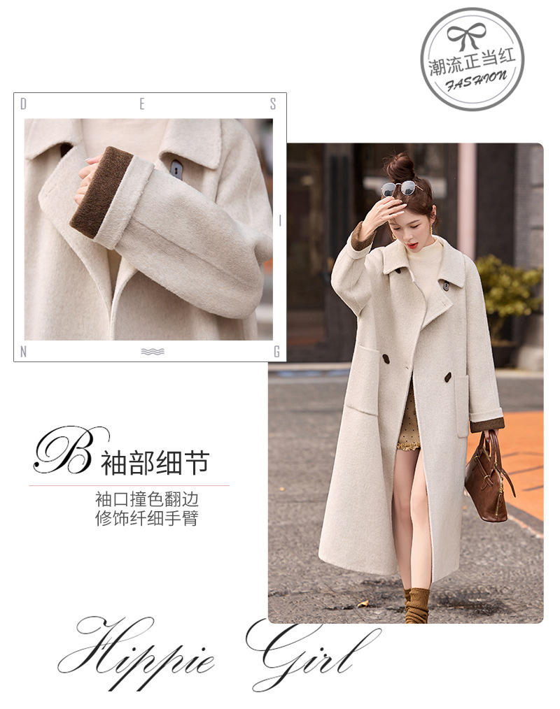 气质长款过膝双面呢羊毛大衣,赫本风西装领毛呢外套HR-MDN6801