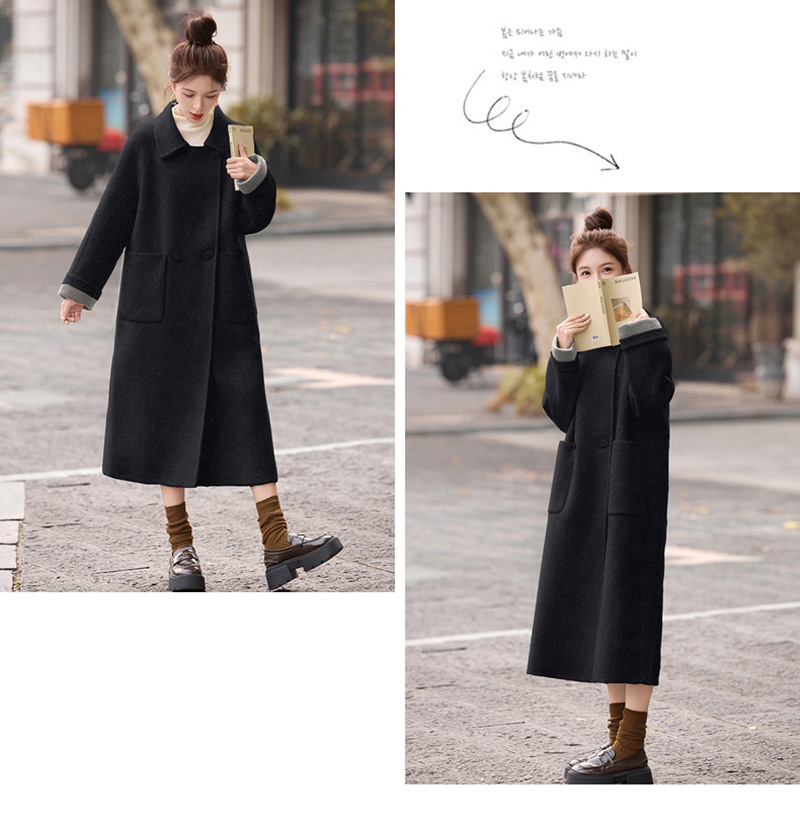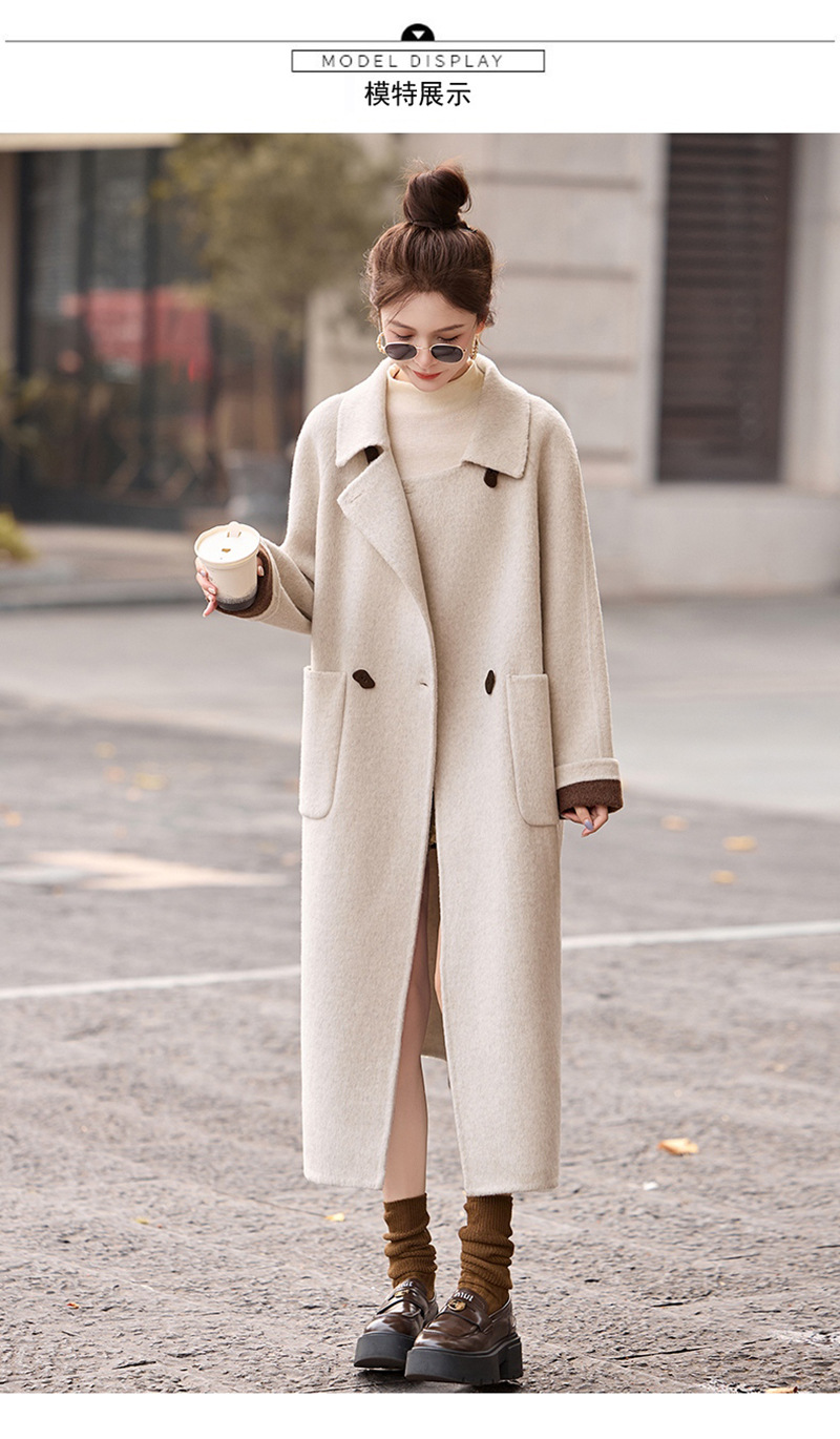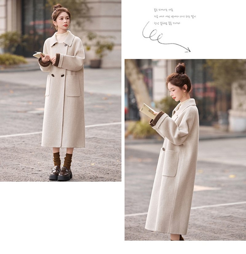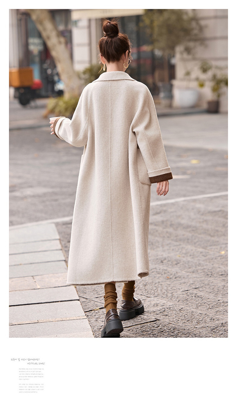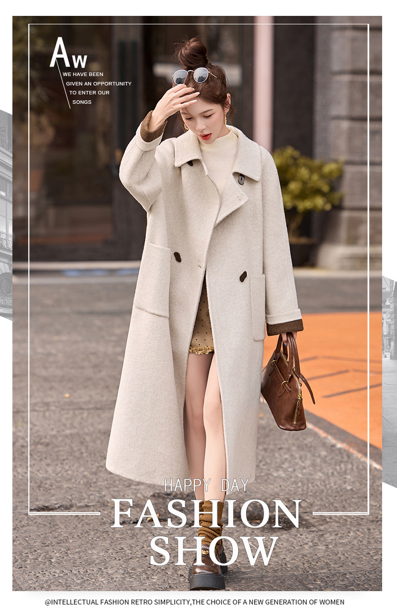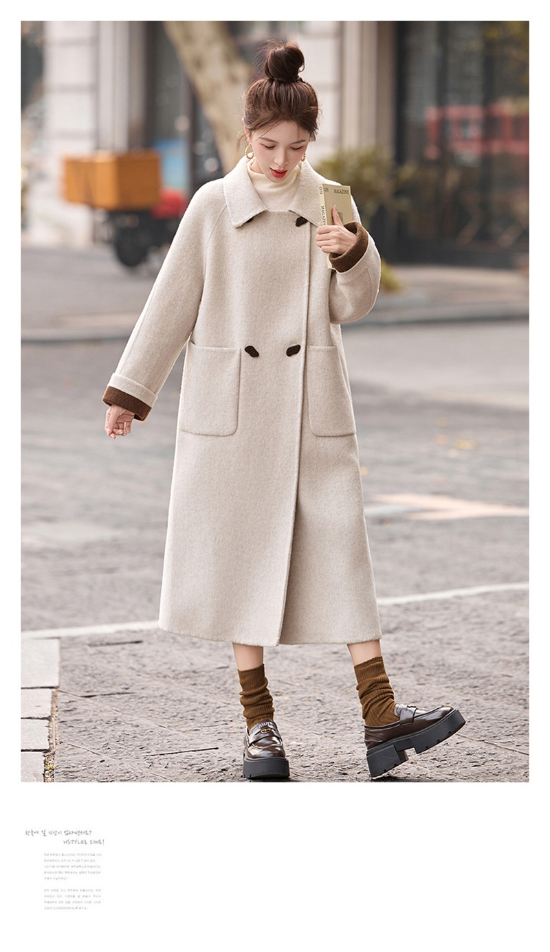 气质长款过膝双面呢羊毛大衣,赫本风西装领毛呢外套HR-MDN6801