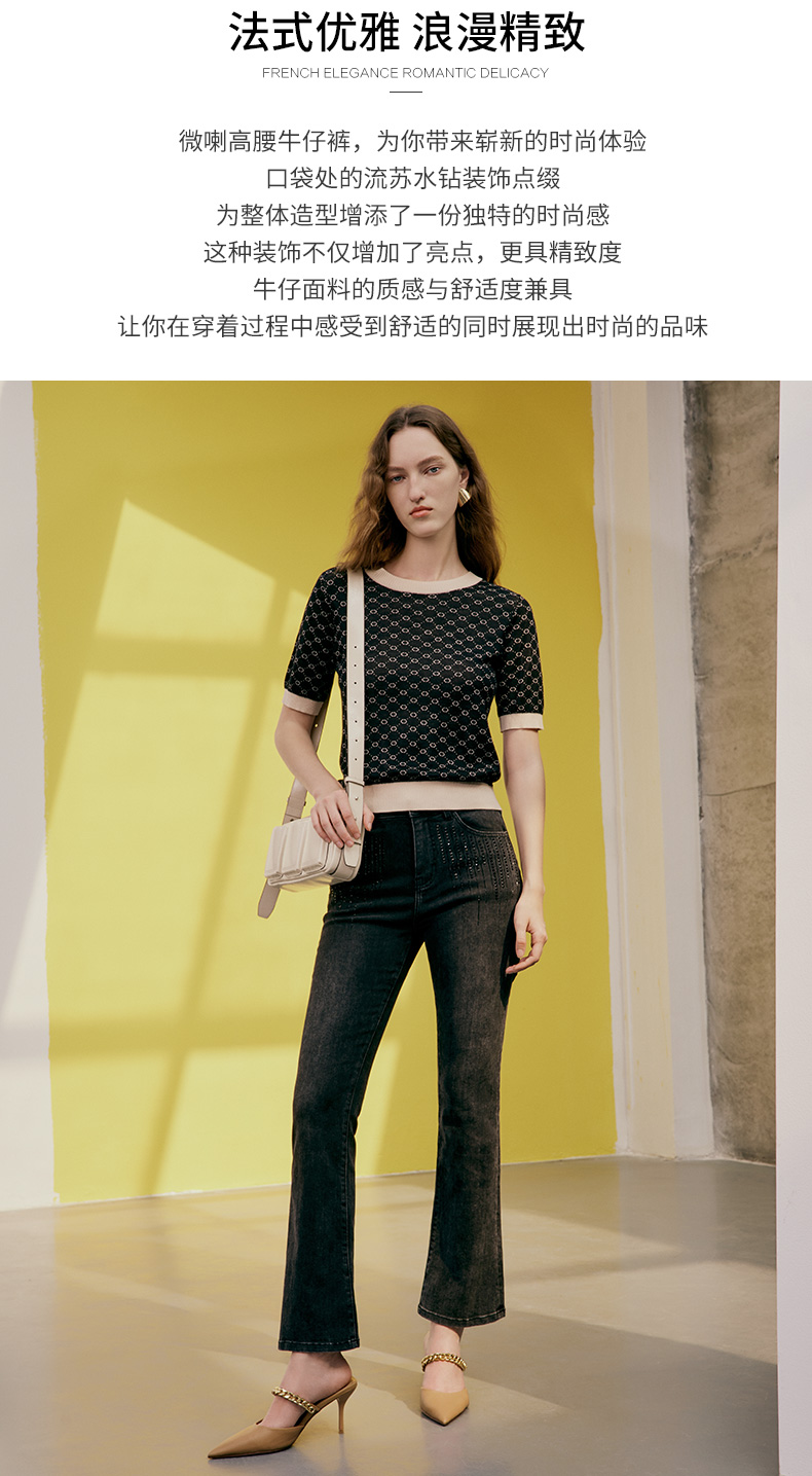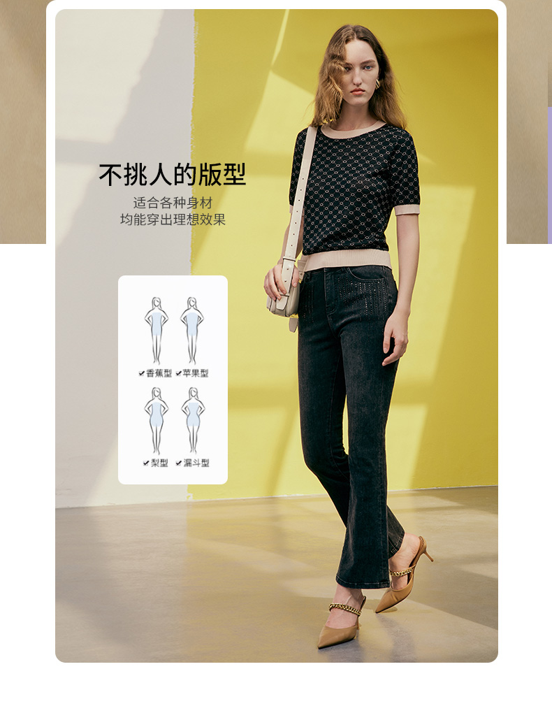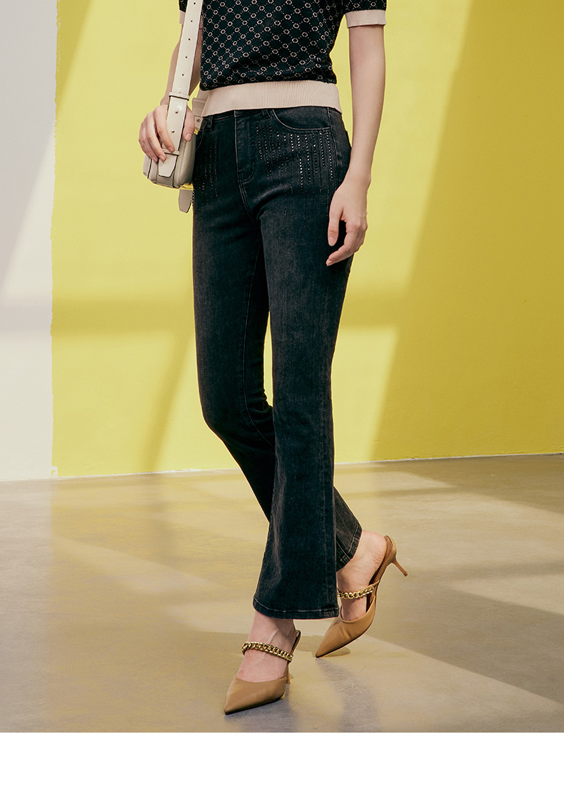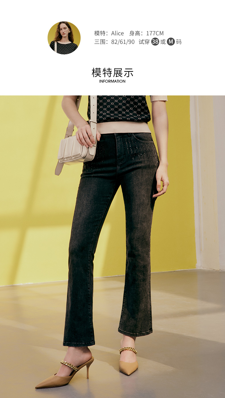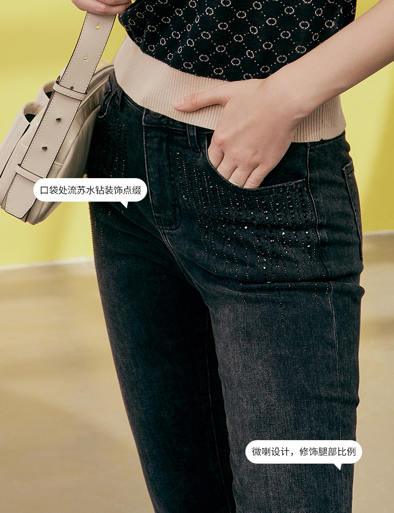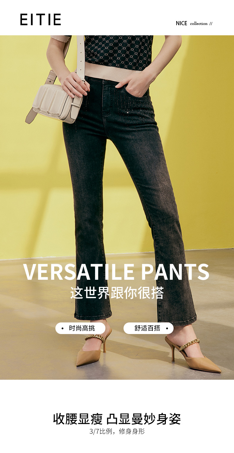 EITIE爱特爱春季新款时尚通勤休闲显瘦百搭牛仔裤7305015