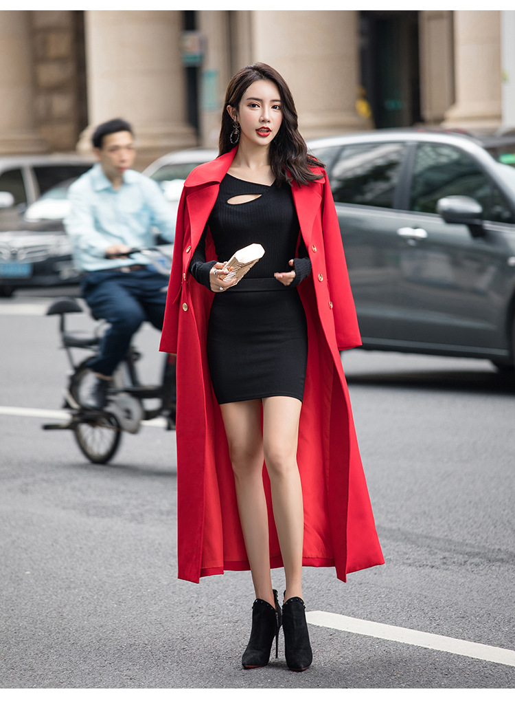 HK-MYD1965初秋时尚韩版新款修身收腰显瘦过膝外套